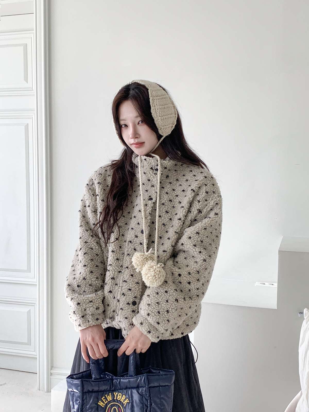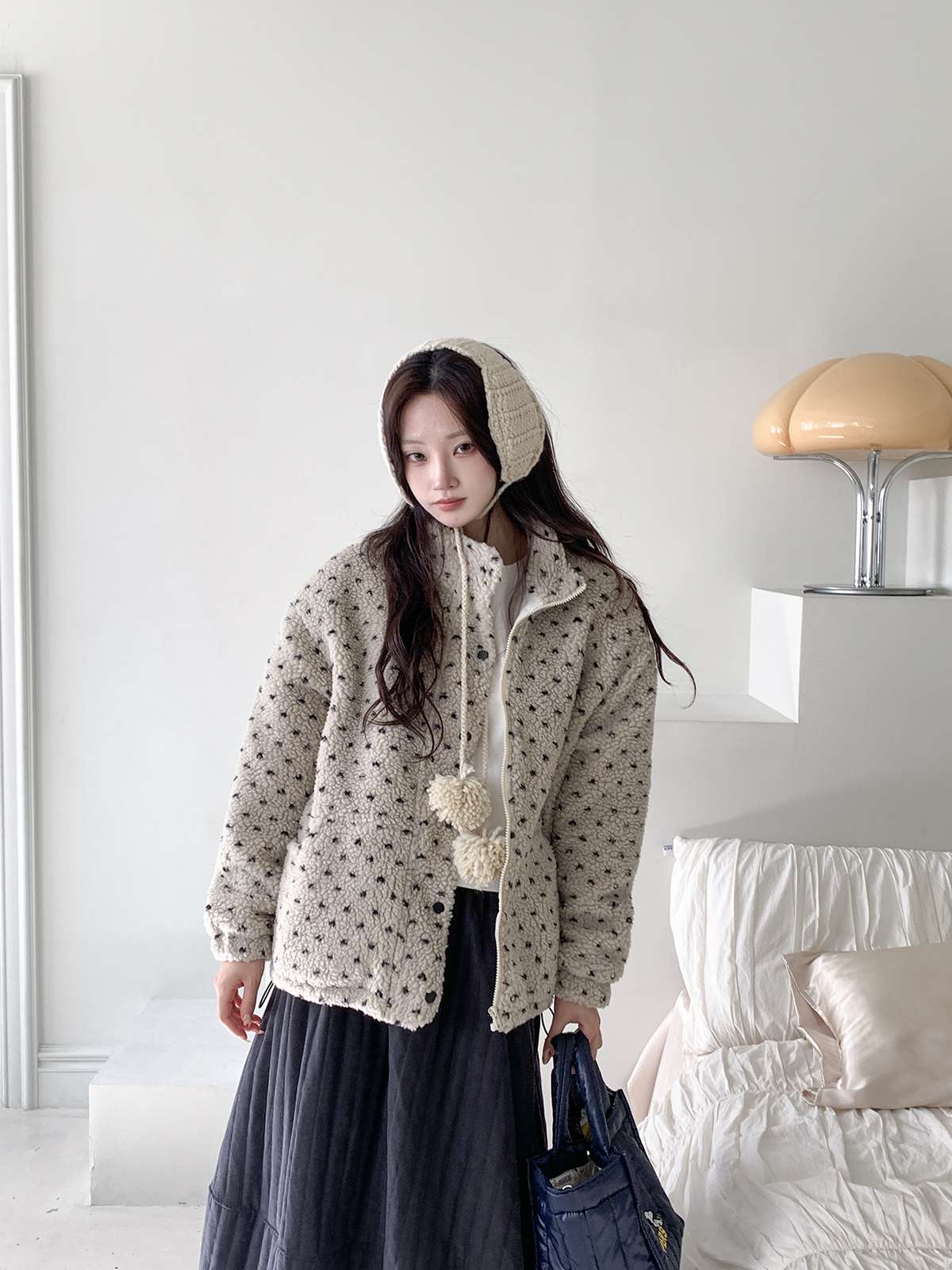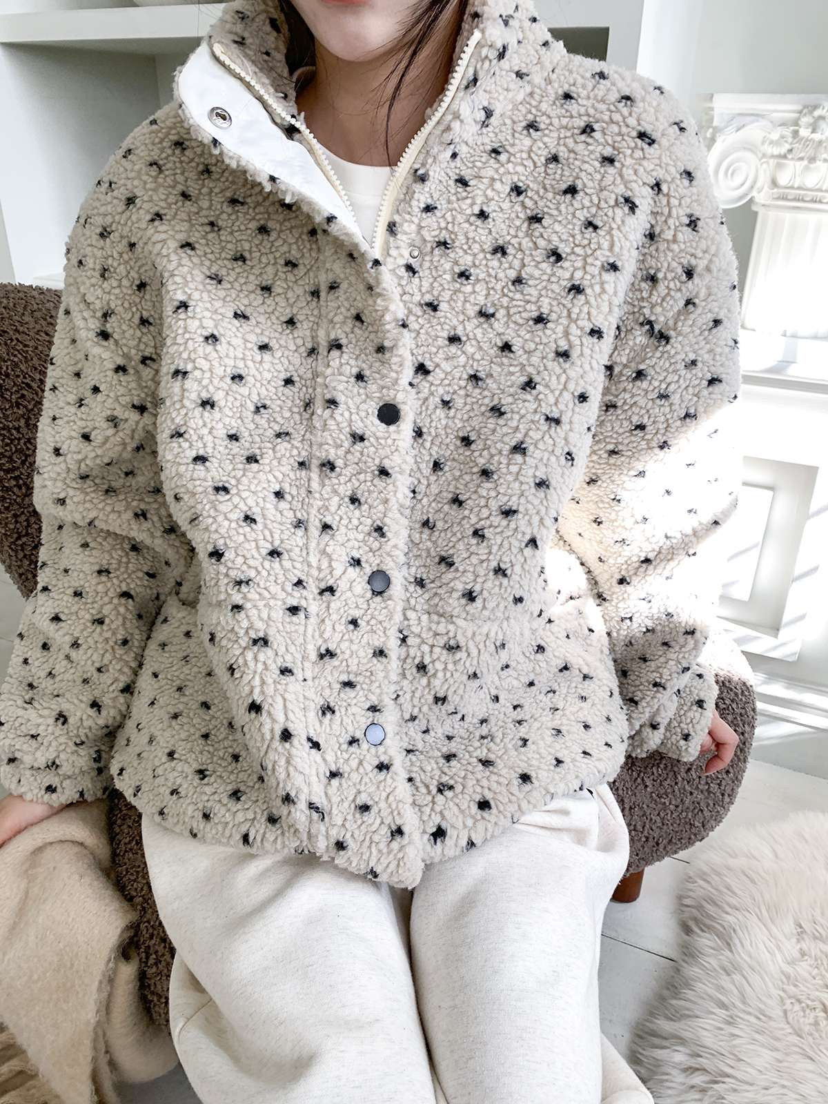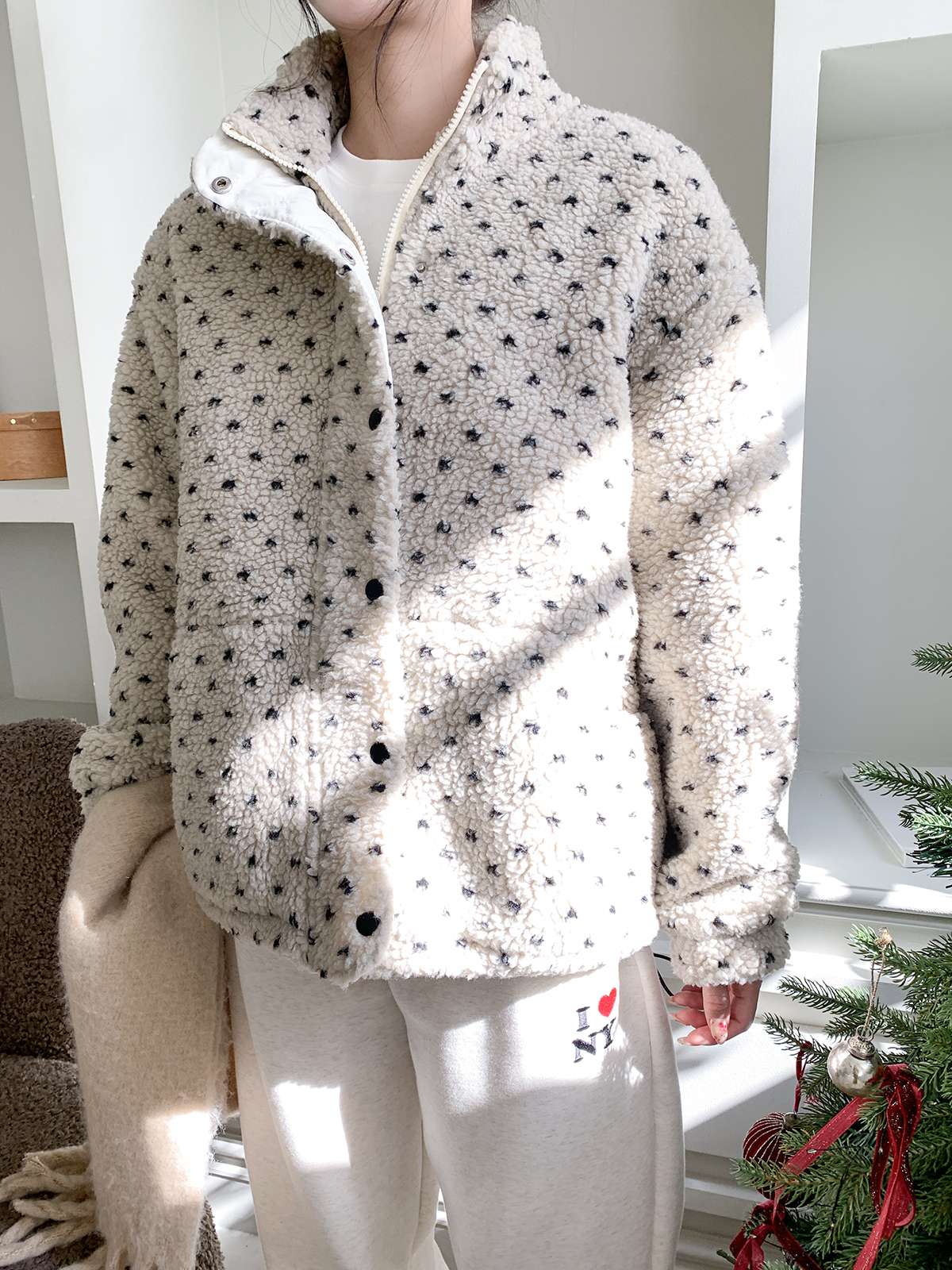 도트 패턴이 귀여운 덤블/뽀글이 후리스 아우터