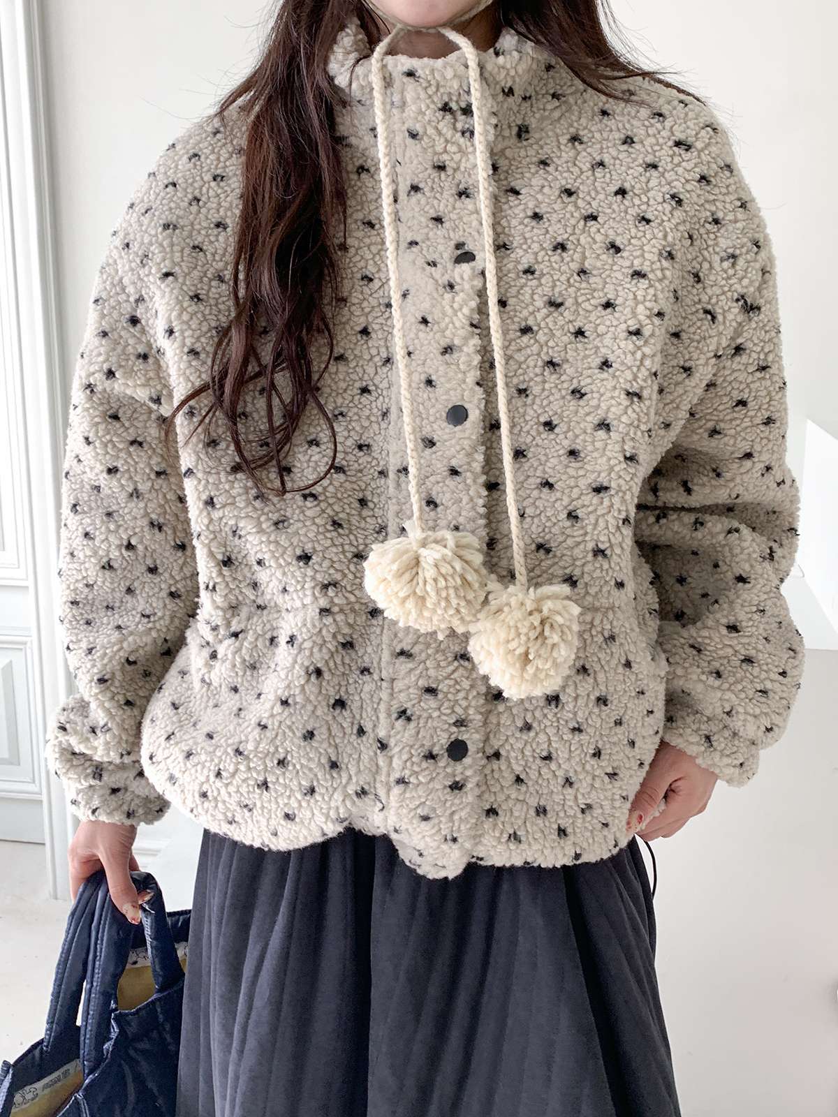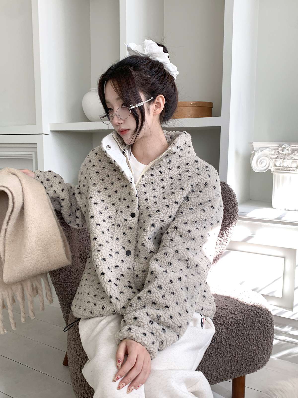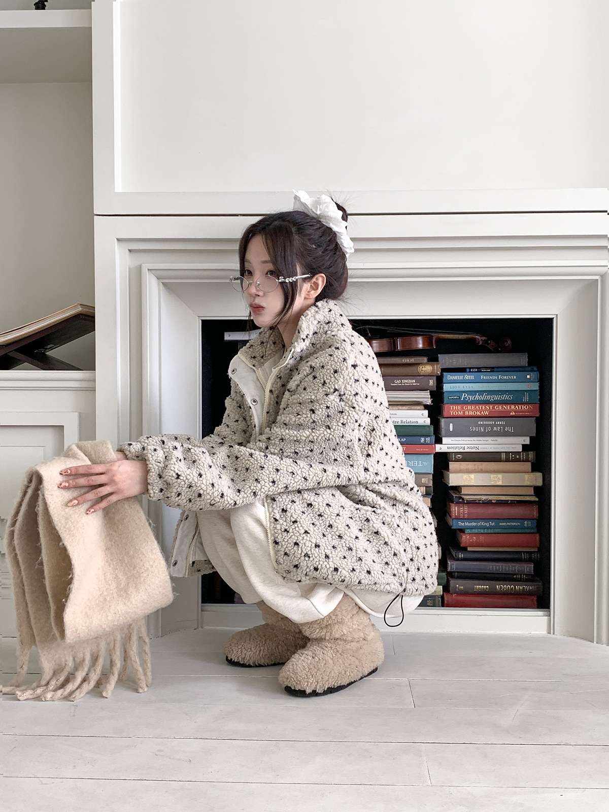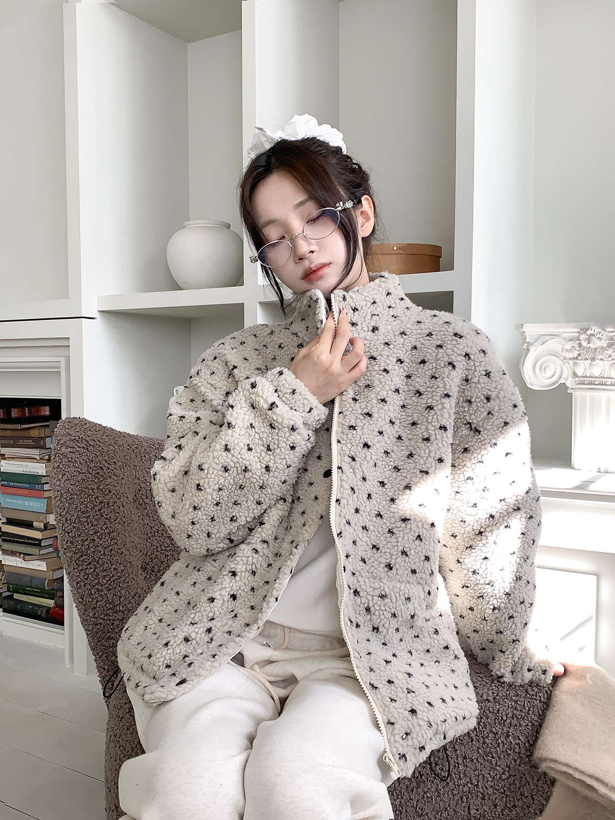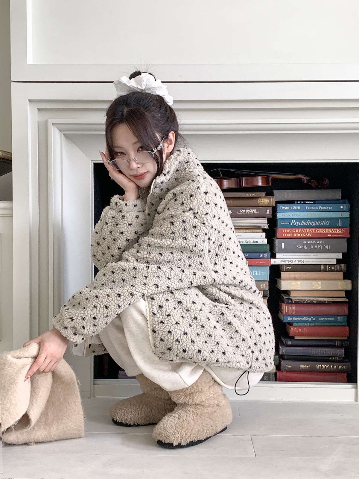 도트 패턴이 귀여운 덤블/뽀글이 후리스 아우터