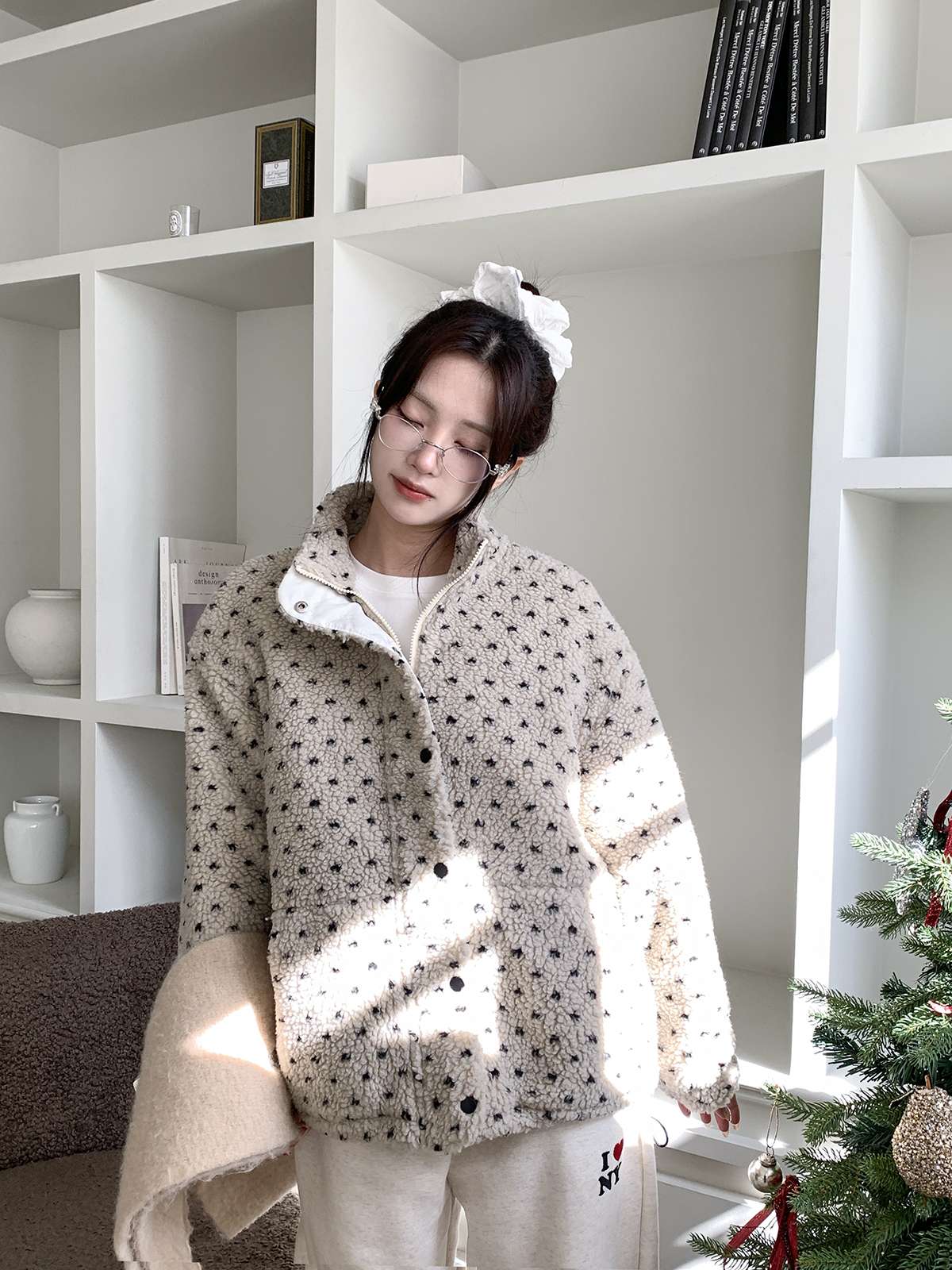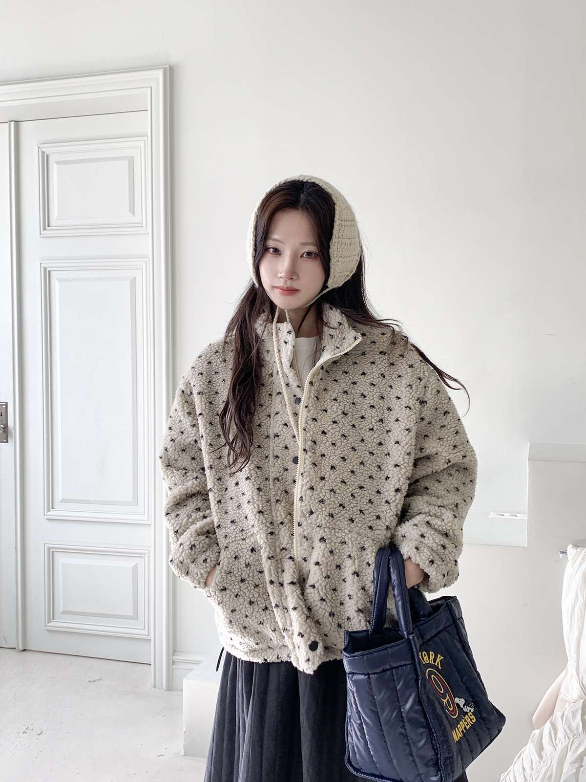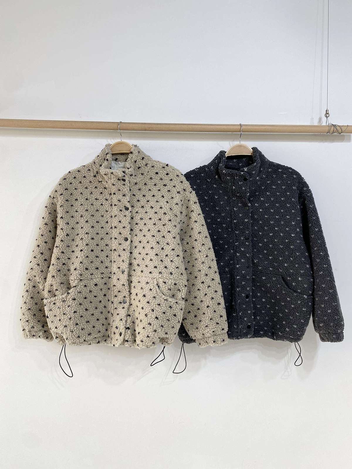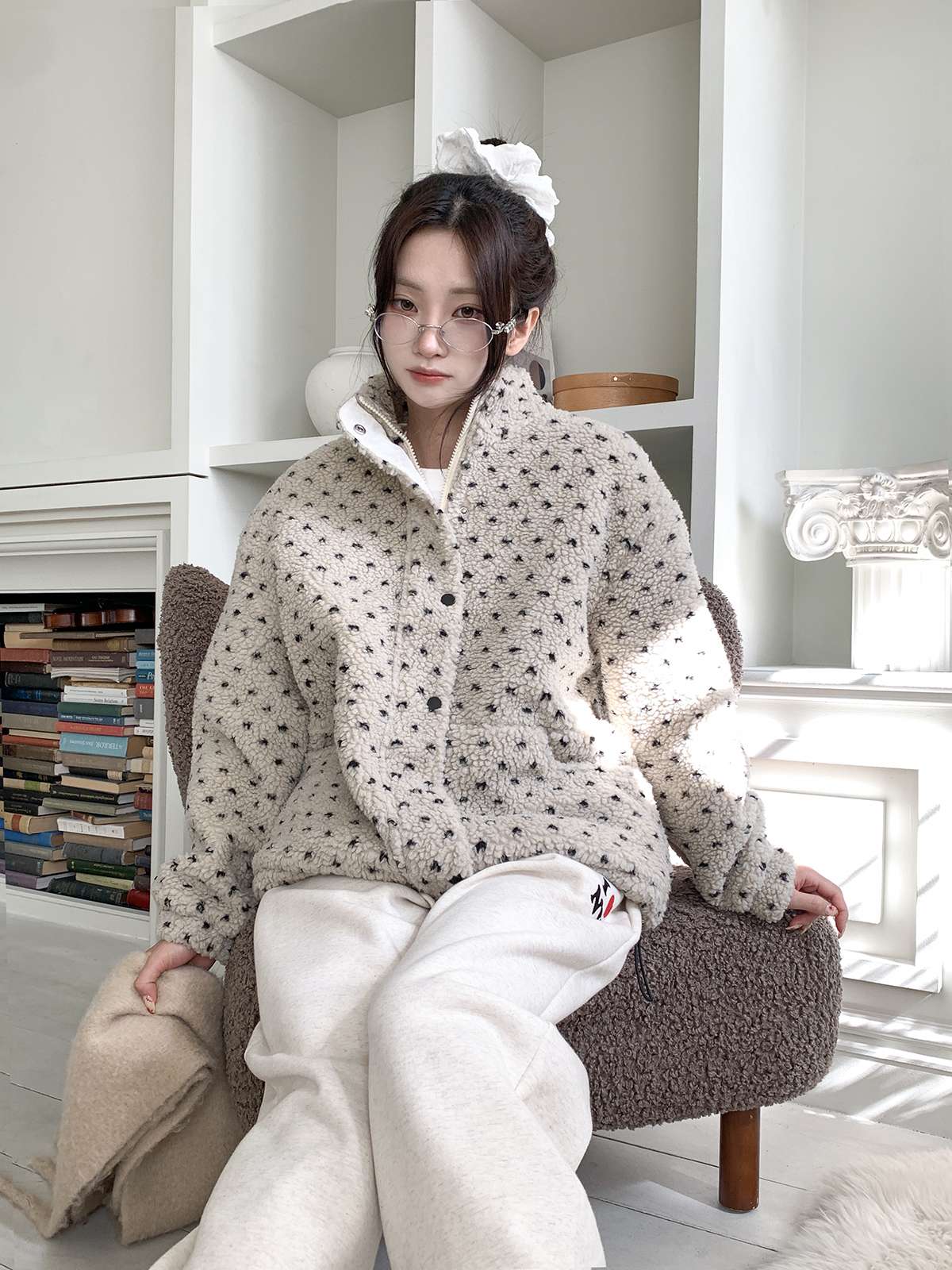 도트 패턴이 귀여운 덤블/뽀글이 후리스 아우터