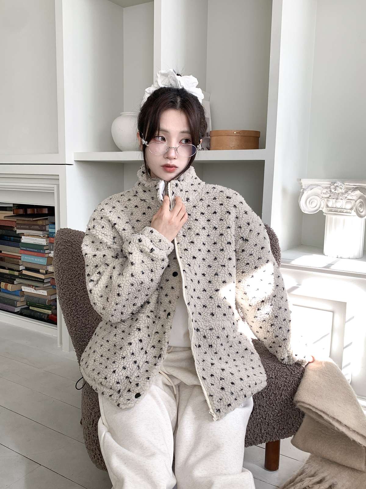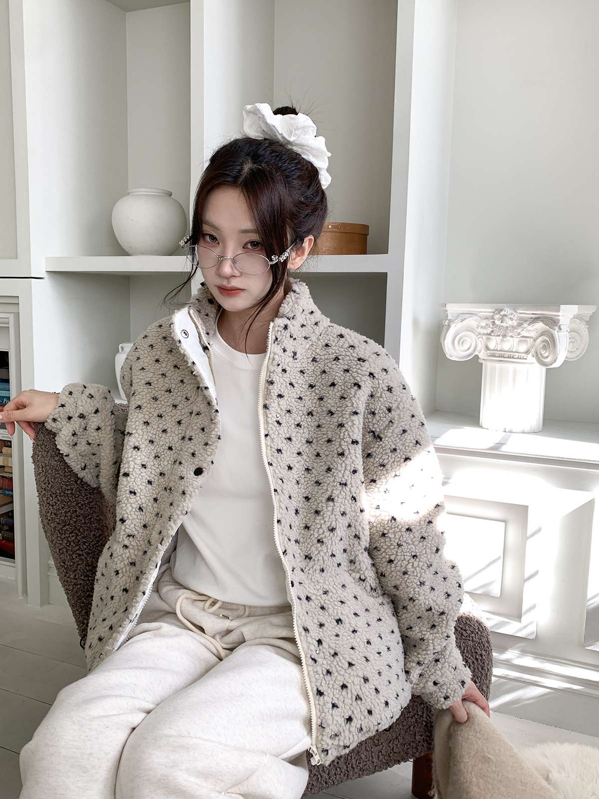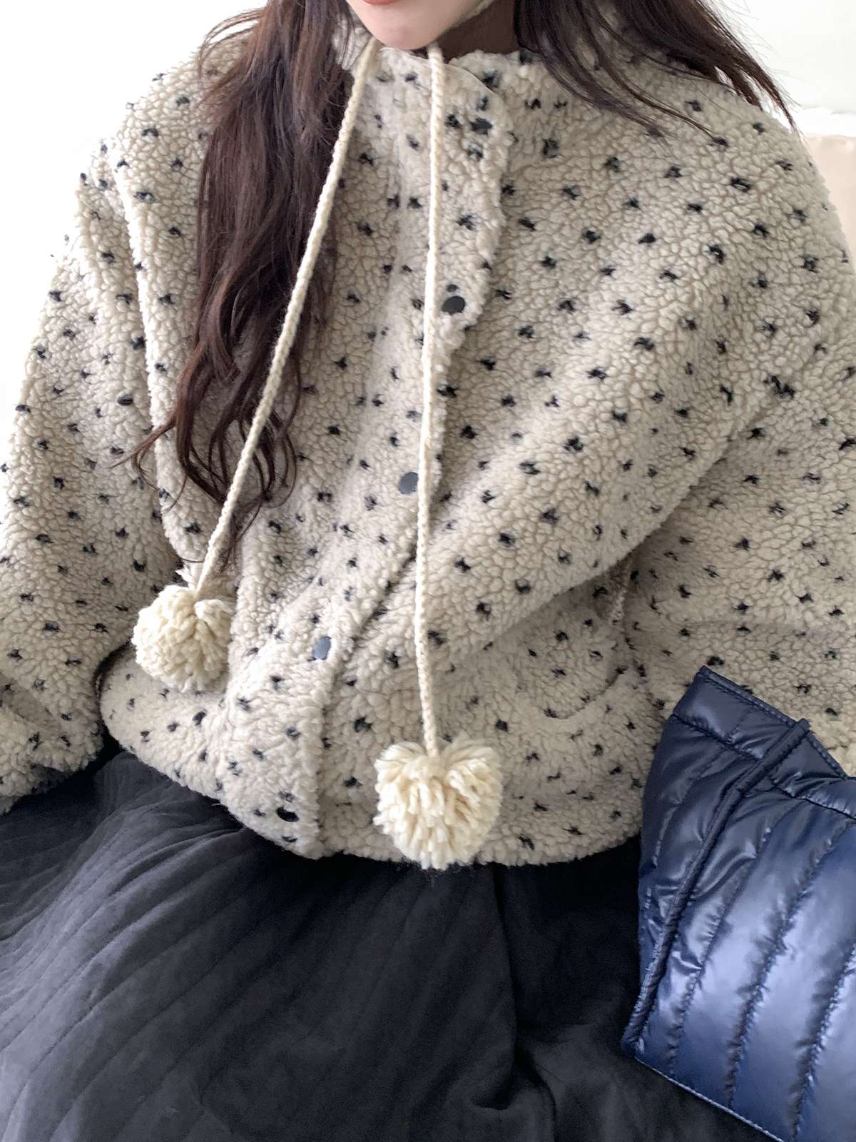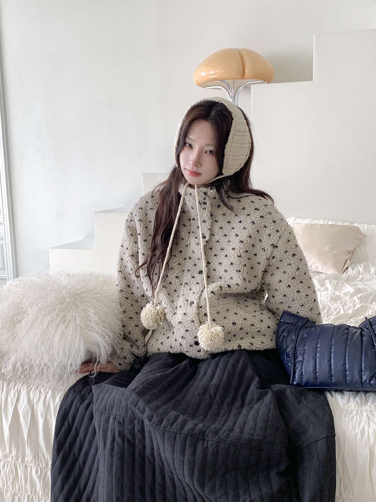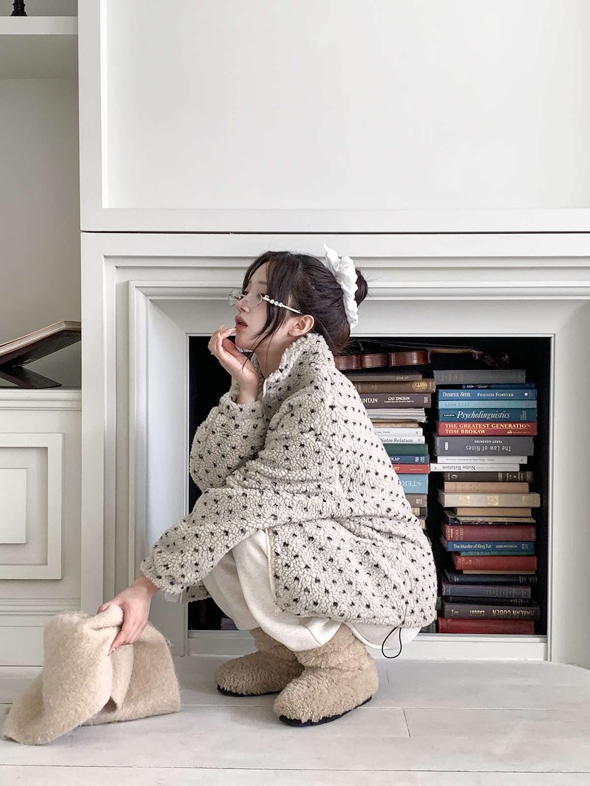 도트 패턴이 귀여운 덤블/뽀글이 후리스 아우터