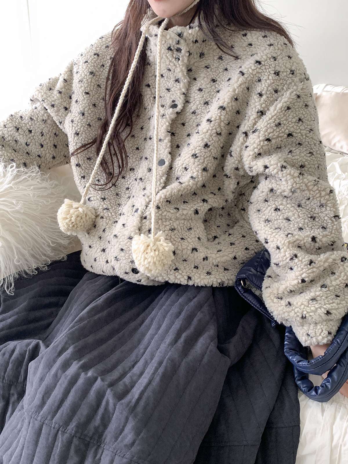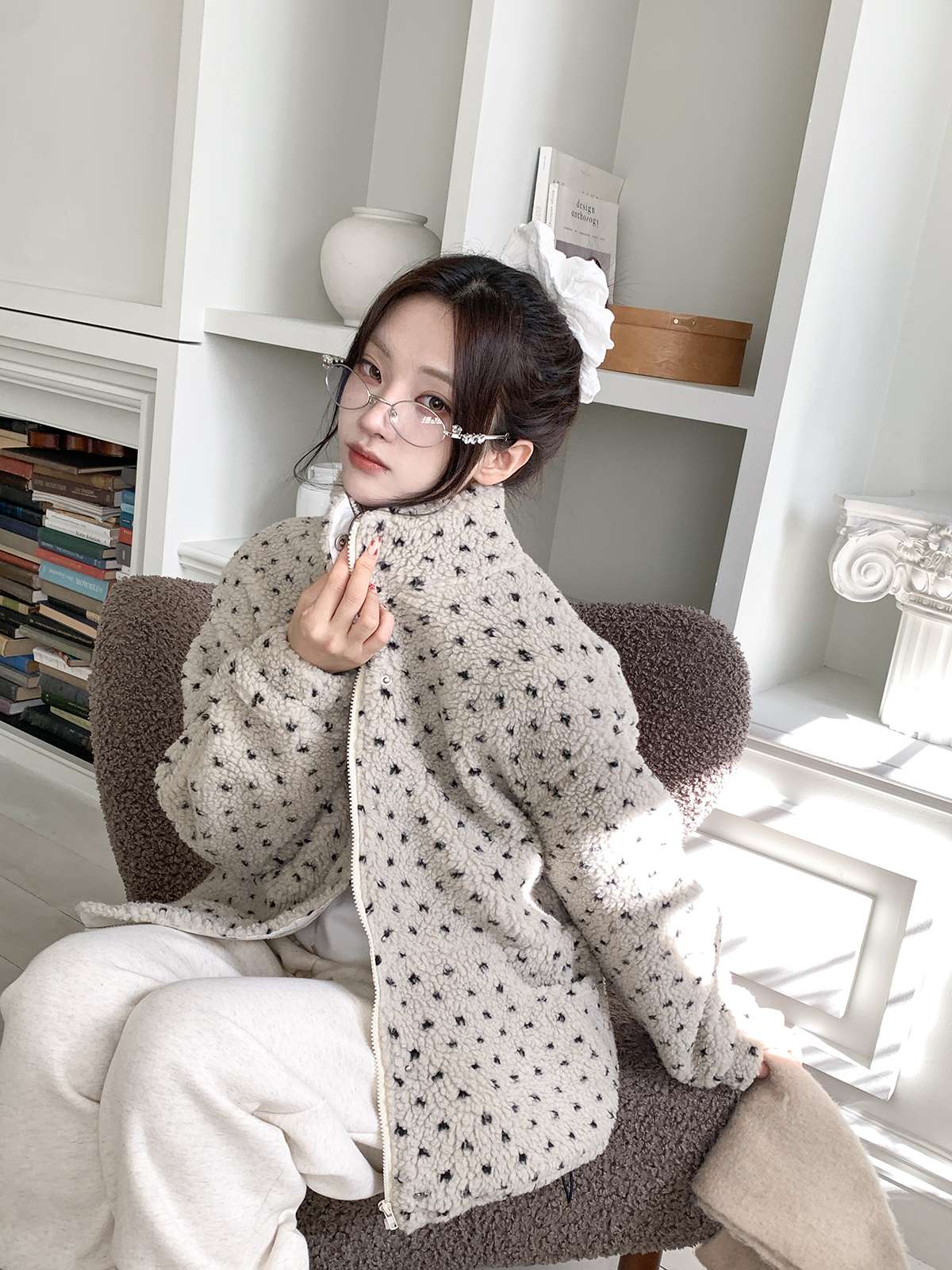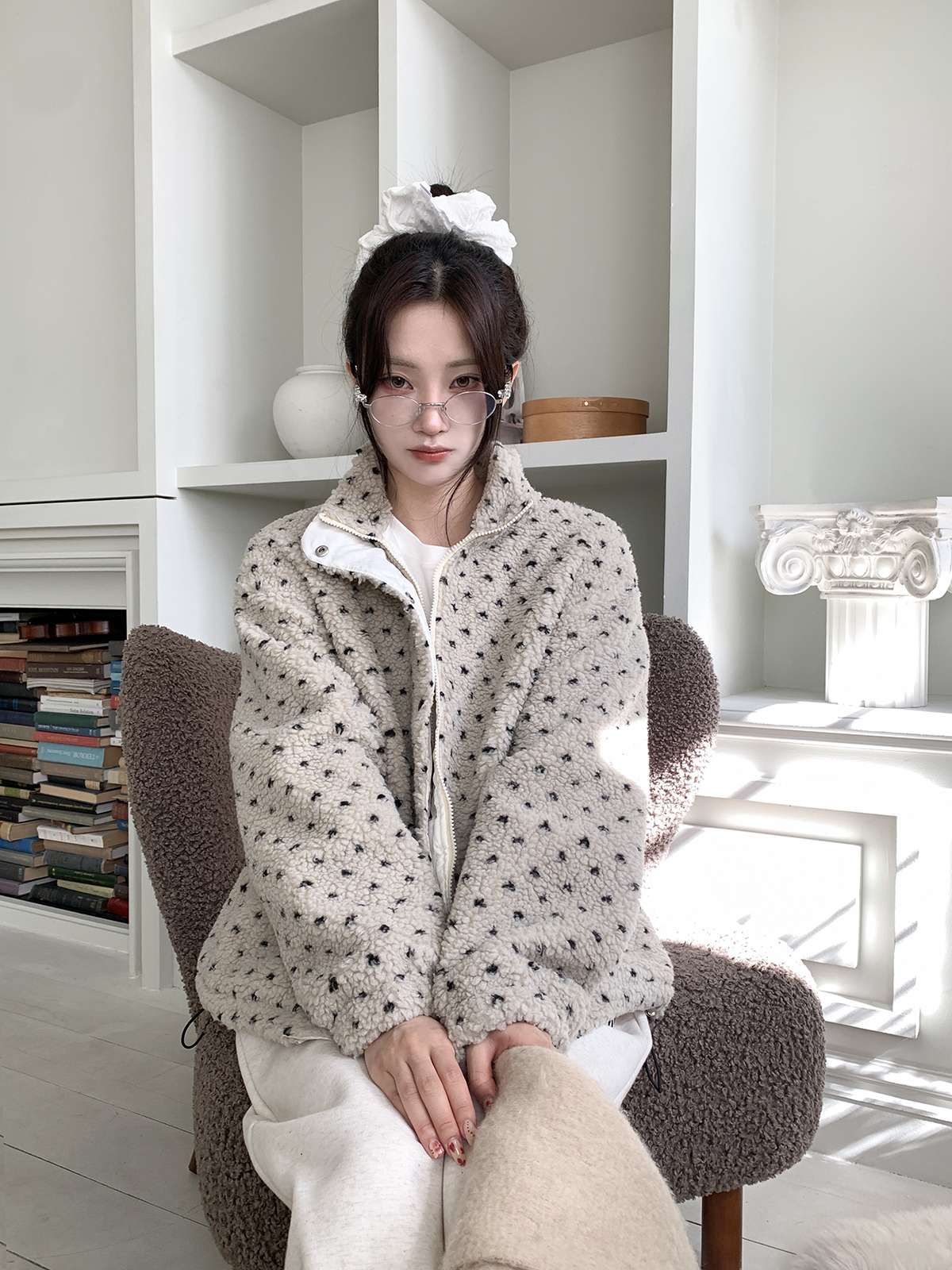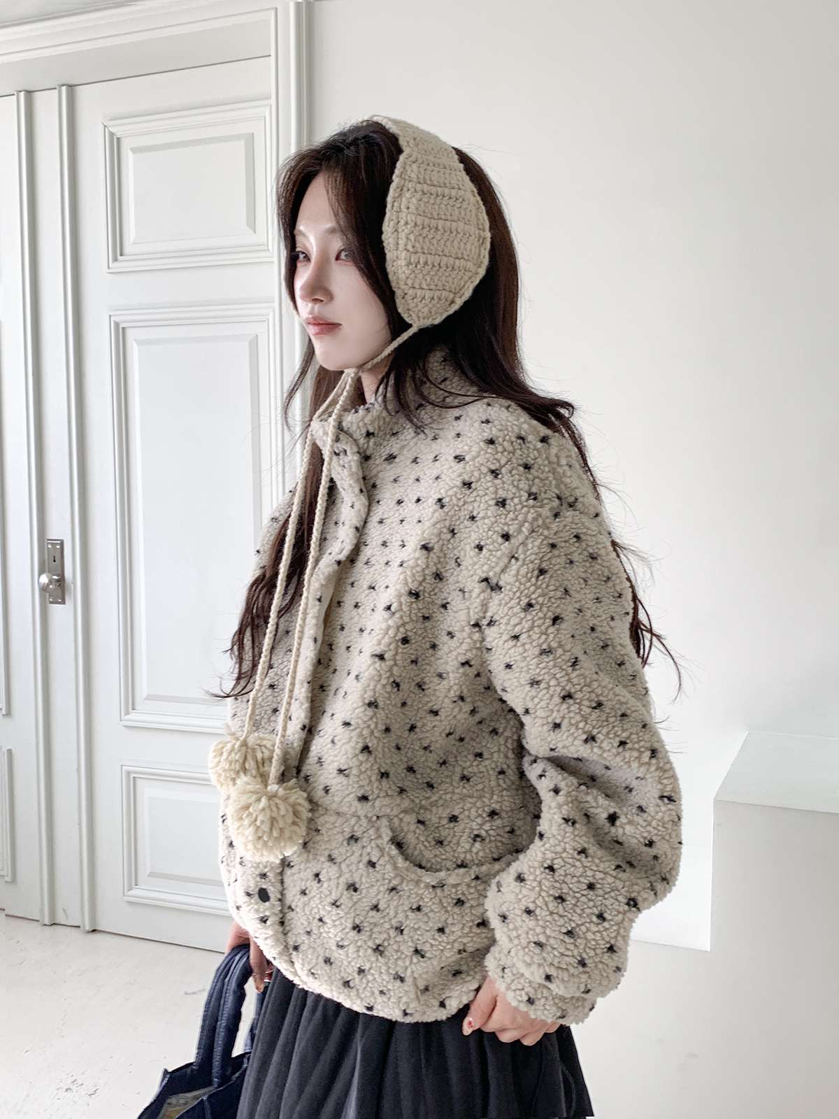 도트 패턴이 귀여운 덤블/뽀글이 후리스 아우터
