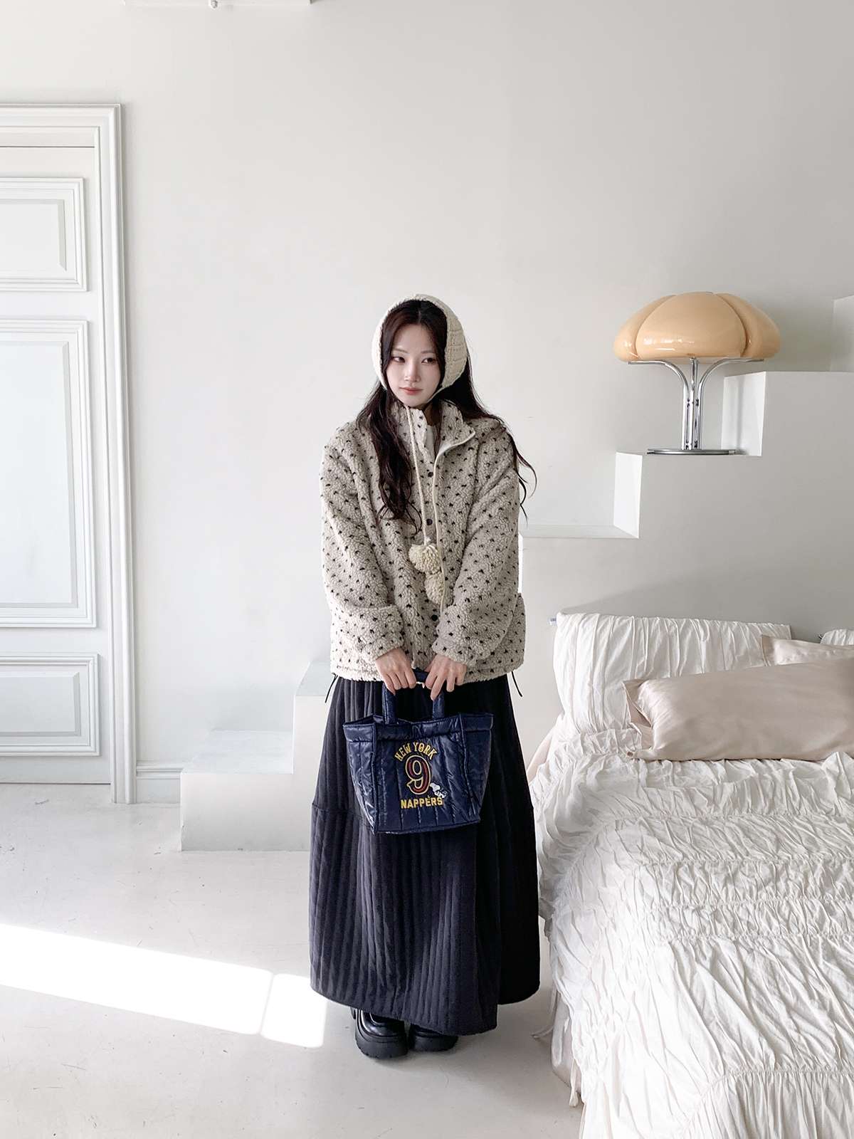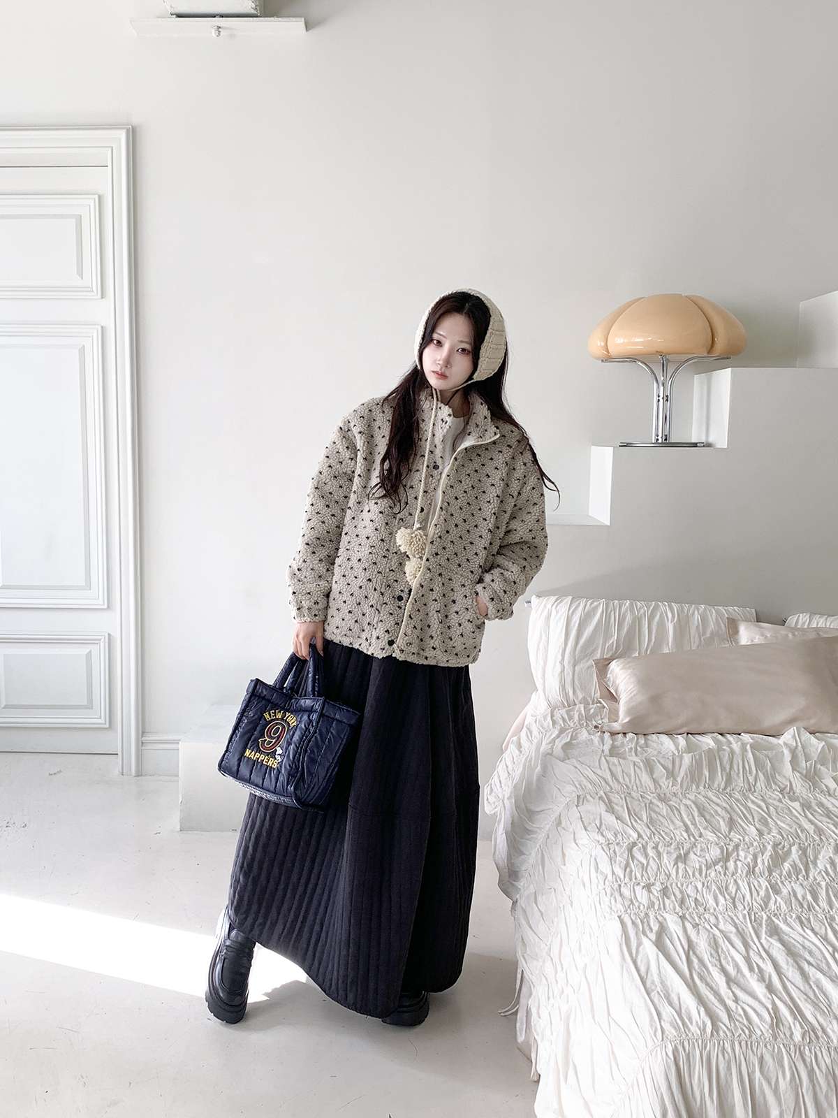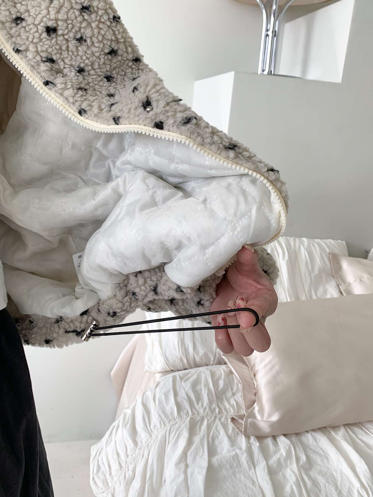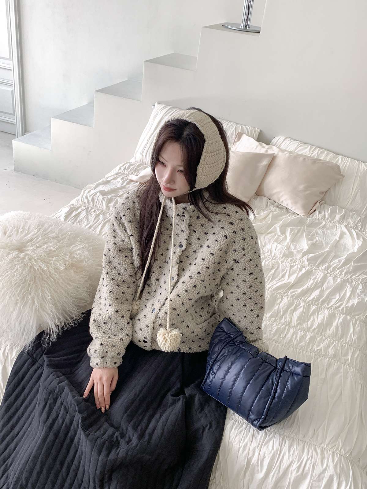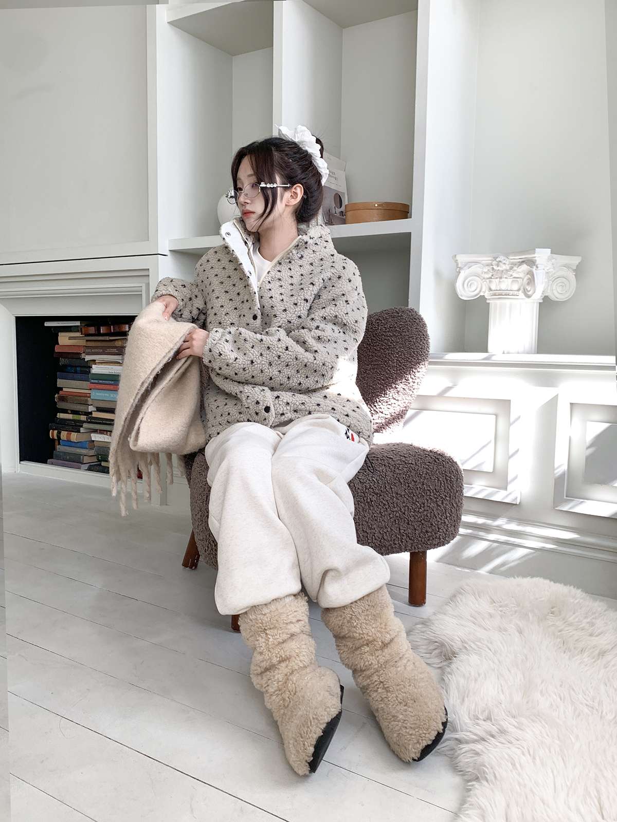 도트 패턴이 귀여운 덤블/뽀글이 후리스 아우터