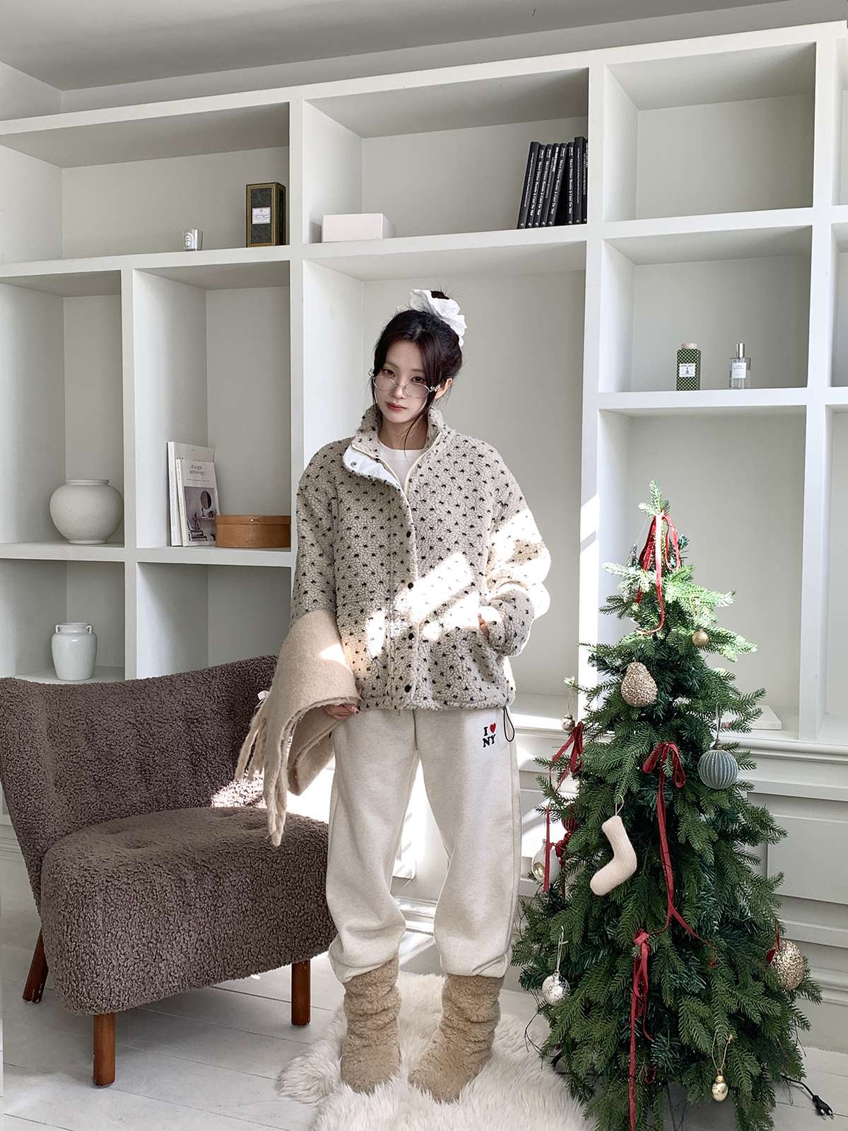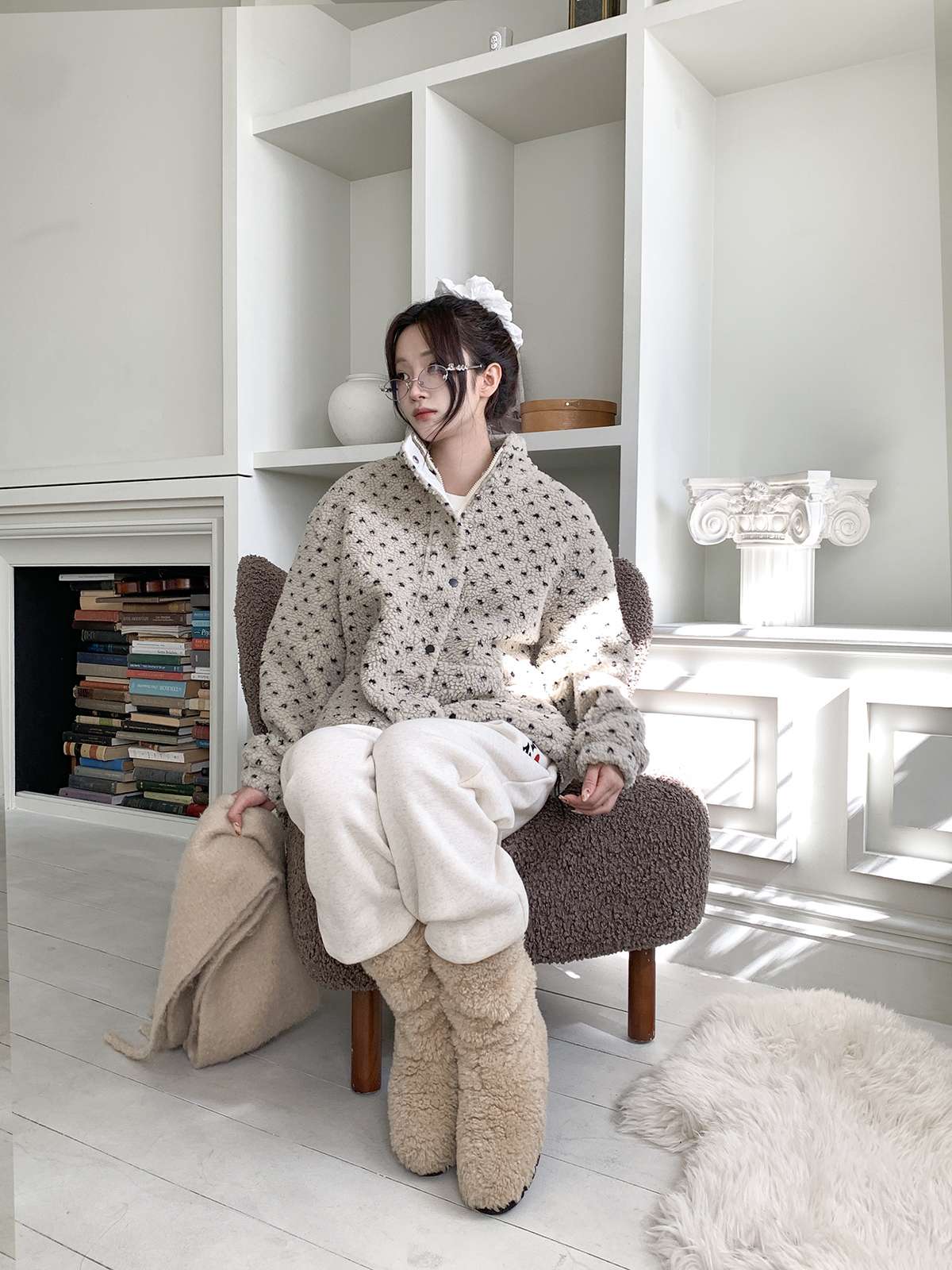 JK6077K5A-엘모르 오버핏 도트 뽀글이 후리스 아우터