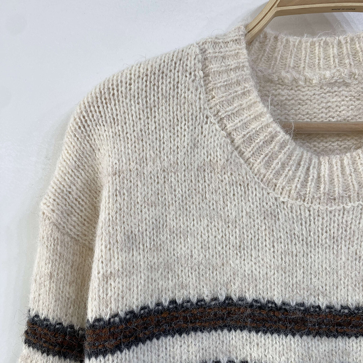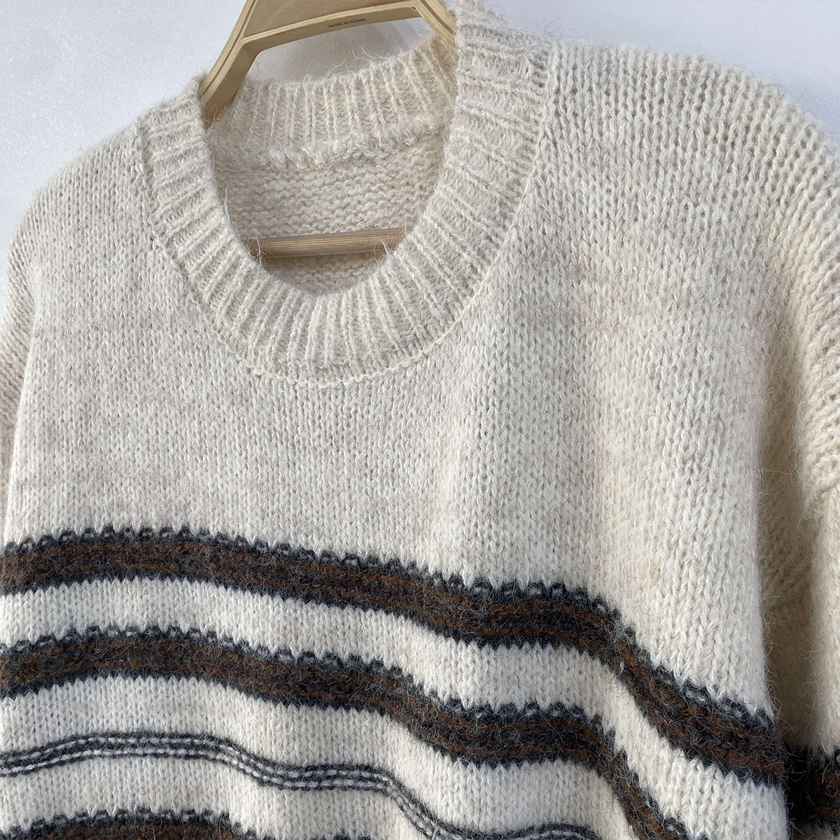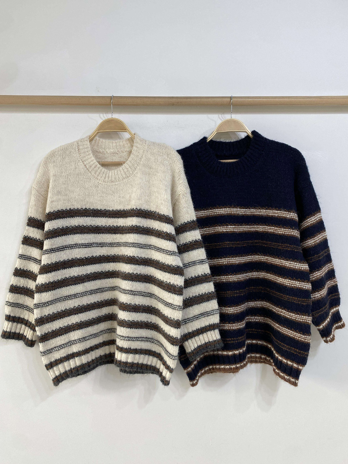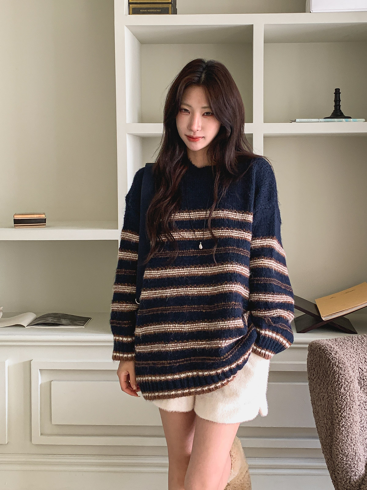 스트라이프 배색이 조화로운 루즈핏 라운드넥 니트