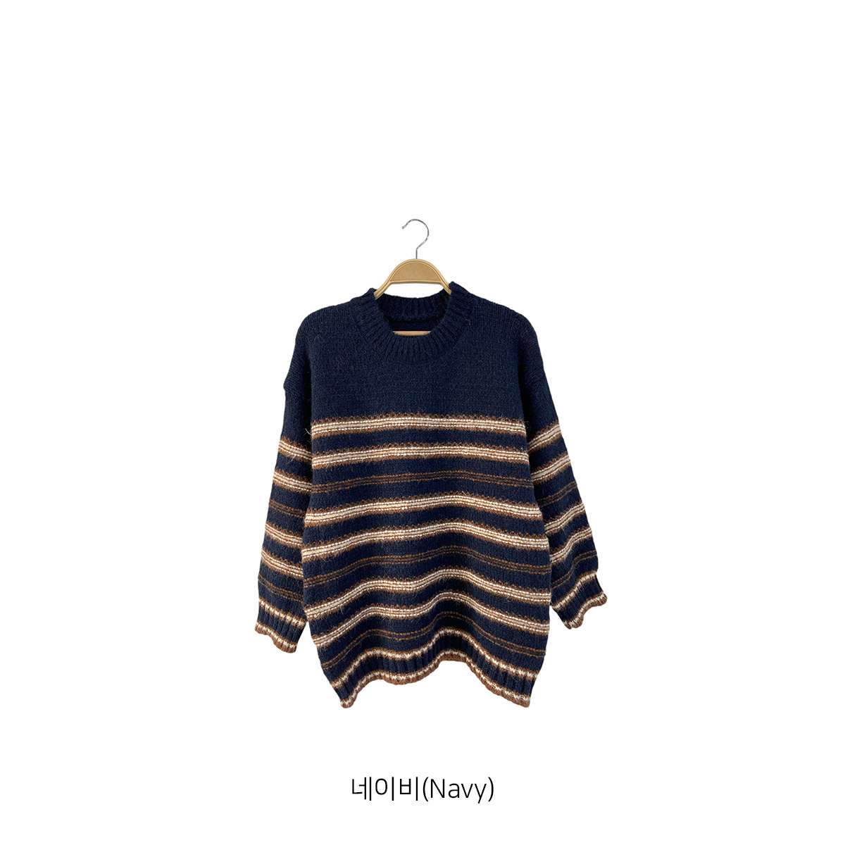 [ NT6063K5A-다모르 루즈핏 스트라이프 배색 니트 ]