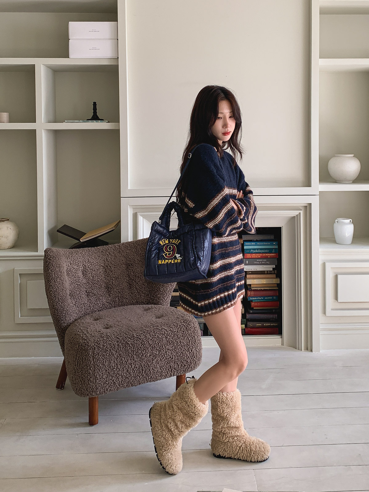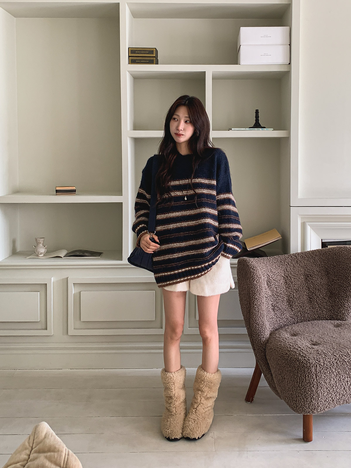 #니트#라운드넥니트#여성니트#데일리니트#니트코디#데일리코디#페미닌#러블리#캐쥬얼#데일리#겨울#겨울옷#겨울신상#배색니트#스트라이프#루즈핏#캐주얼#꾸안꾸#단가라