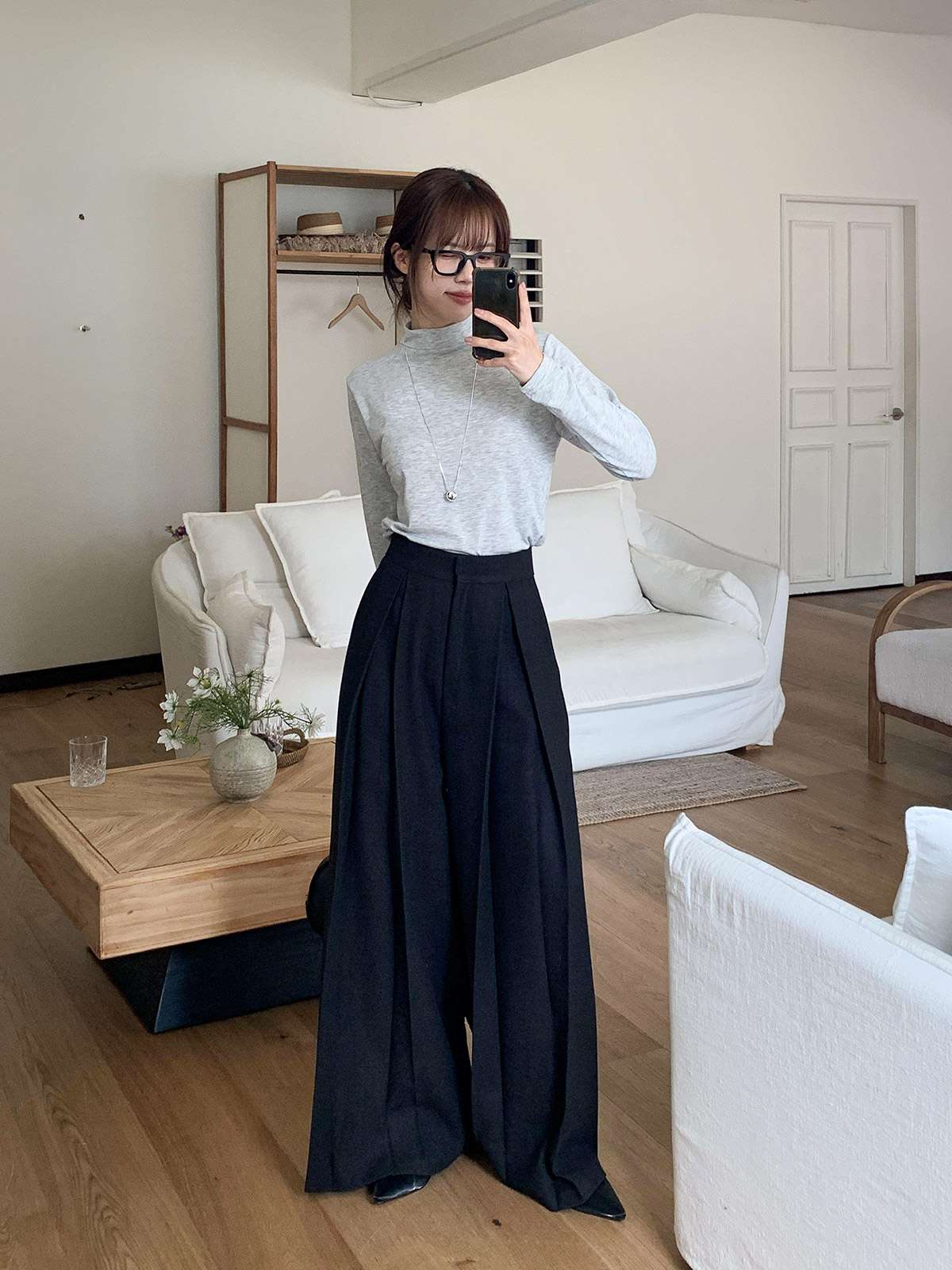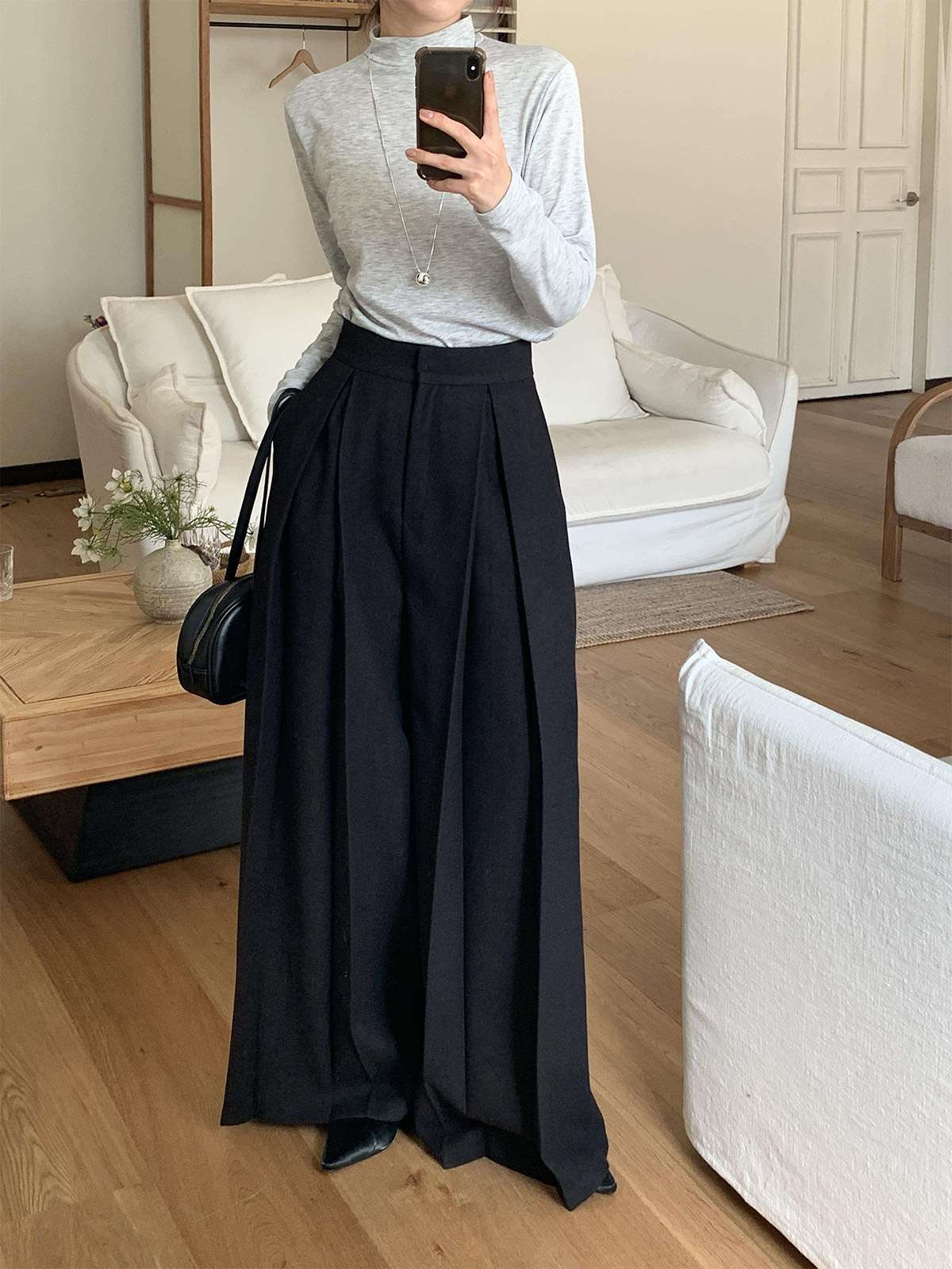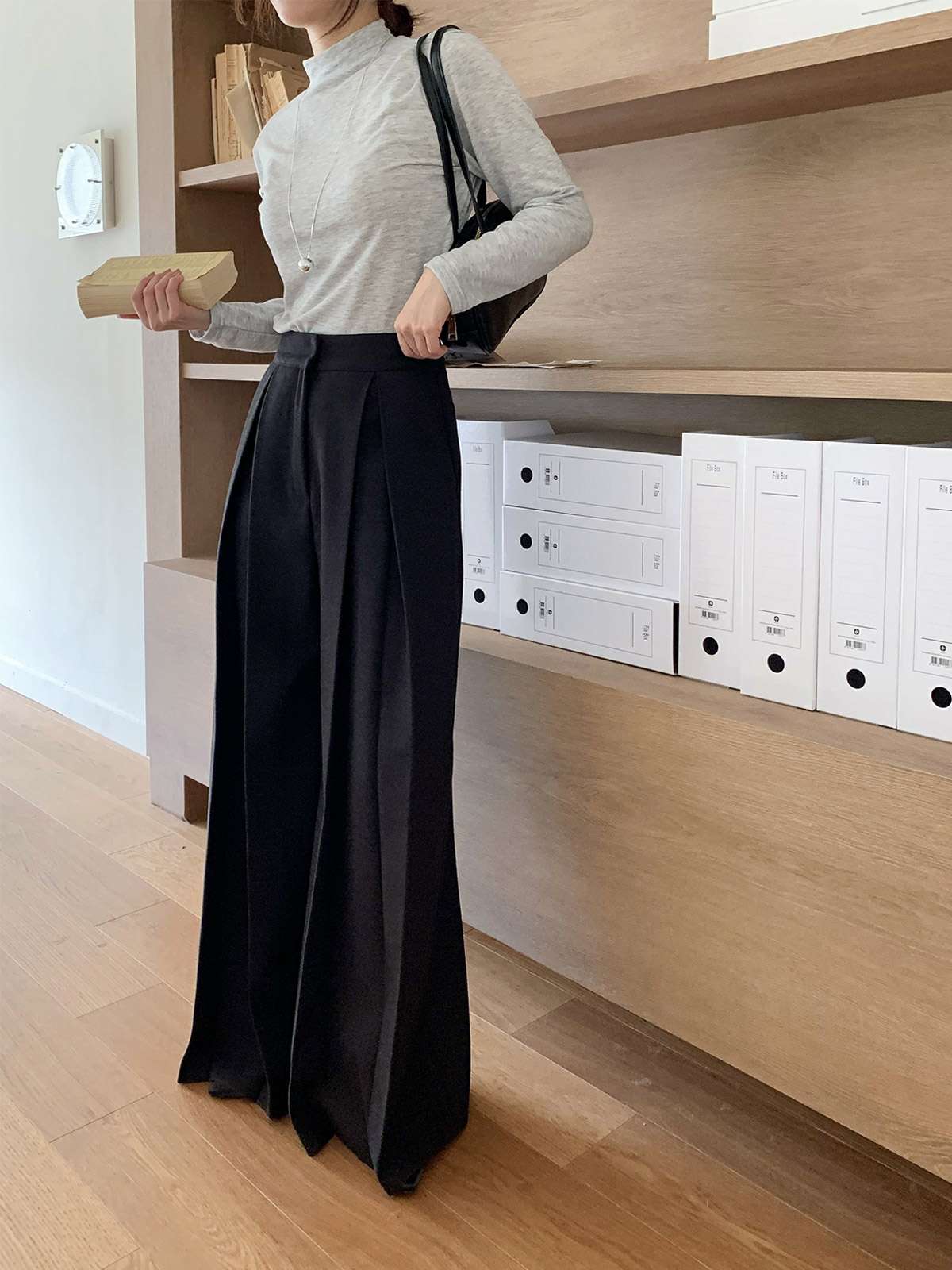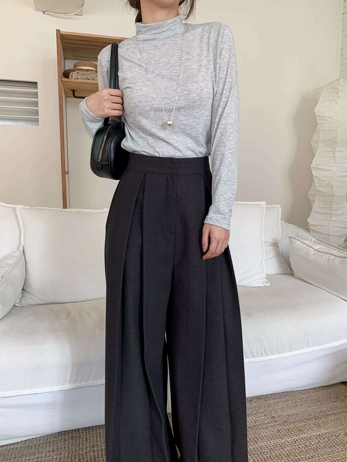 클래식하고 포멀한 앞 핀턱 와이드 슬랙스