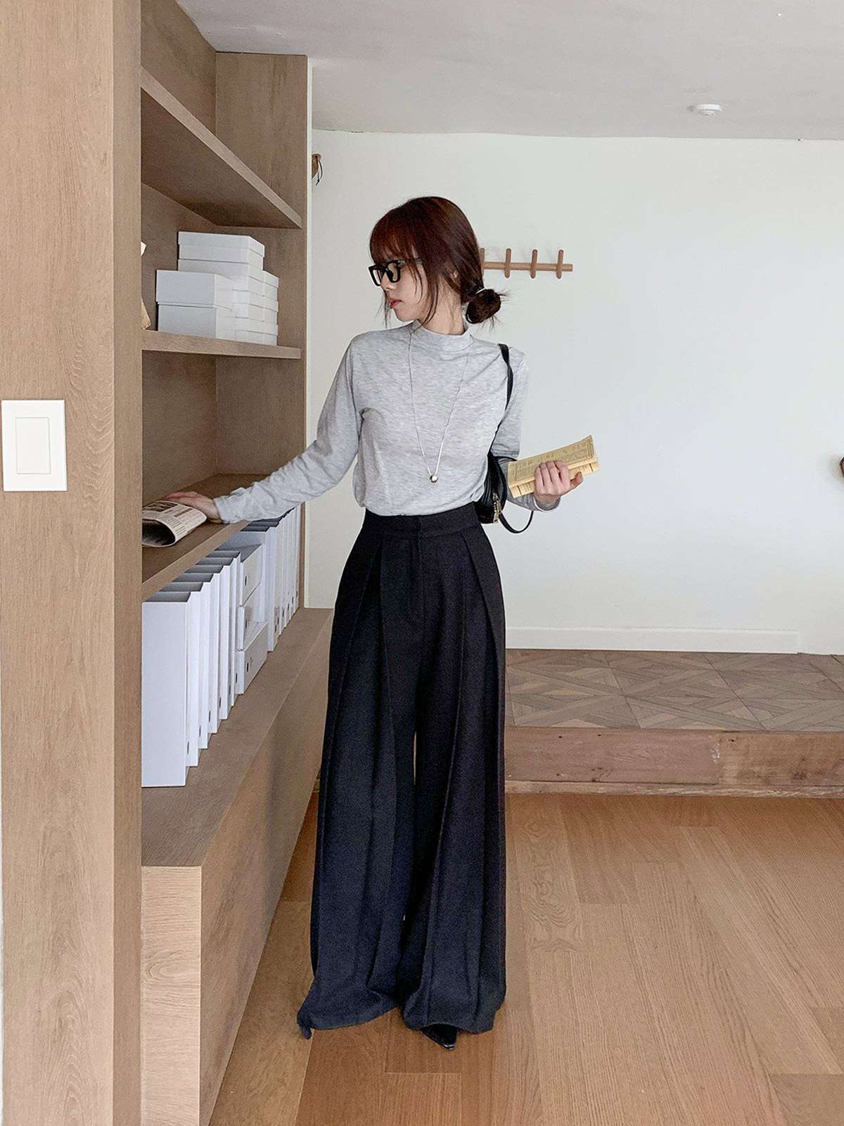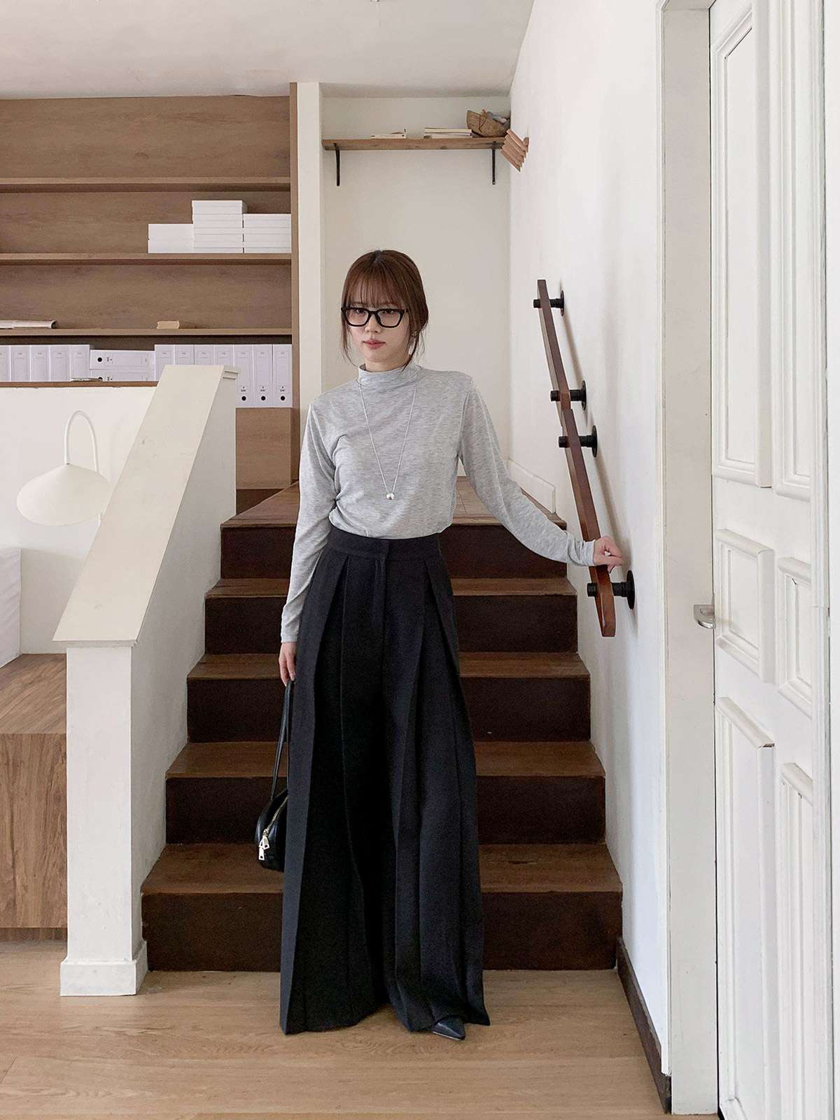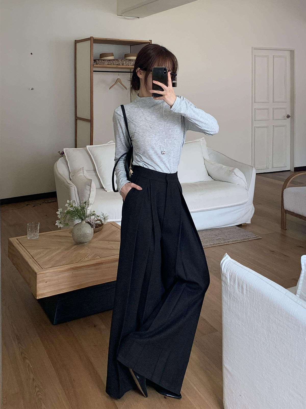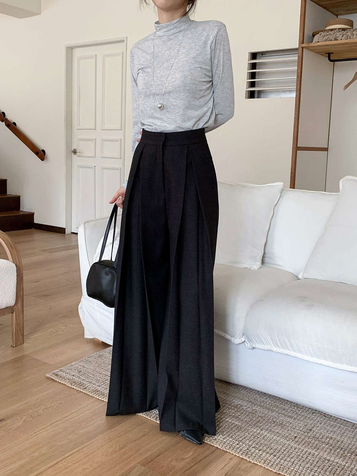 클래식하고 포멀한 앞 핀턱 와이드 슬랙스