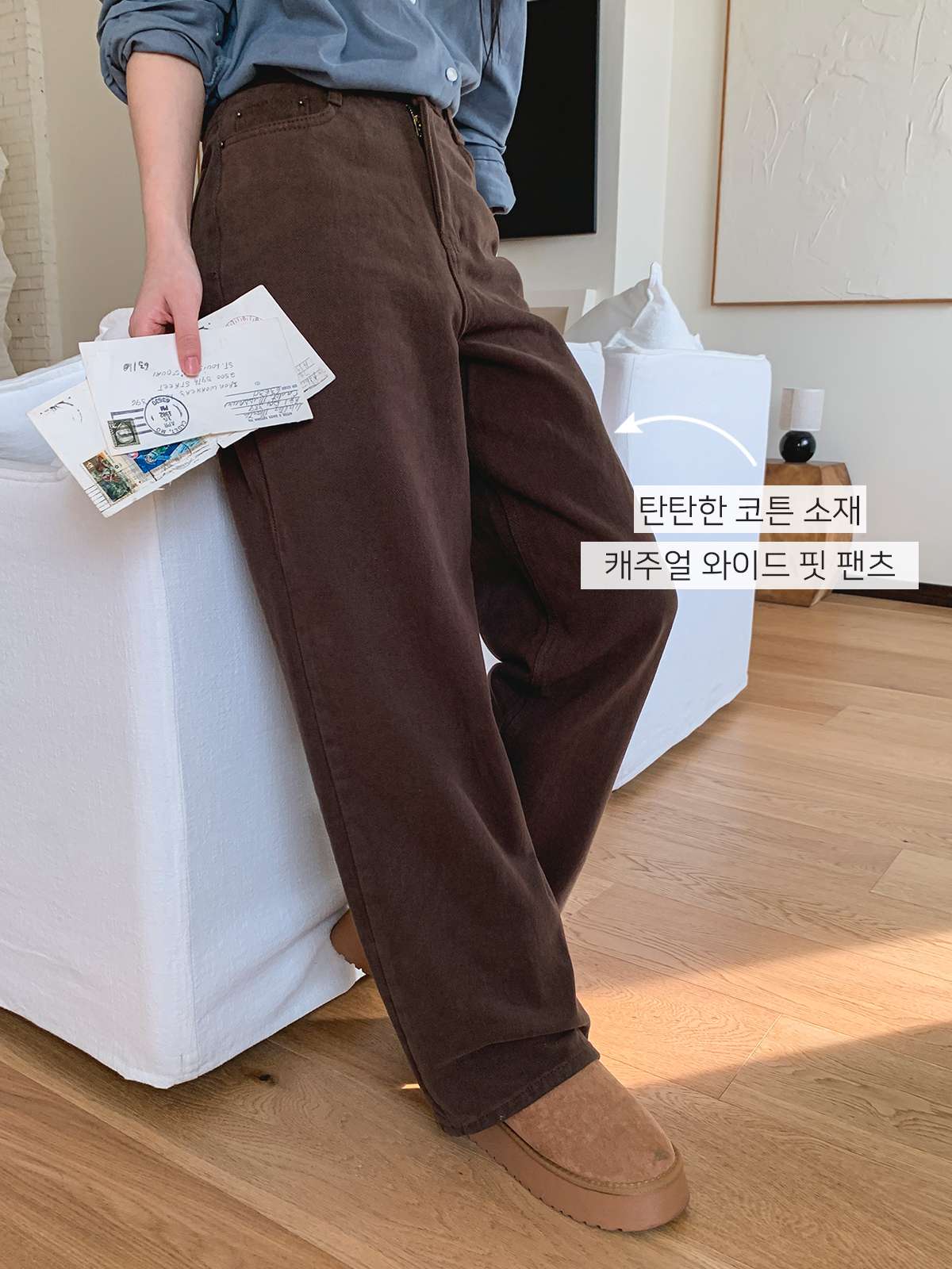 탄탄하고 편한 코튼 소재 와이드 팬츠입니다!