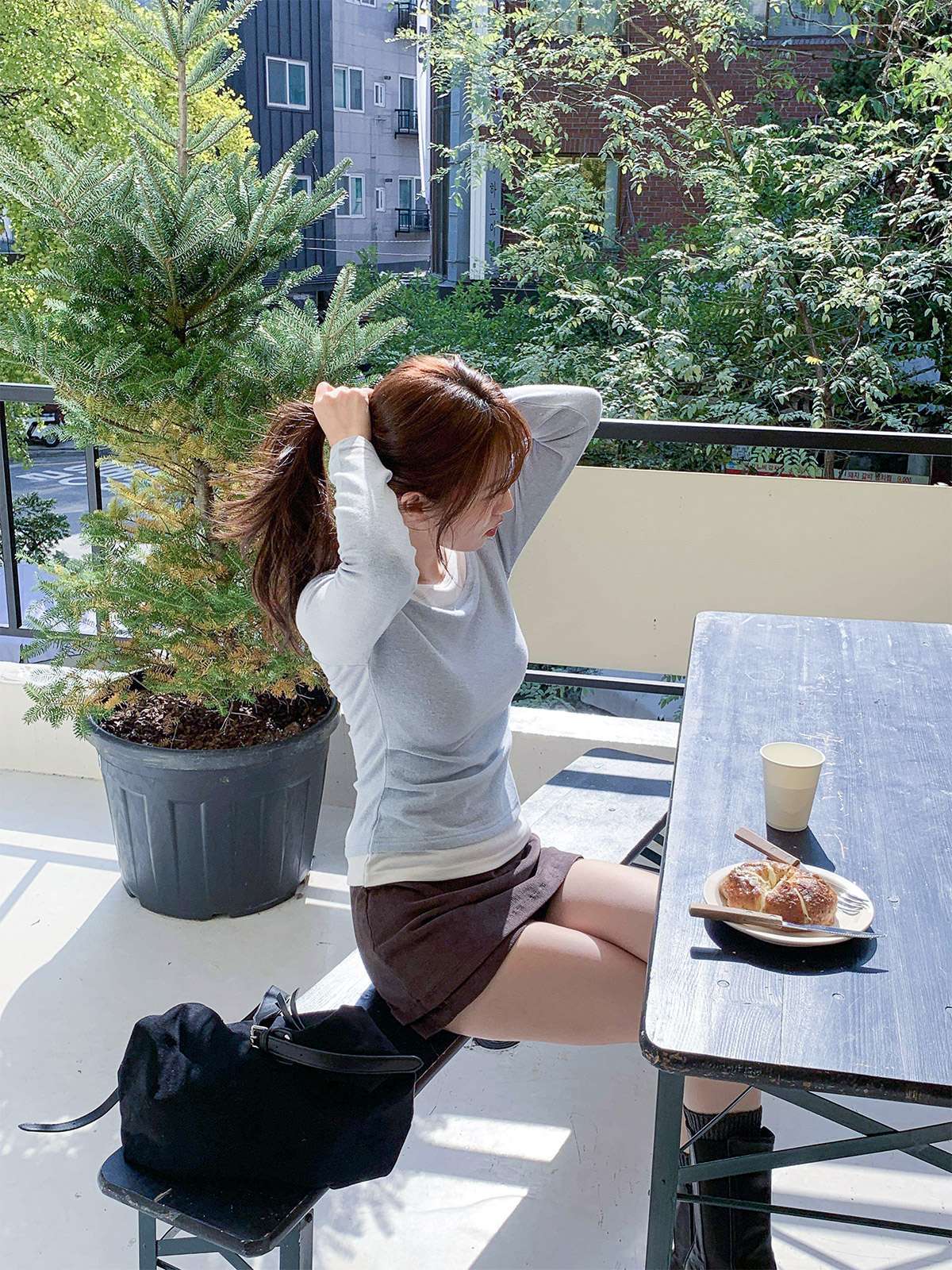 데일리한 컬러감의 긴팔 레이어드 티셔츠