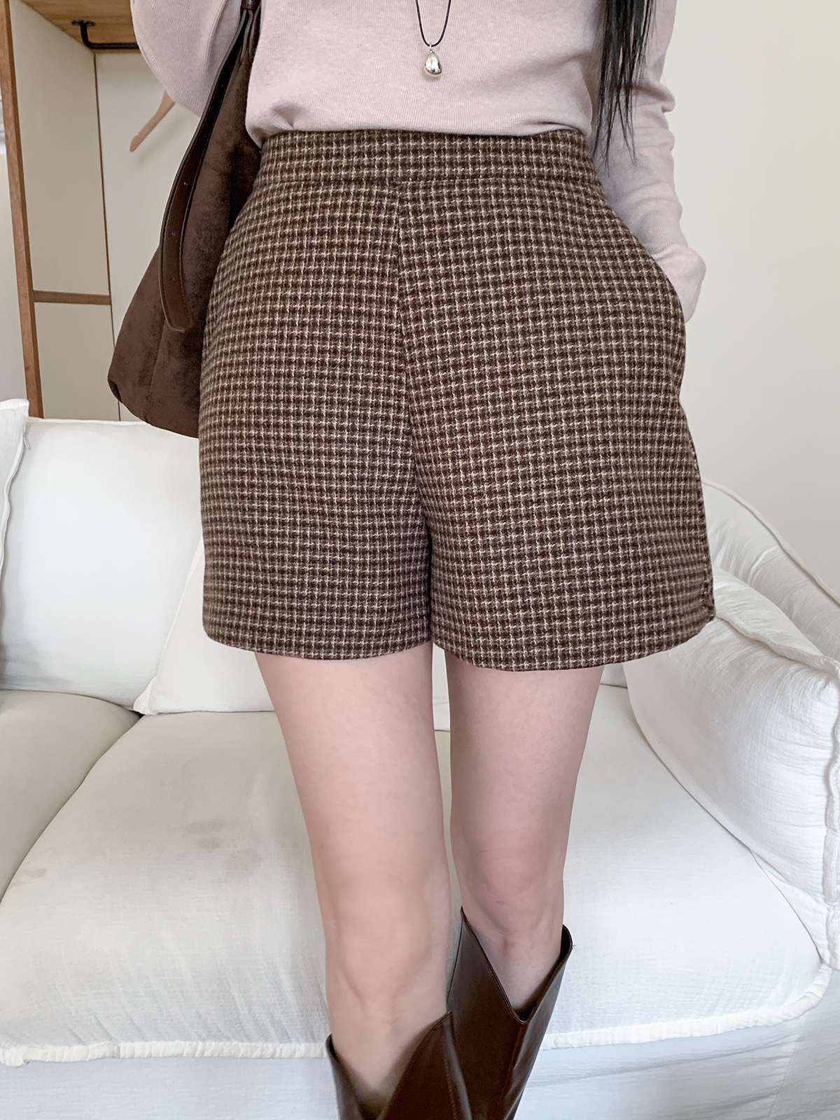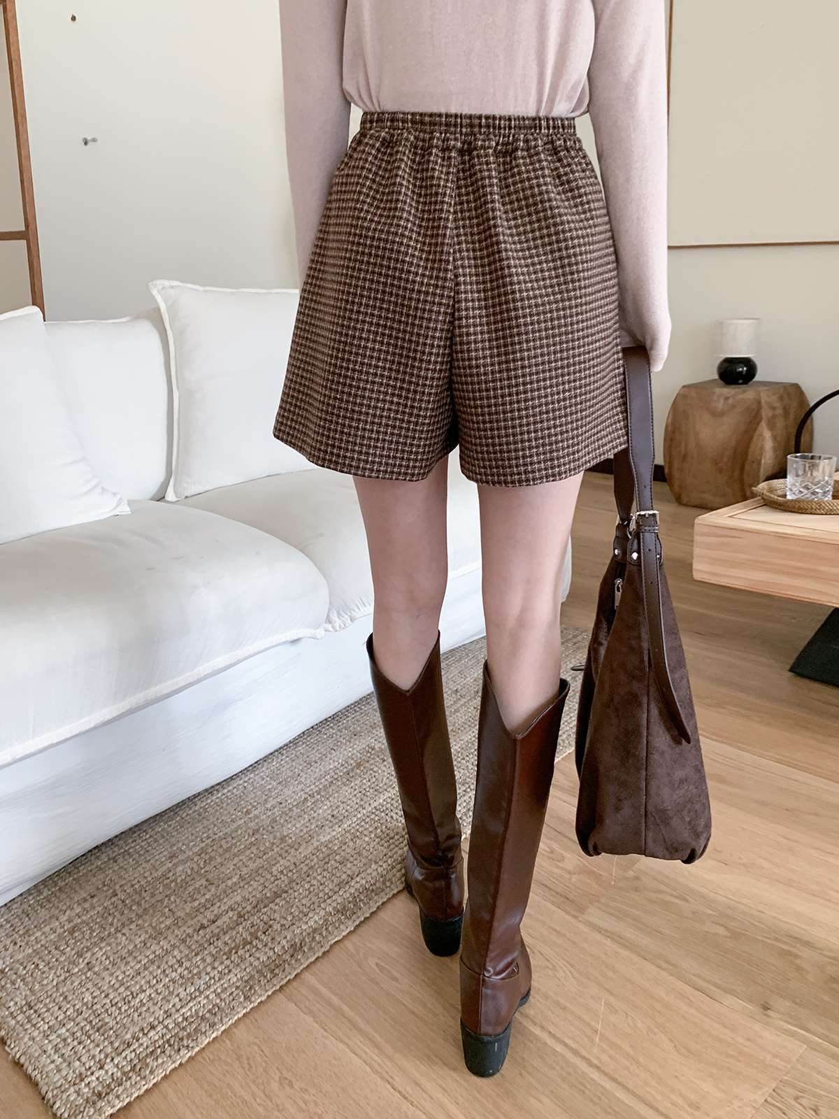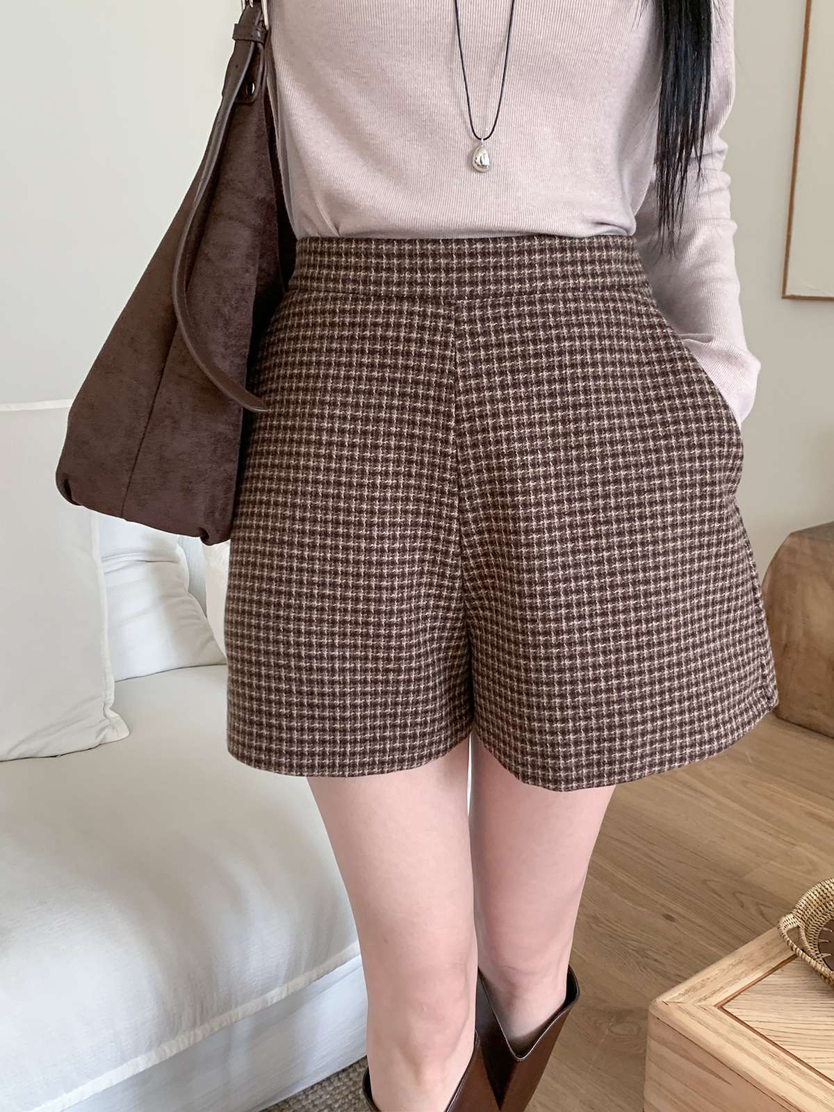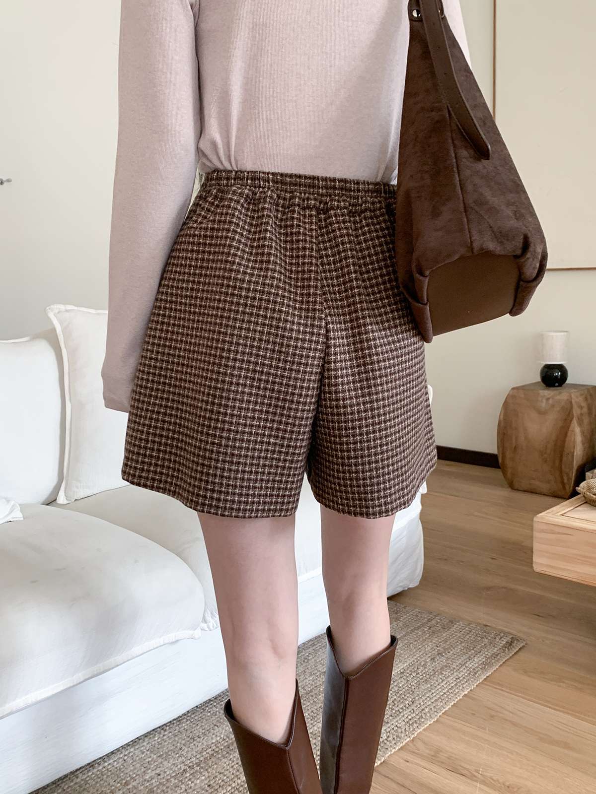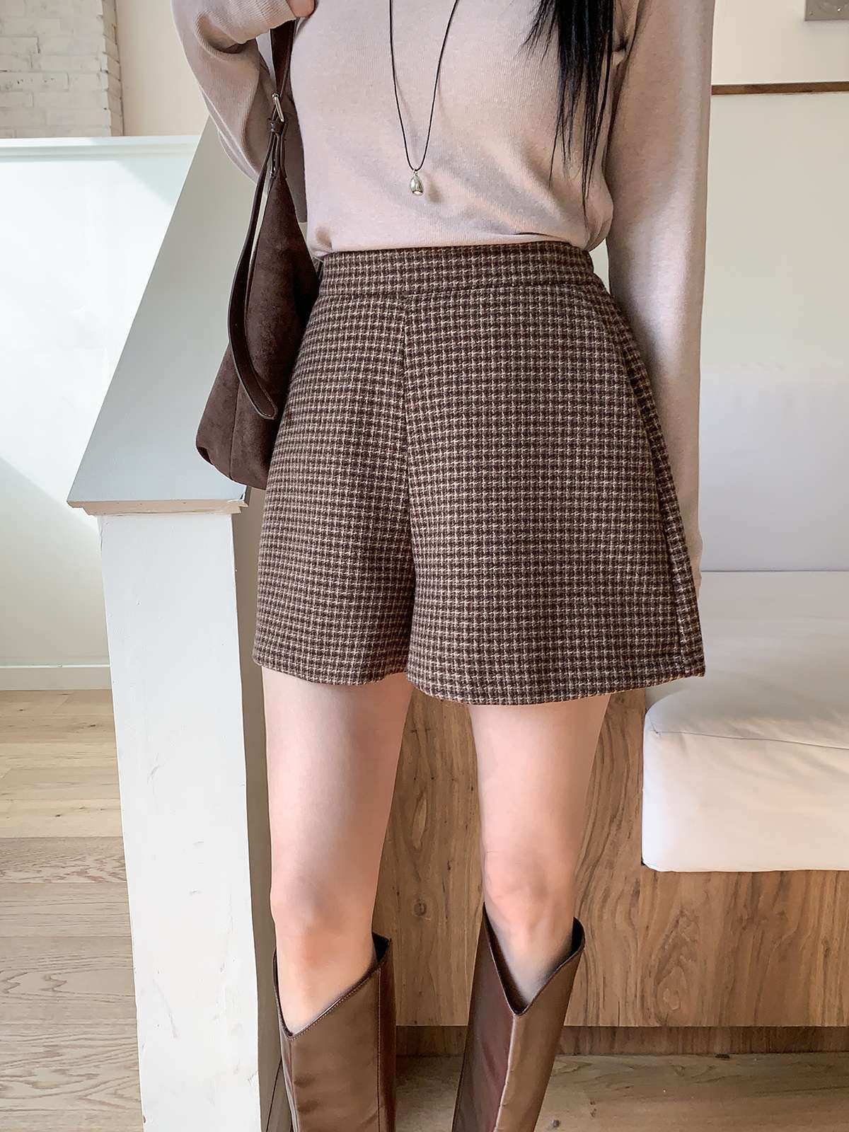 클래식한 무드의 모직 체크 뒷밴딩 숏팬츠