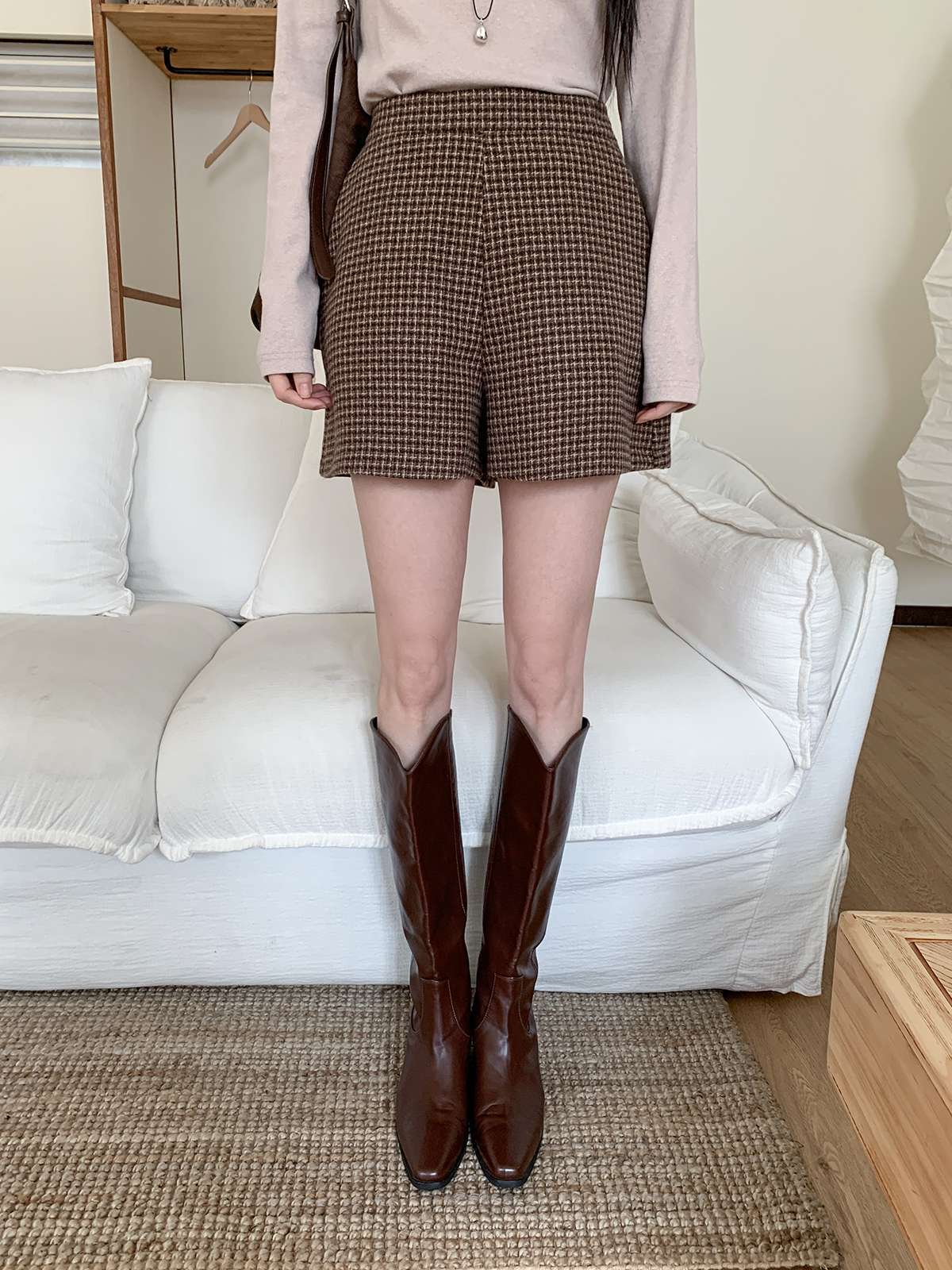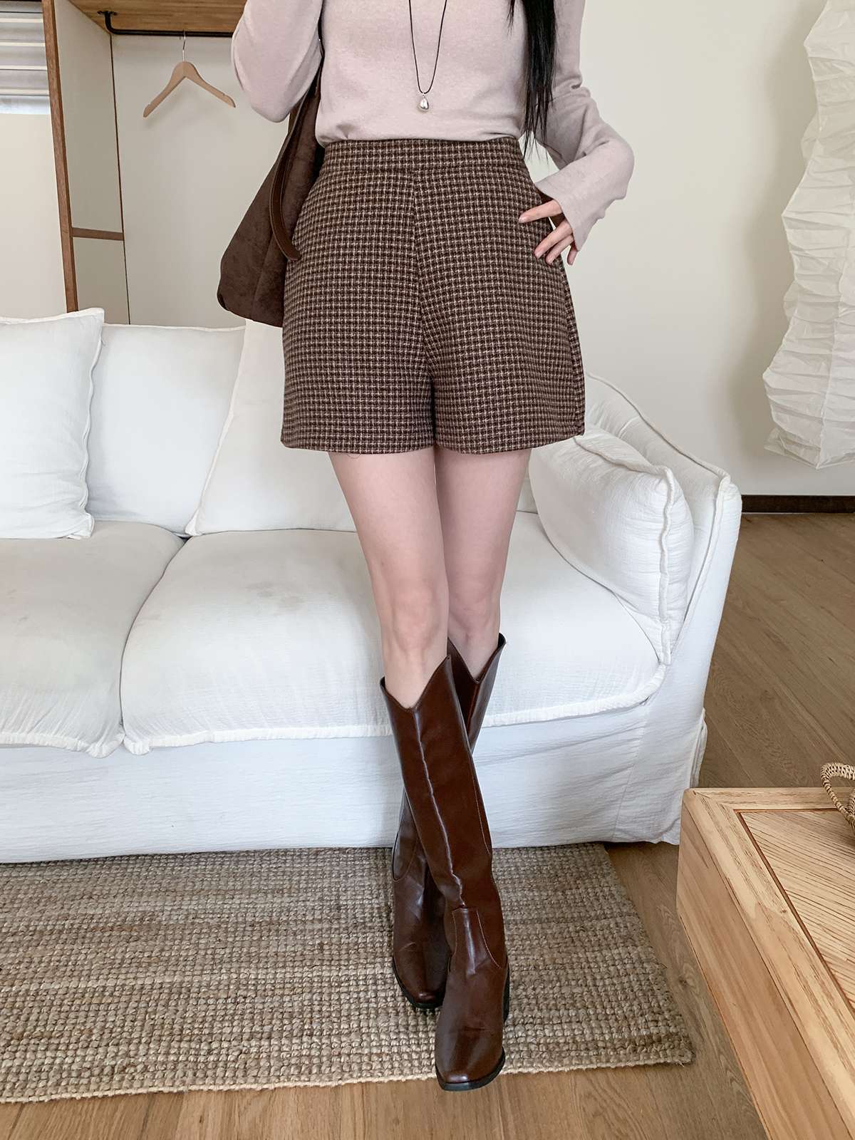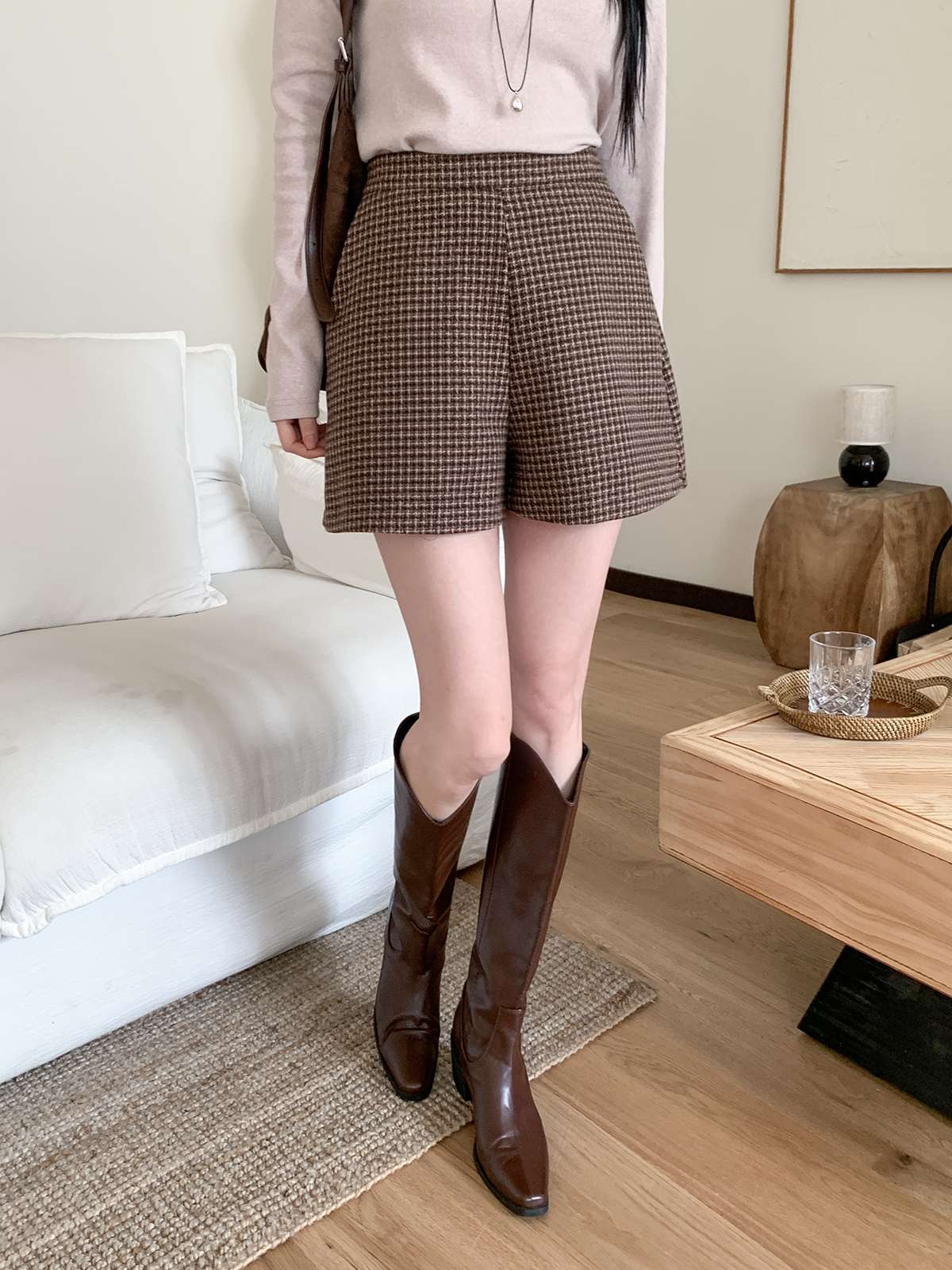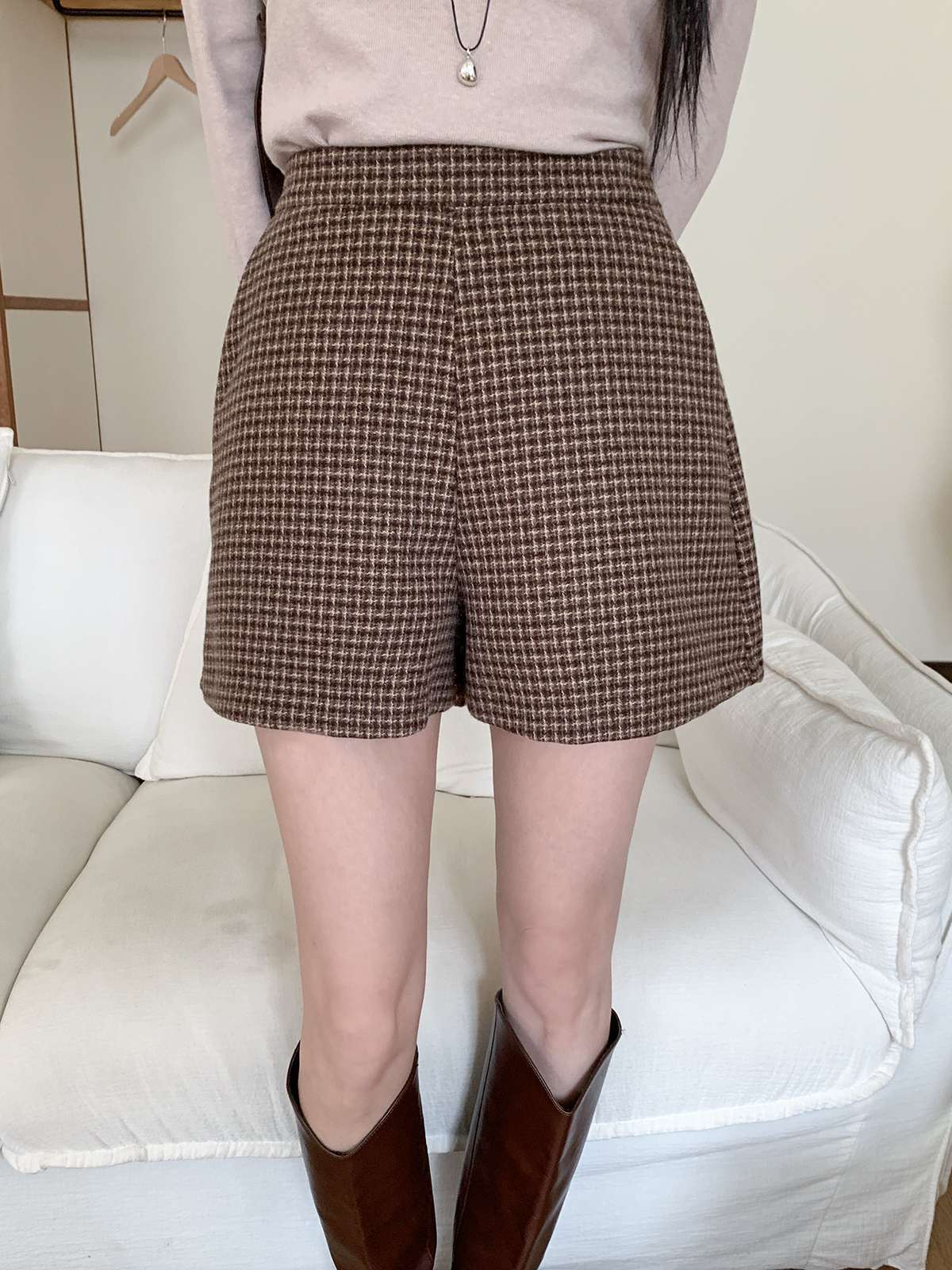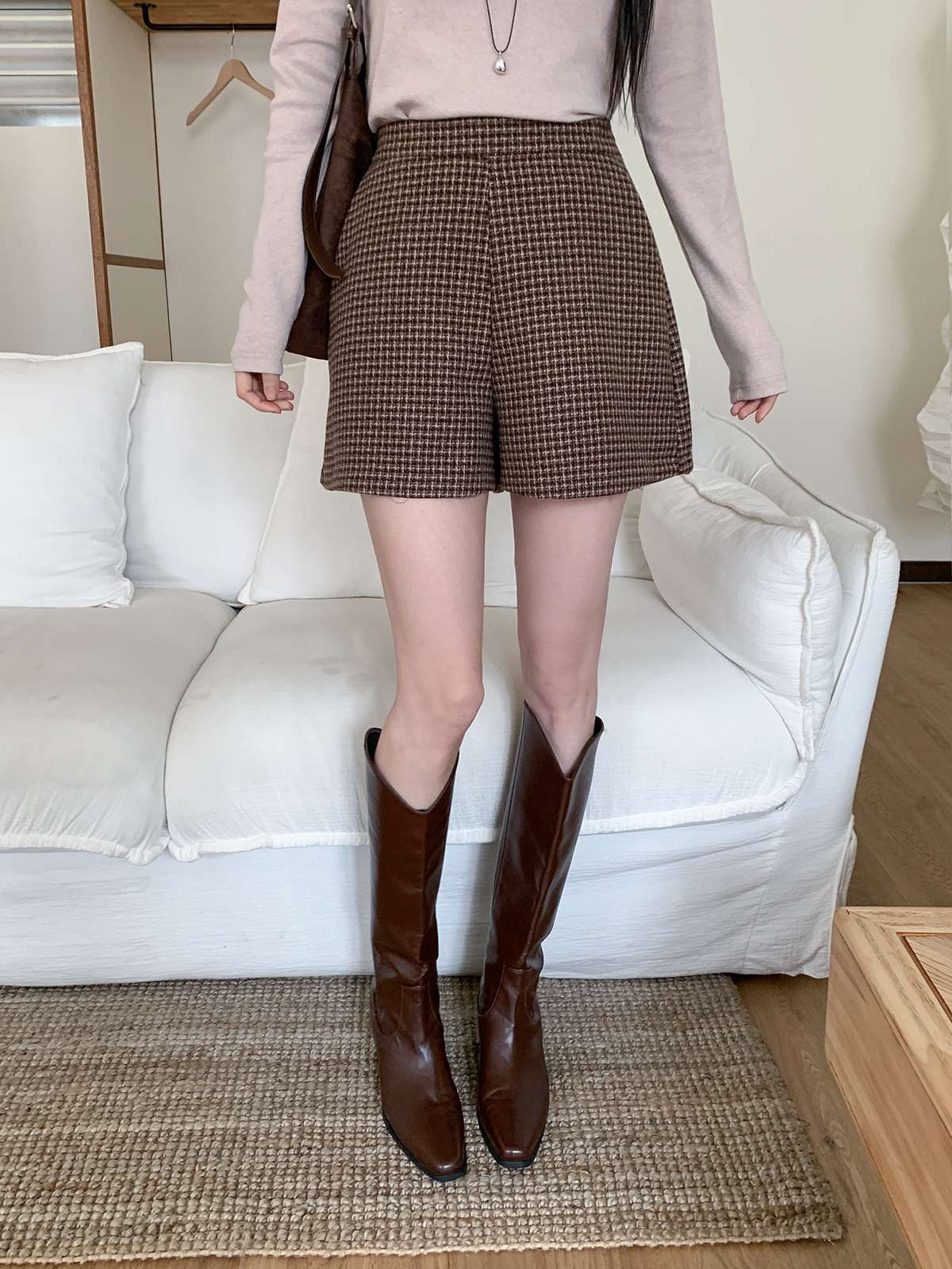 클래식한 무드의 모직 체크 뒷밴딩 숏팬츠