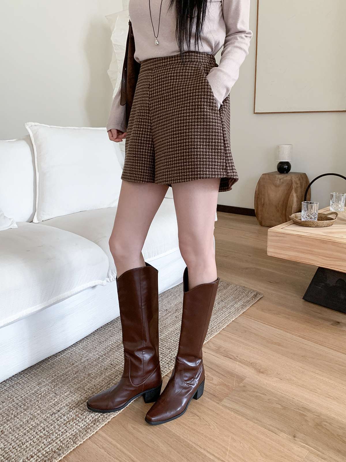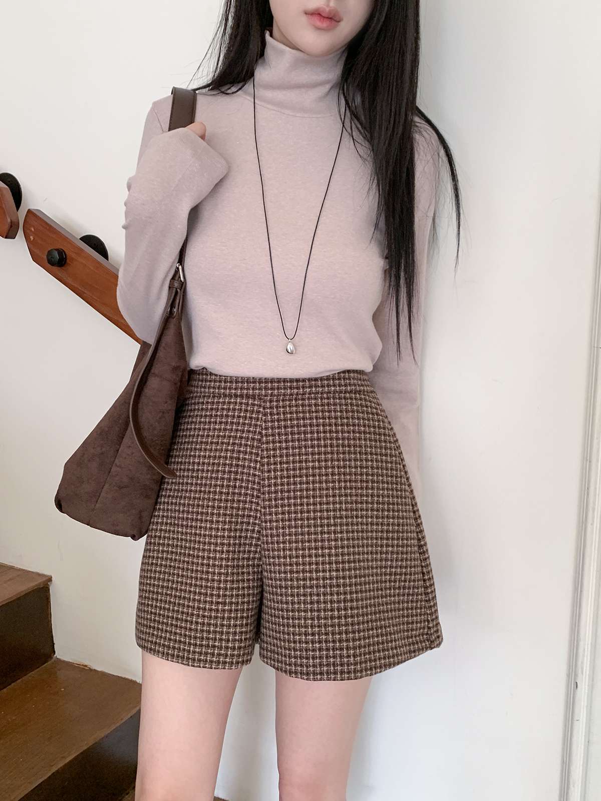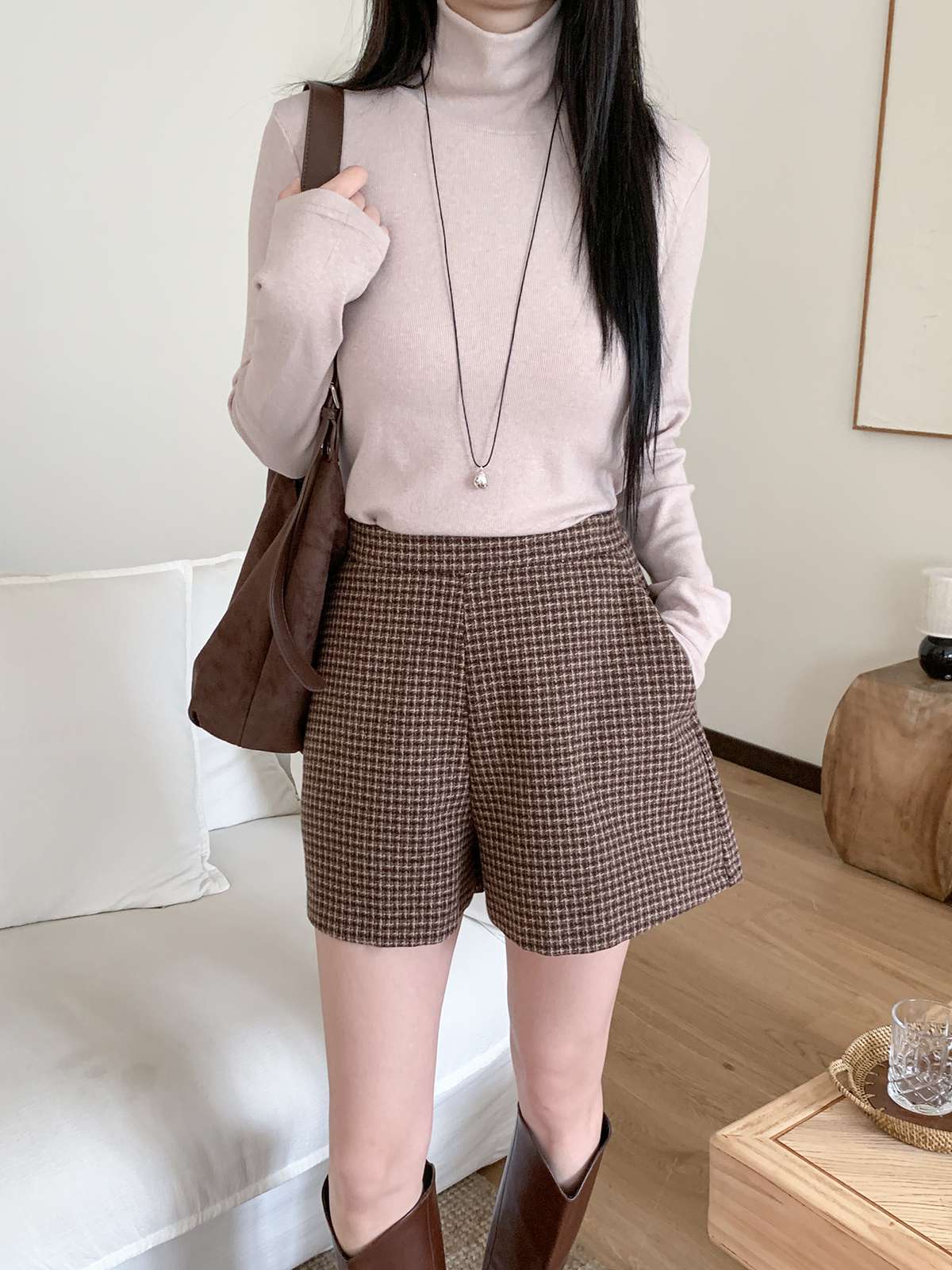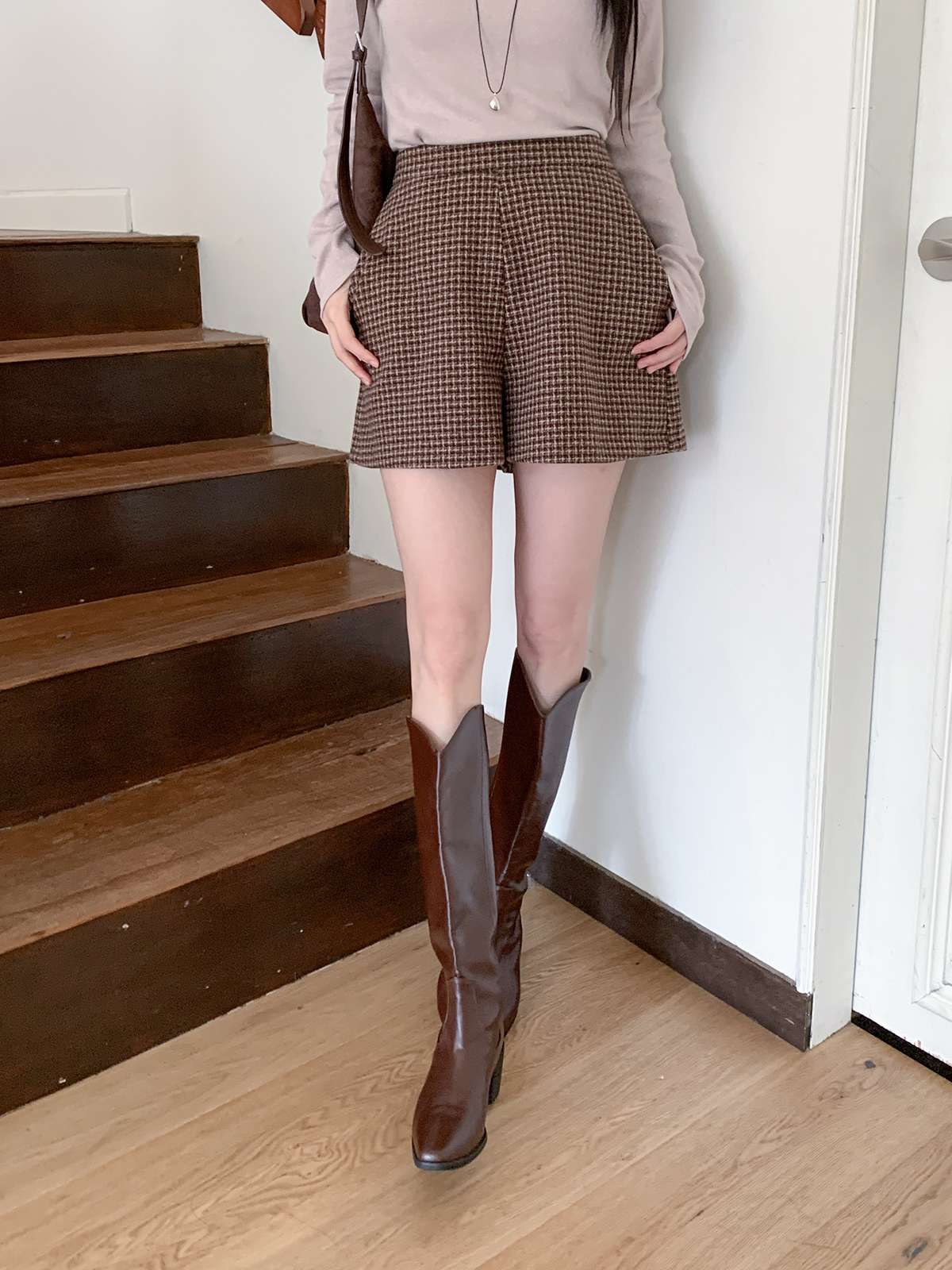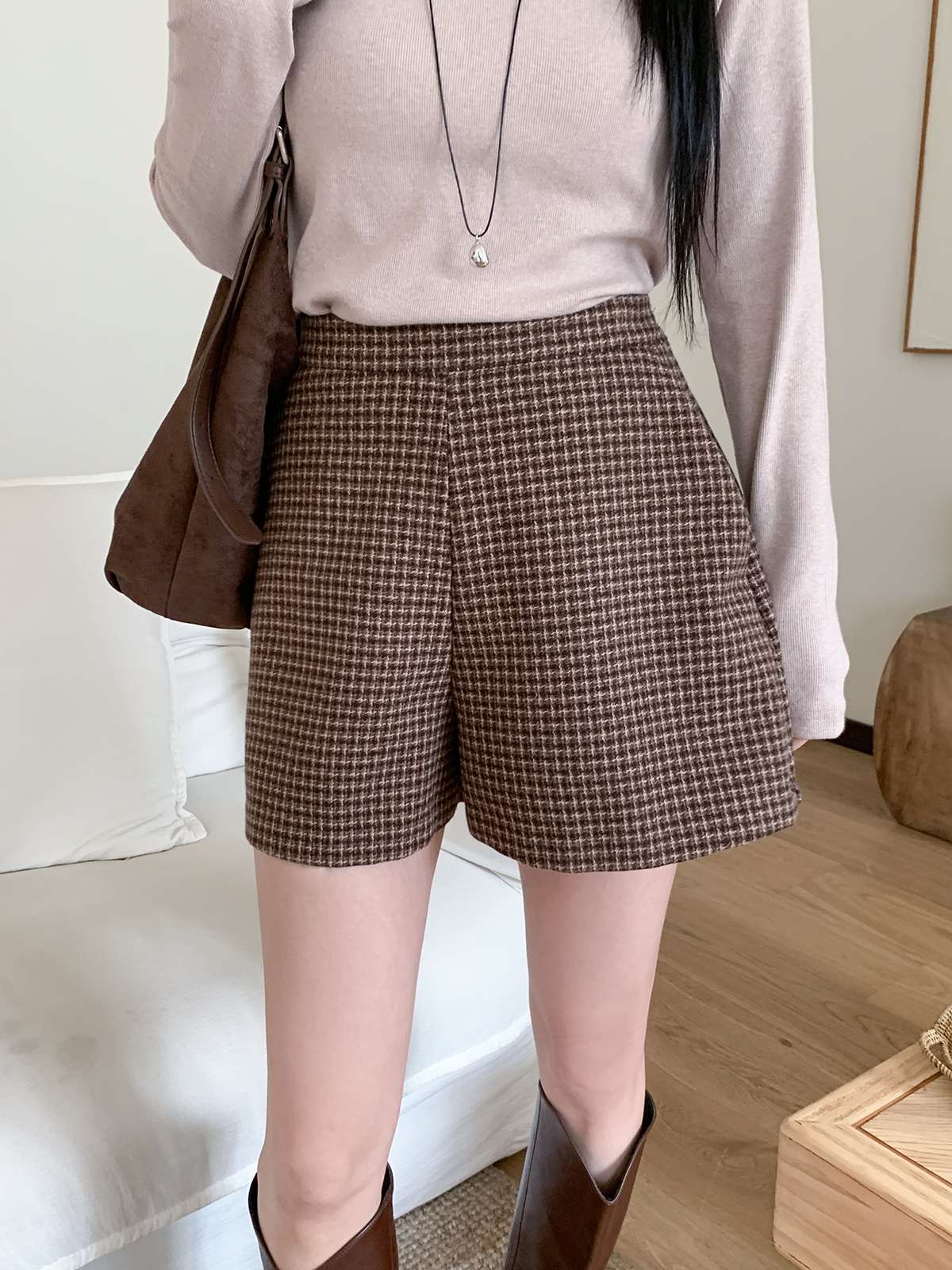 클래식한 무드의 모직 체크 뒷밴딩 숏팬츠
