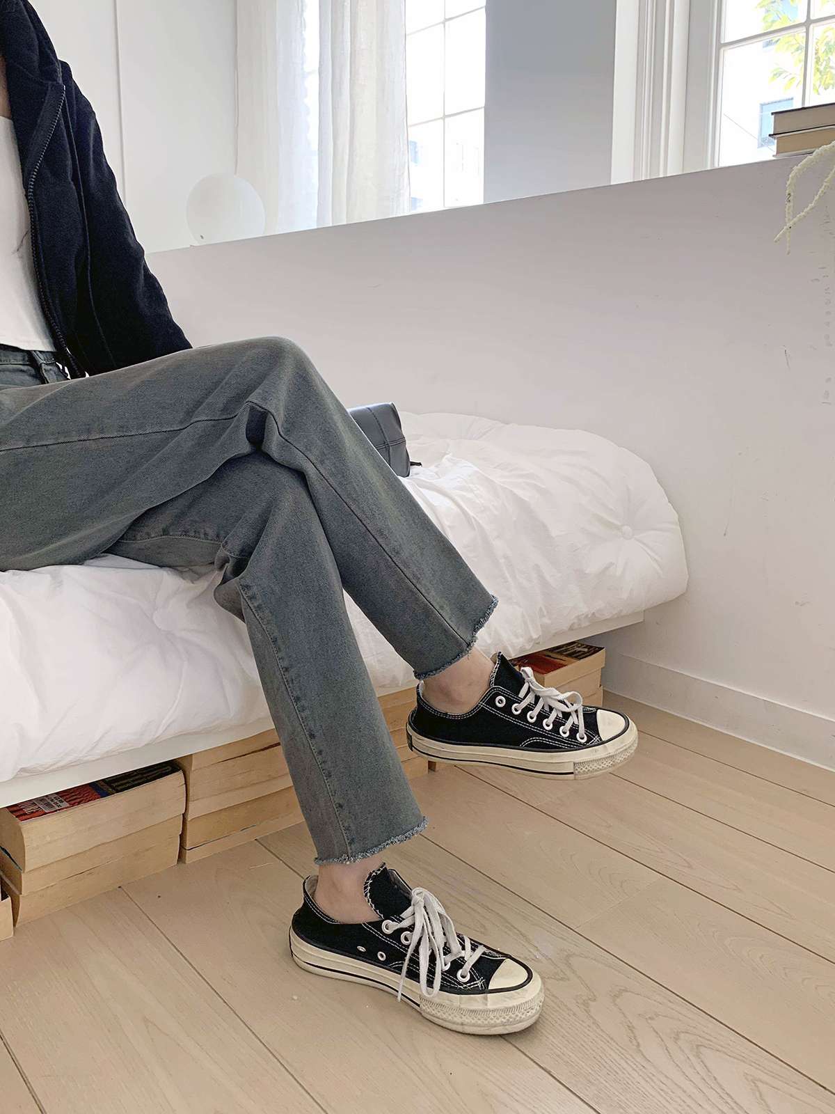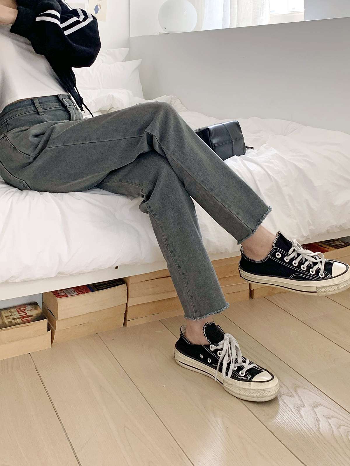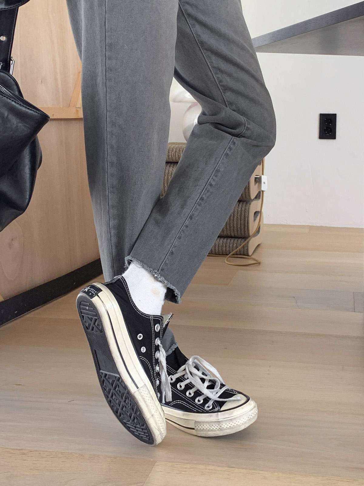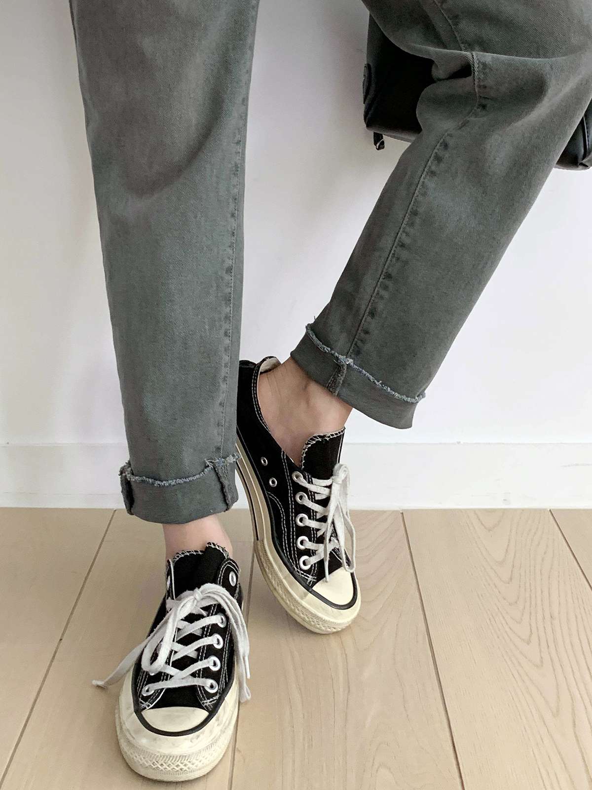 밑단은 자연스러운 컷팅 마감으로 캐주얼한 무드를