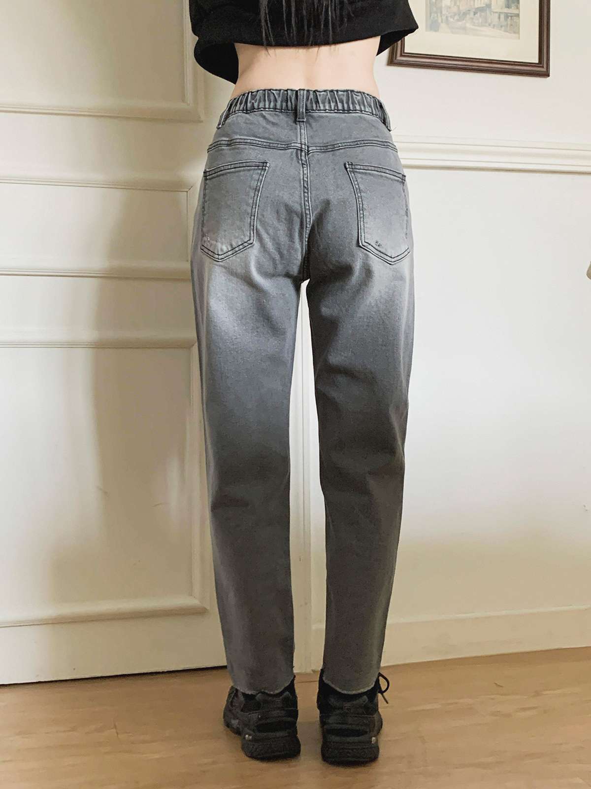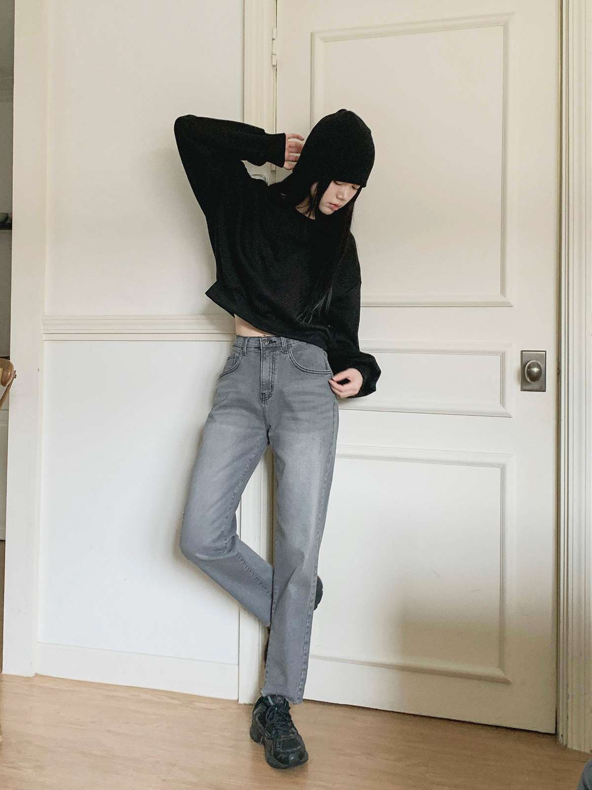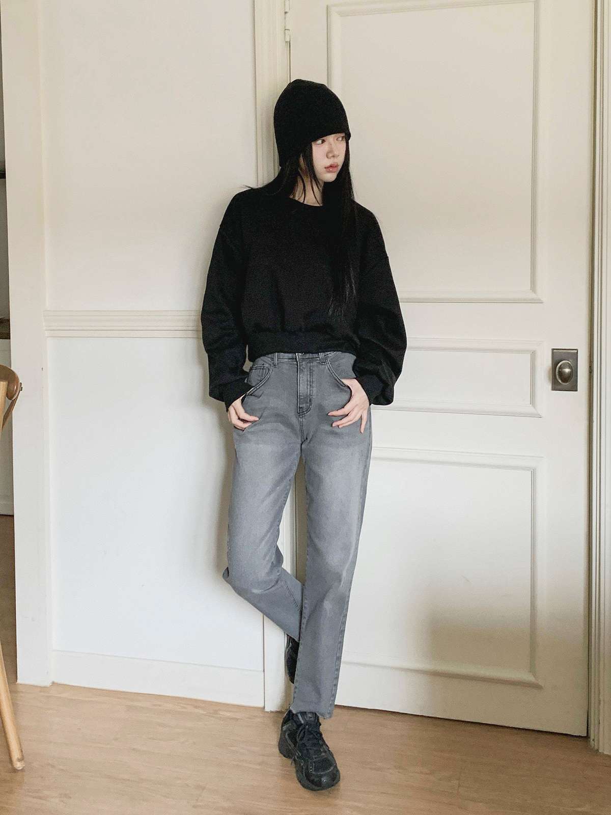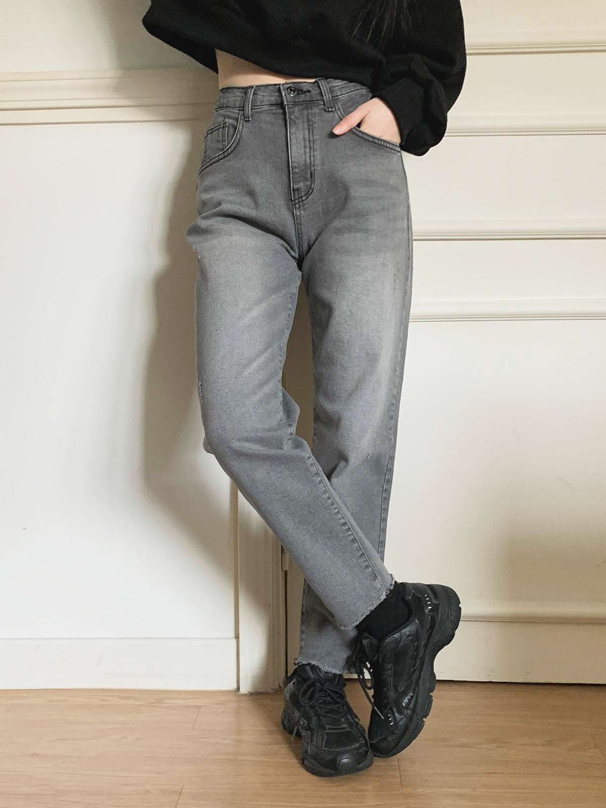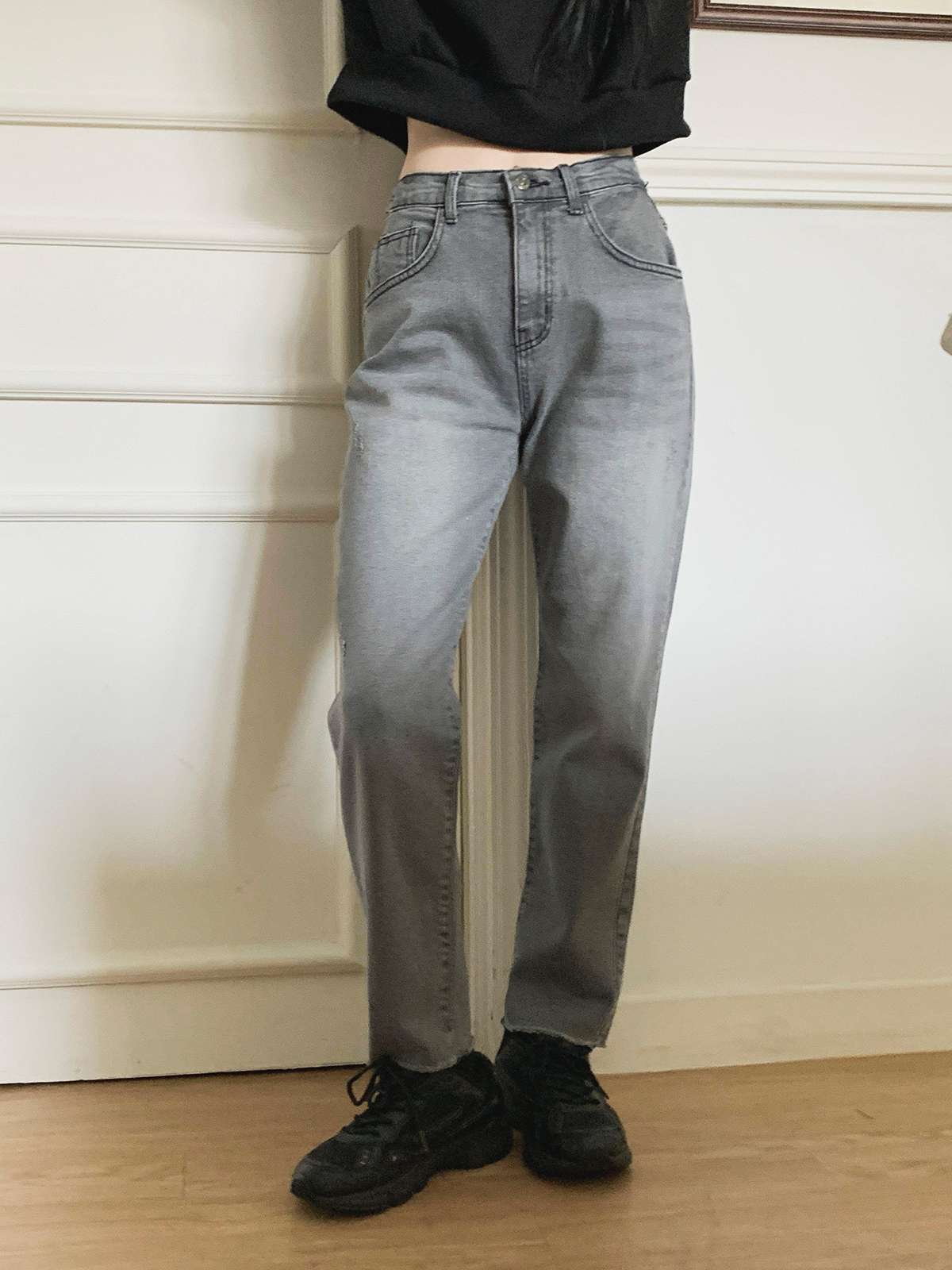 은은한 빈티지 워싱이 더해진 일자핏 그레이 데님 팬츠