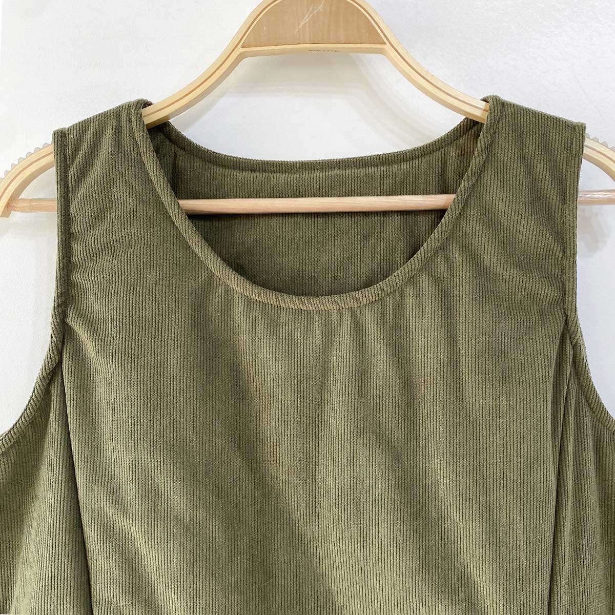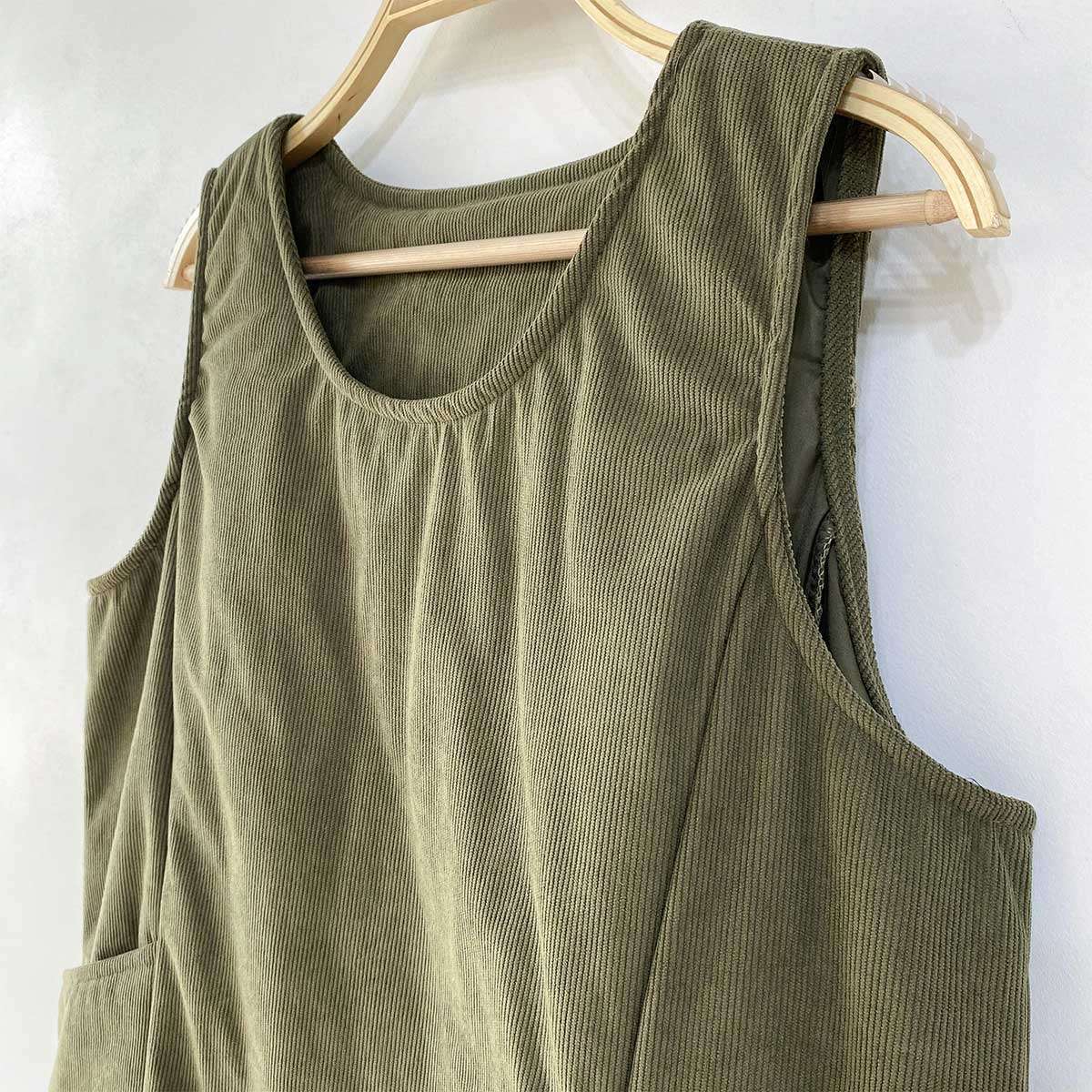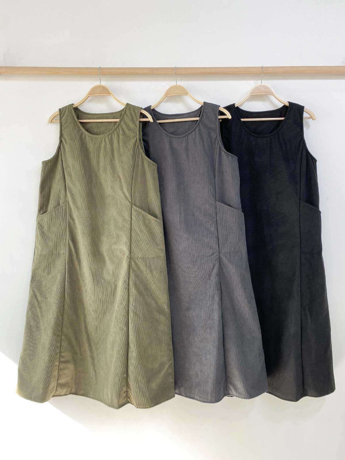 [ OPS10417K5A-다유리 골덴 A라인 누빔 민소매 롱 원피스 ]