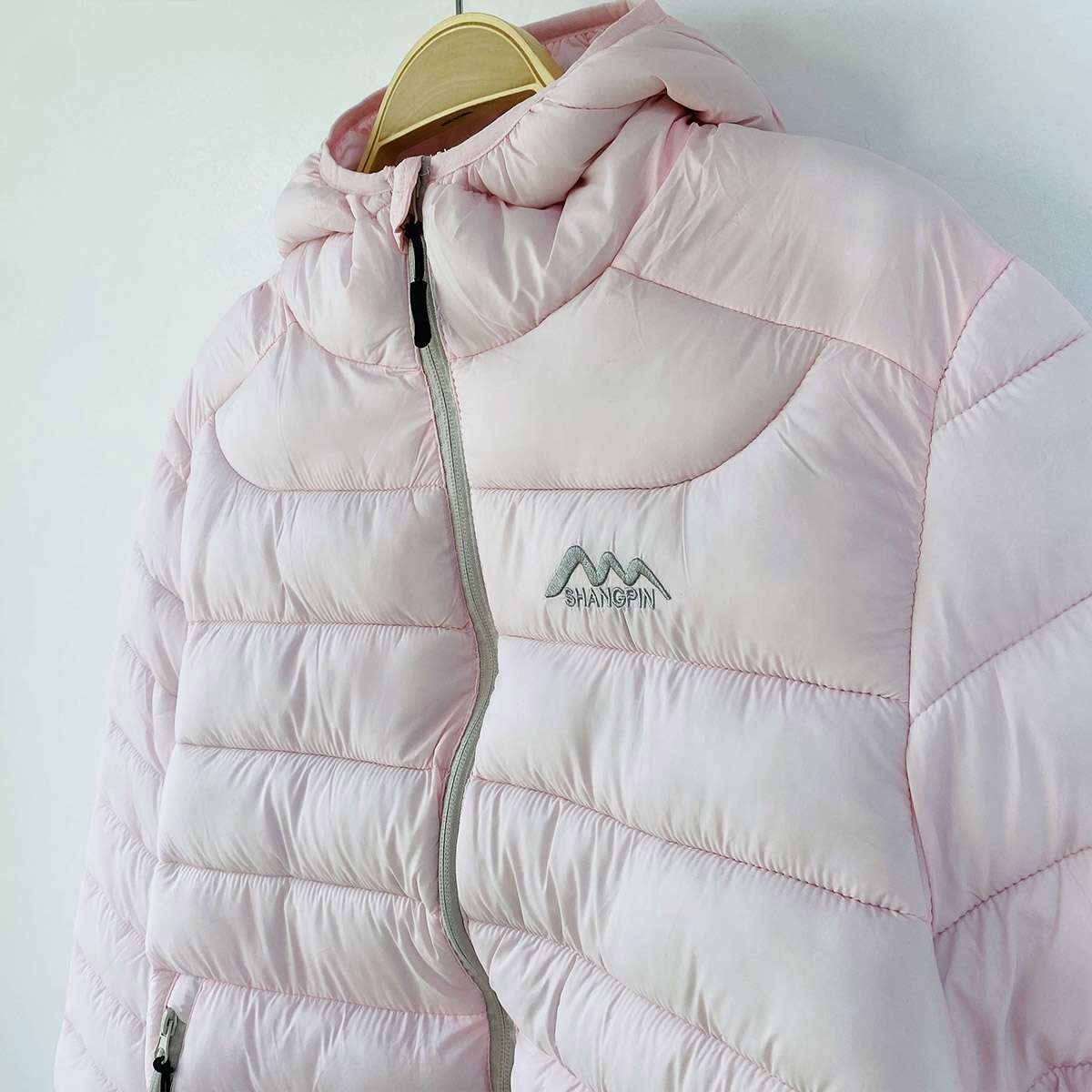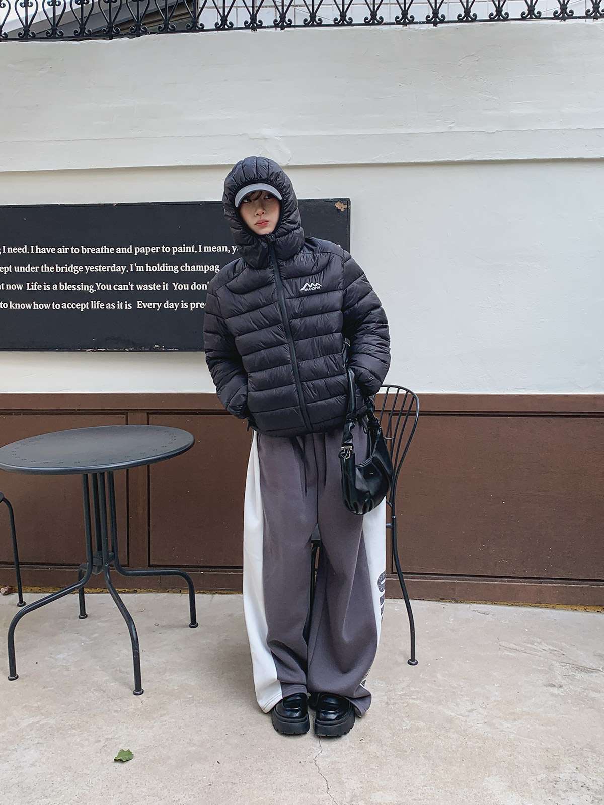보온성이 뛰어난 웰론 충전재를 사용하여 가볍고 따뜻한 후드 경량 숏 패딩 점퍼