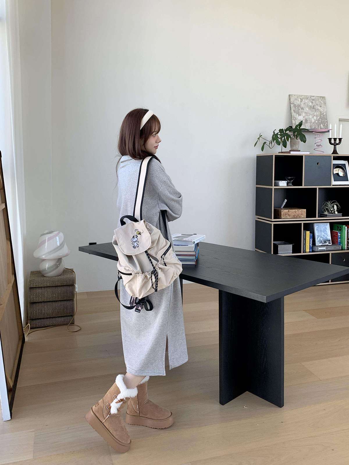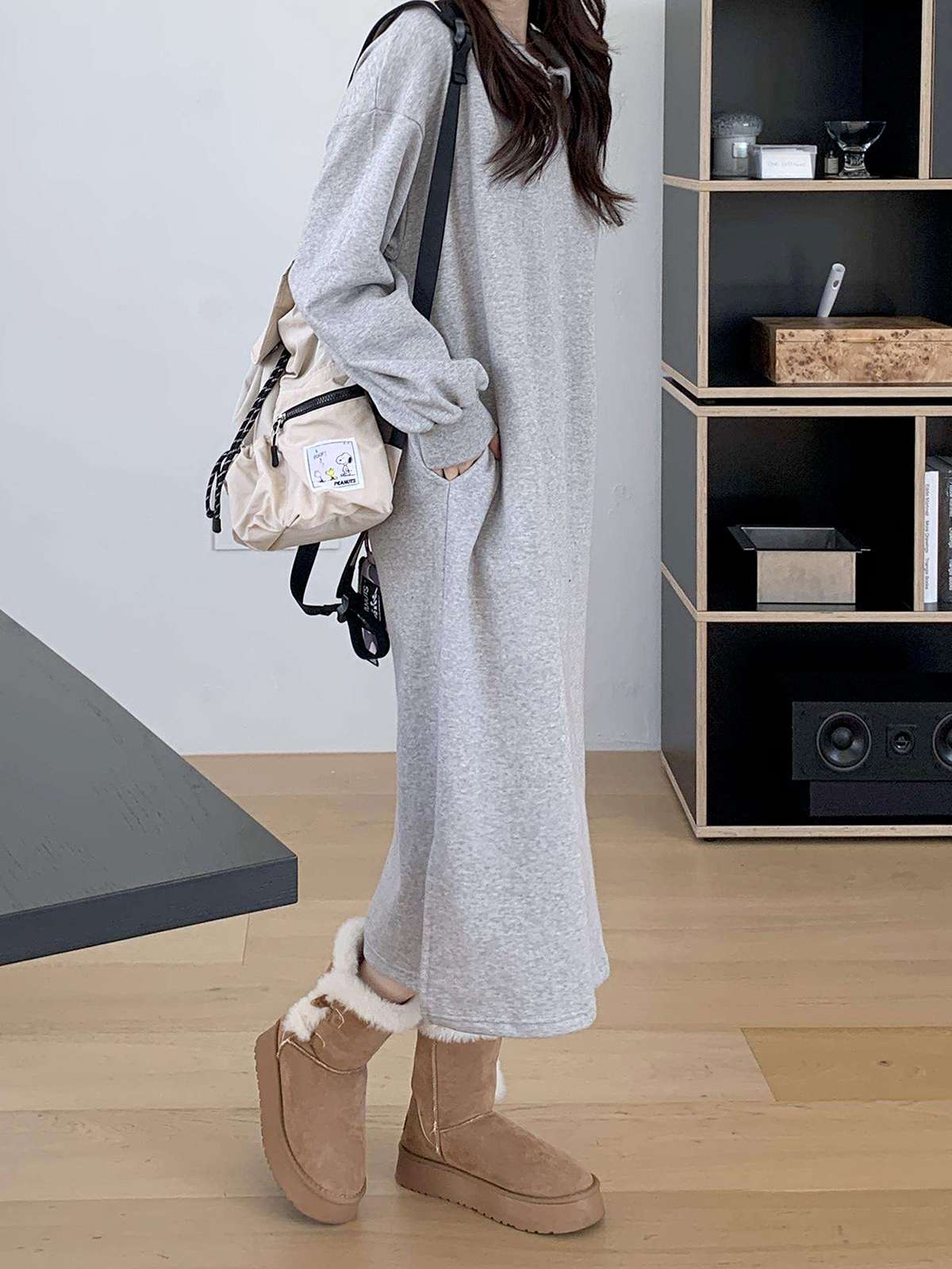 [ OPS10419K5A-리맨수 기모 오버핏 둥근 카라 맨투맨 롱 원피스 ]
