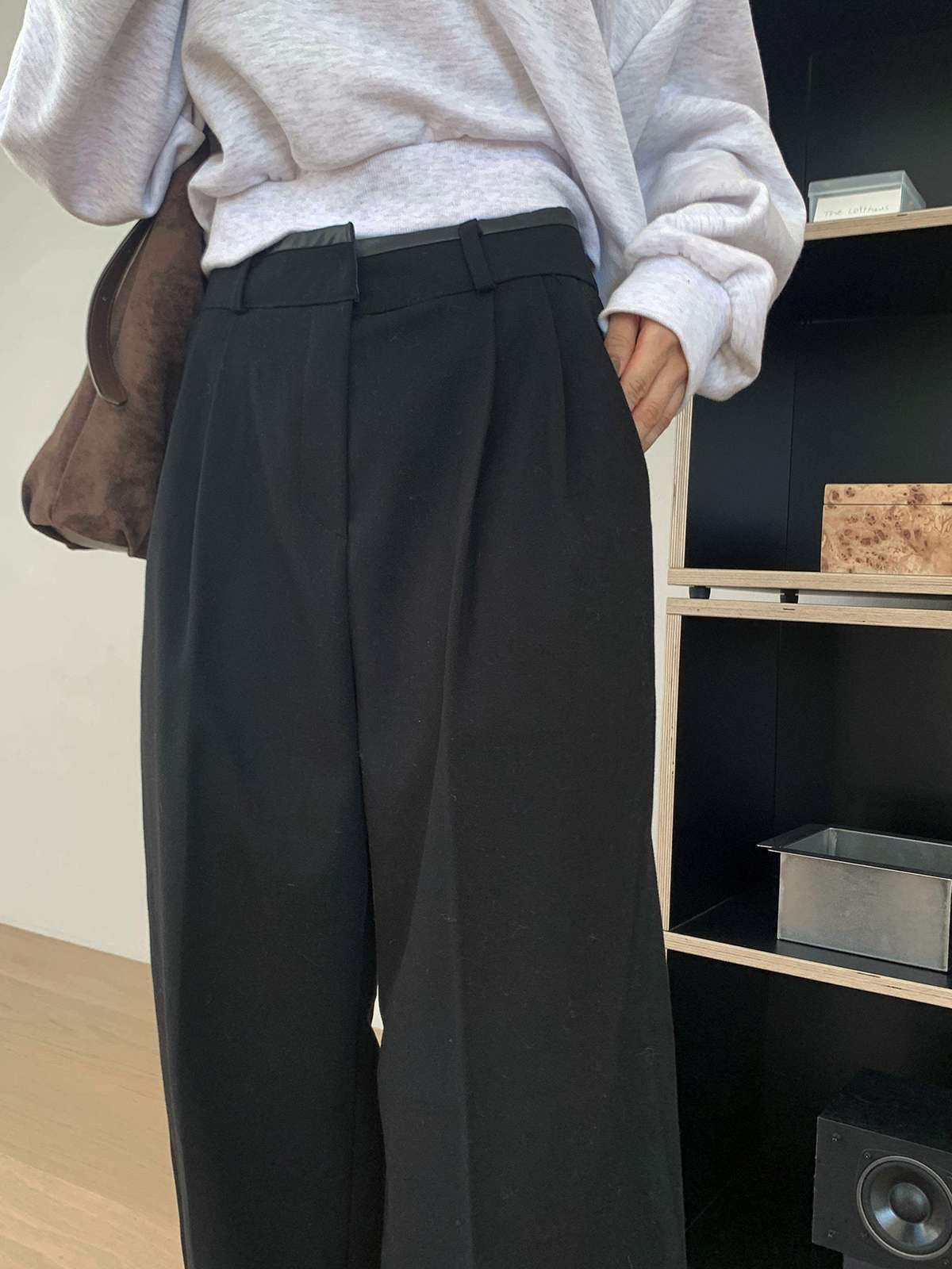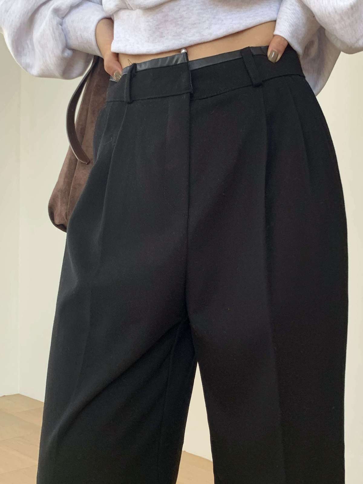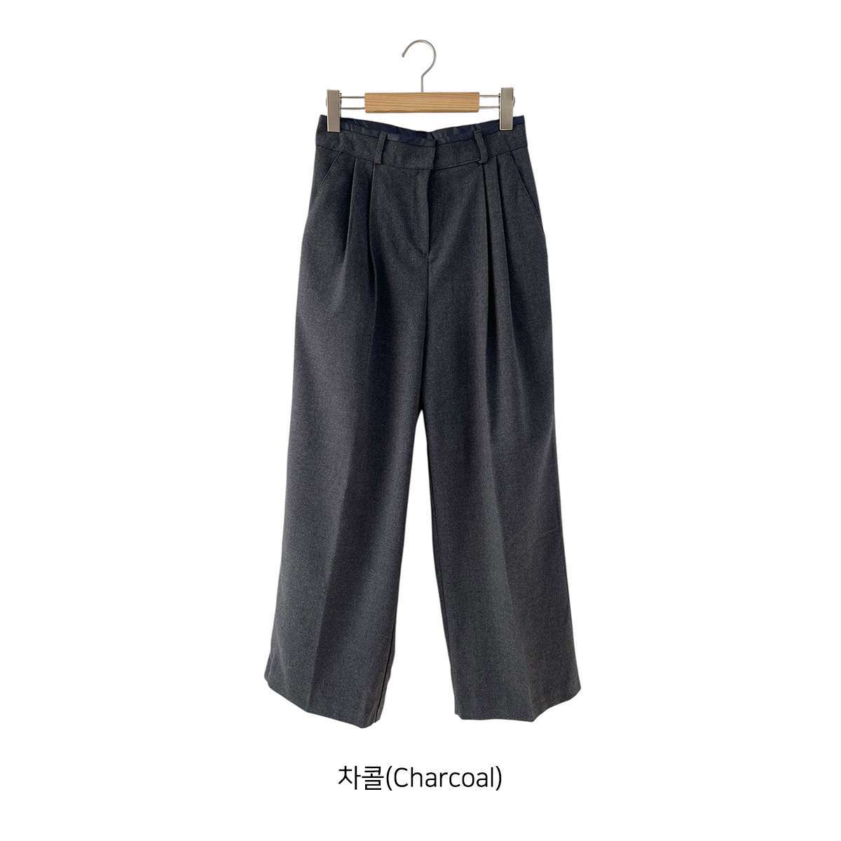 [ PT15600K5A-루벨디 모직 허리 랍빠 투핀턱 와이드 슬랙스 ]