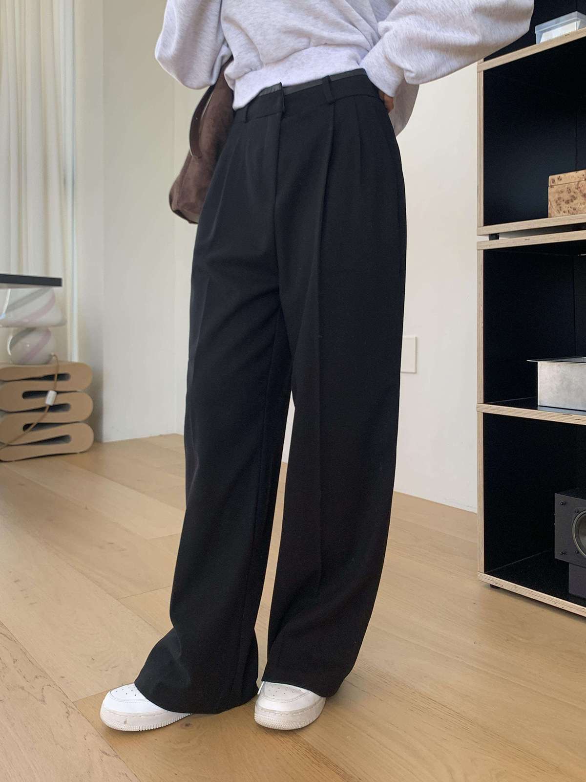 클래식하고 포멀한 투핀턱 와이드 모직 슬랙스