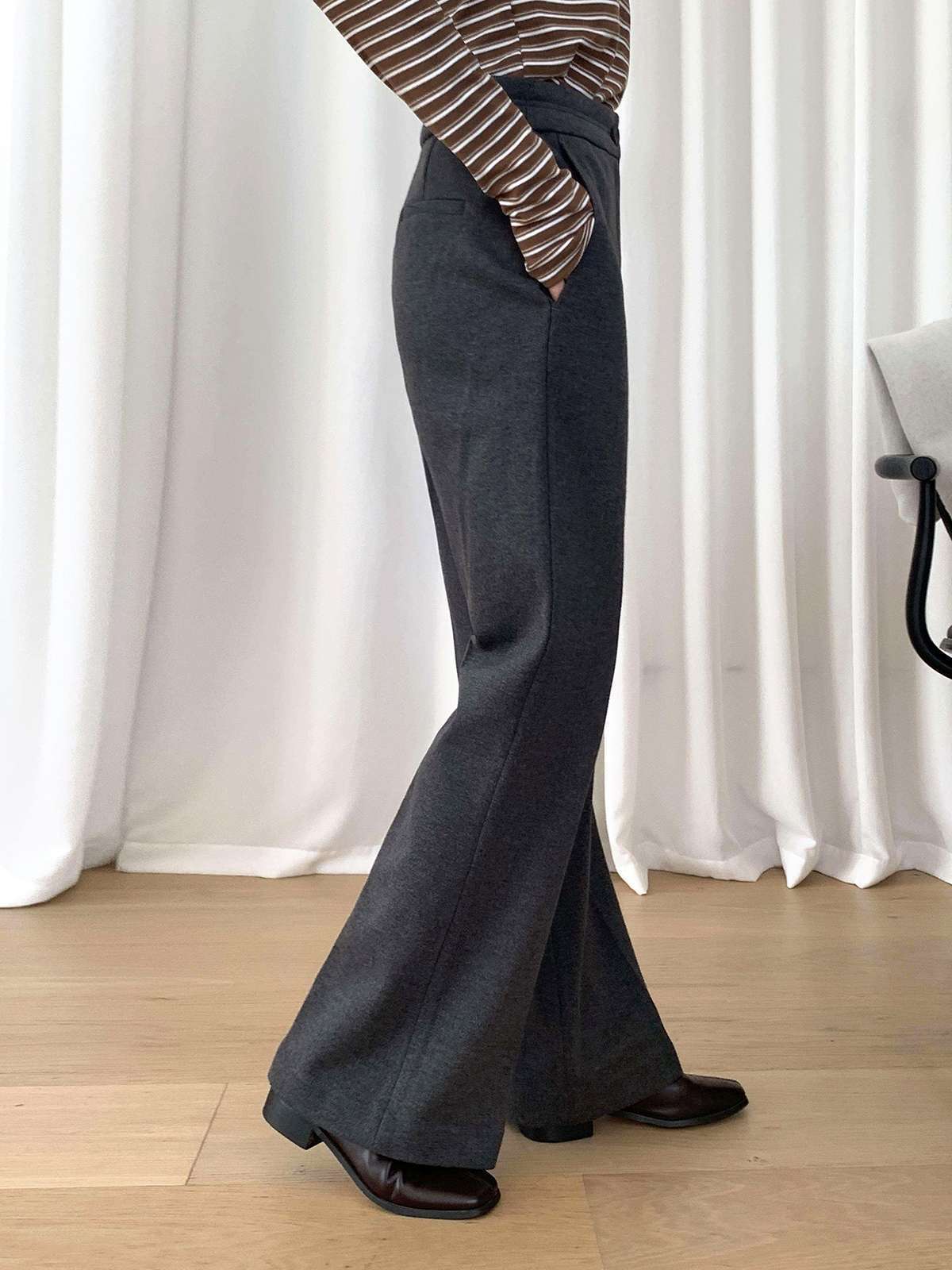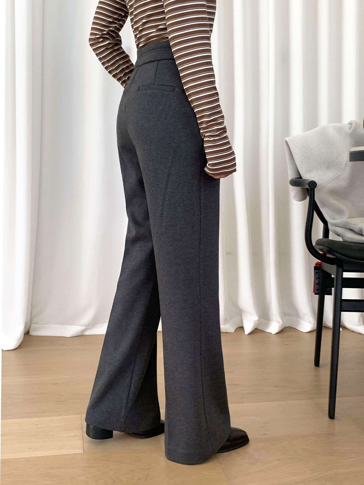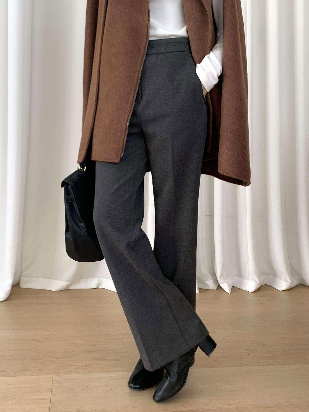 따뜻함과 슬림함을 동시에 느끼는 기모 모직 부츠컷 슬랙스