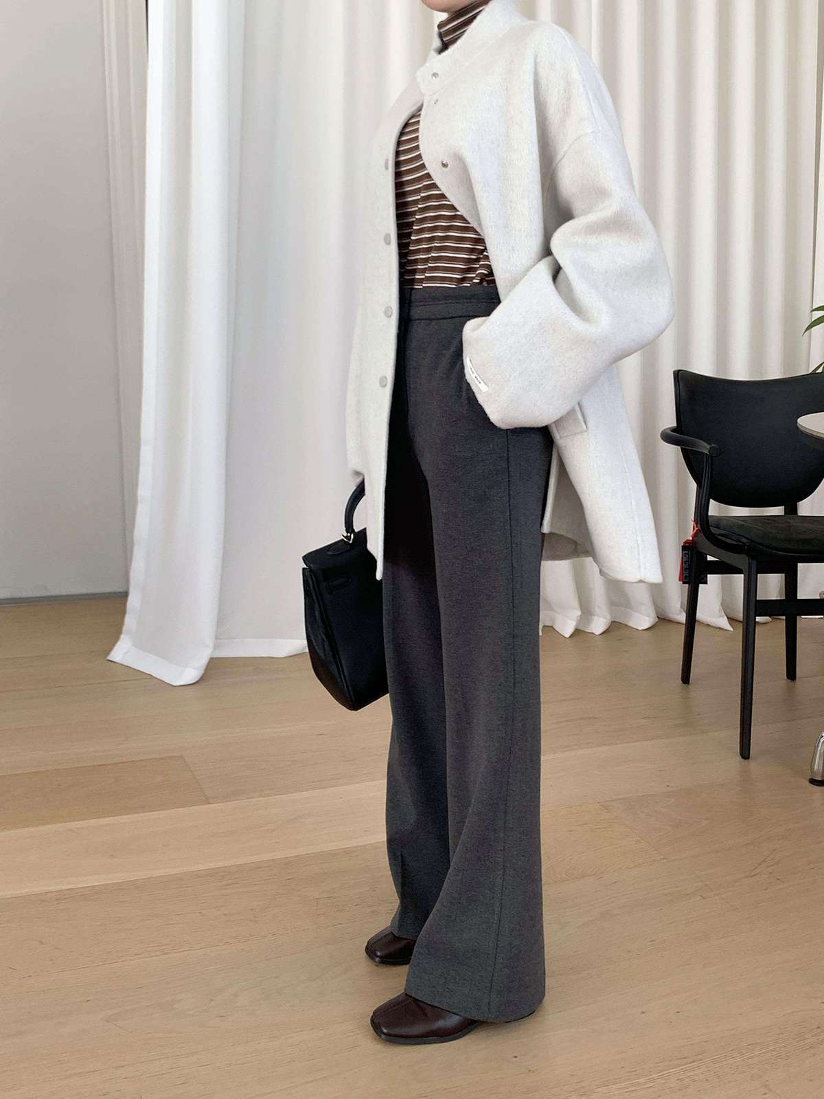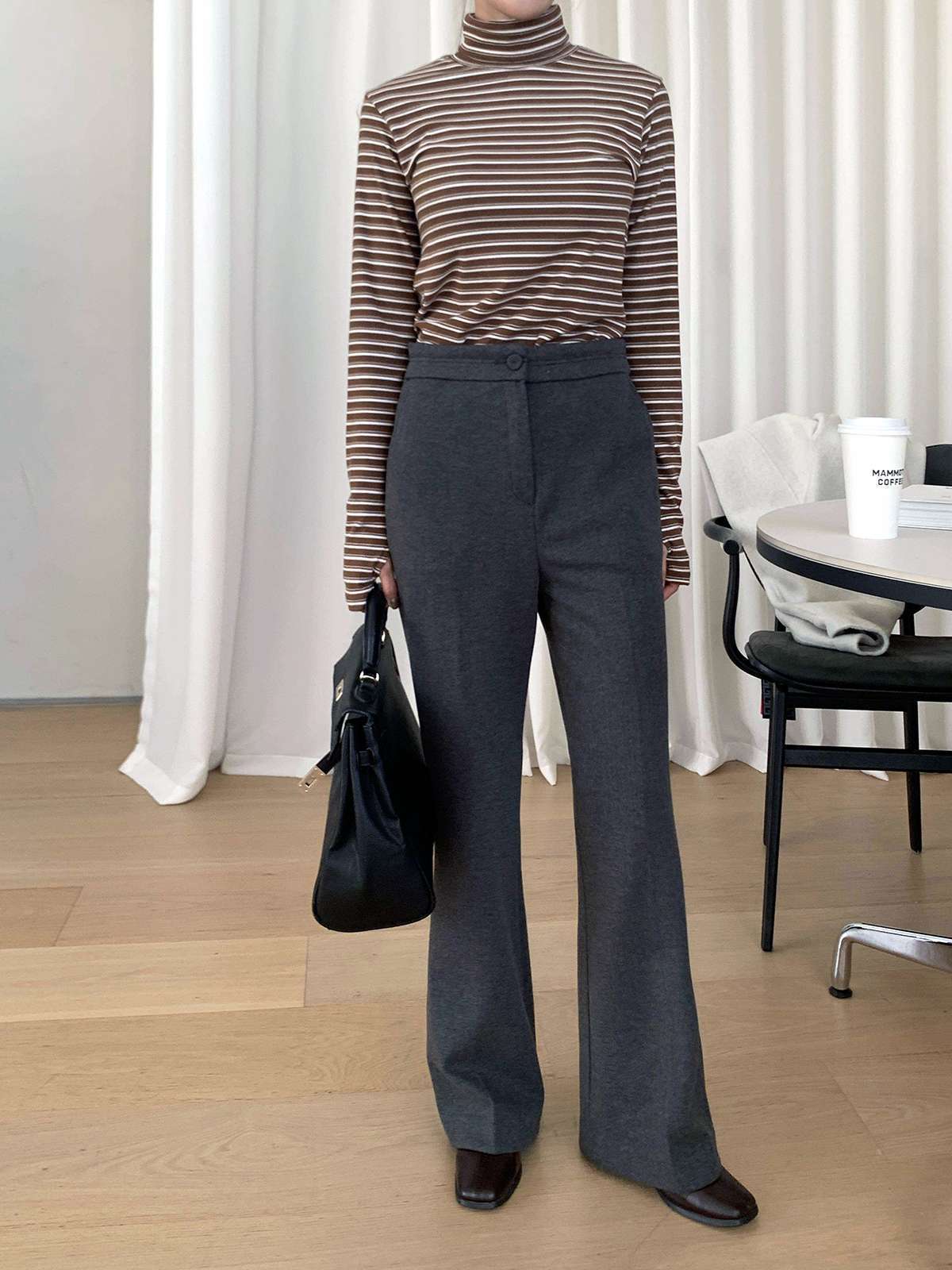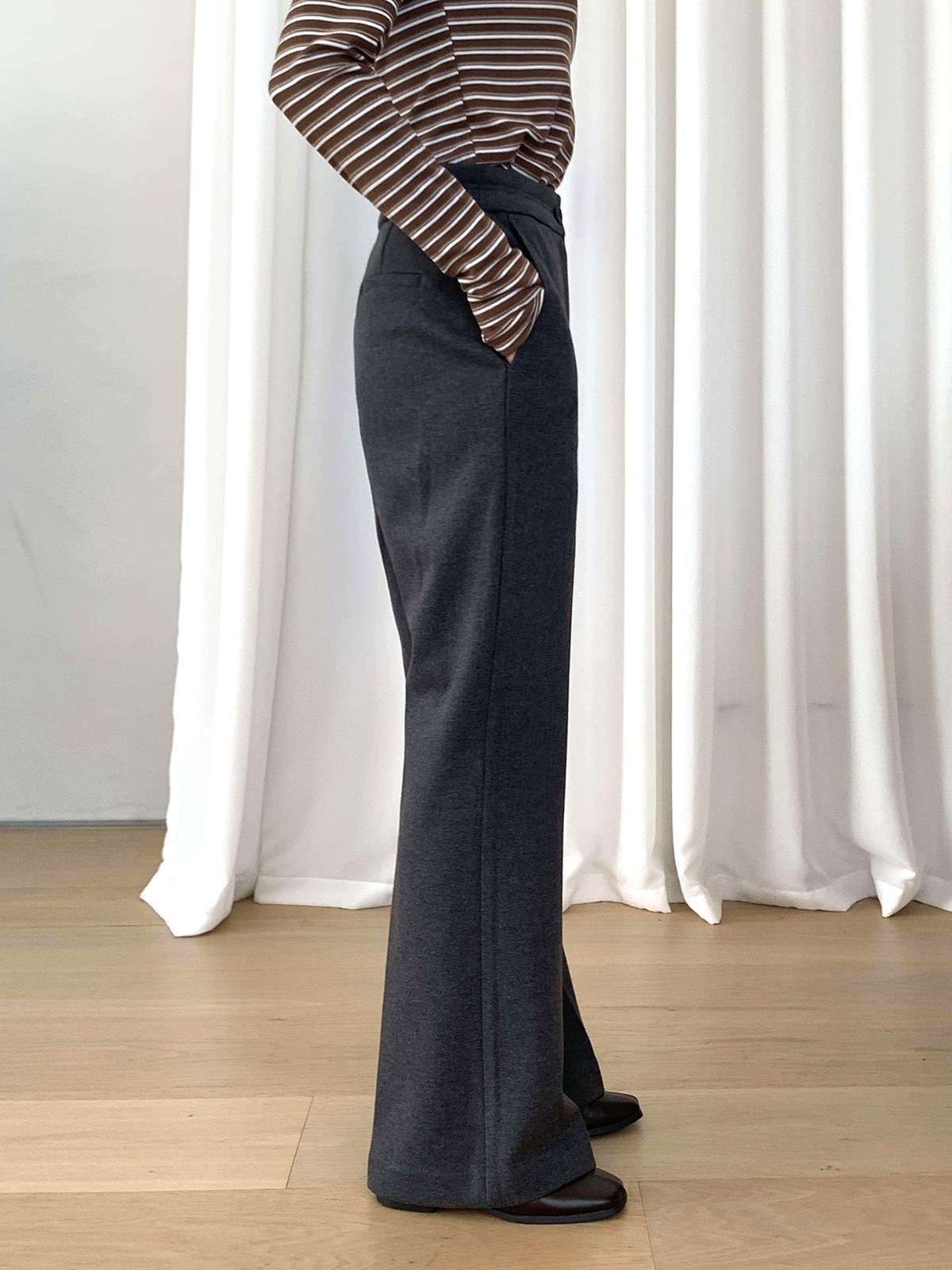 따뜻함과 슬림함을 동시에 느끼는 기모 모직 부츠컷 슬랙스