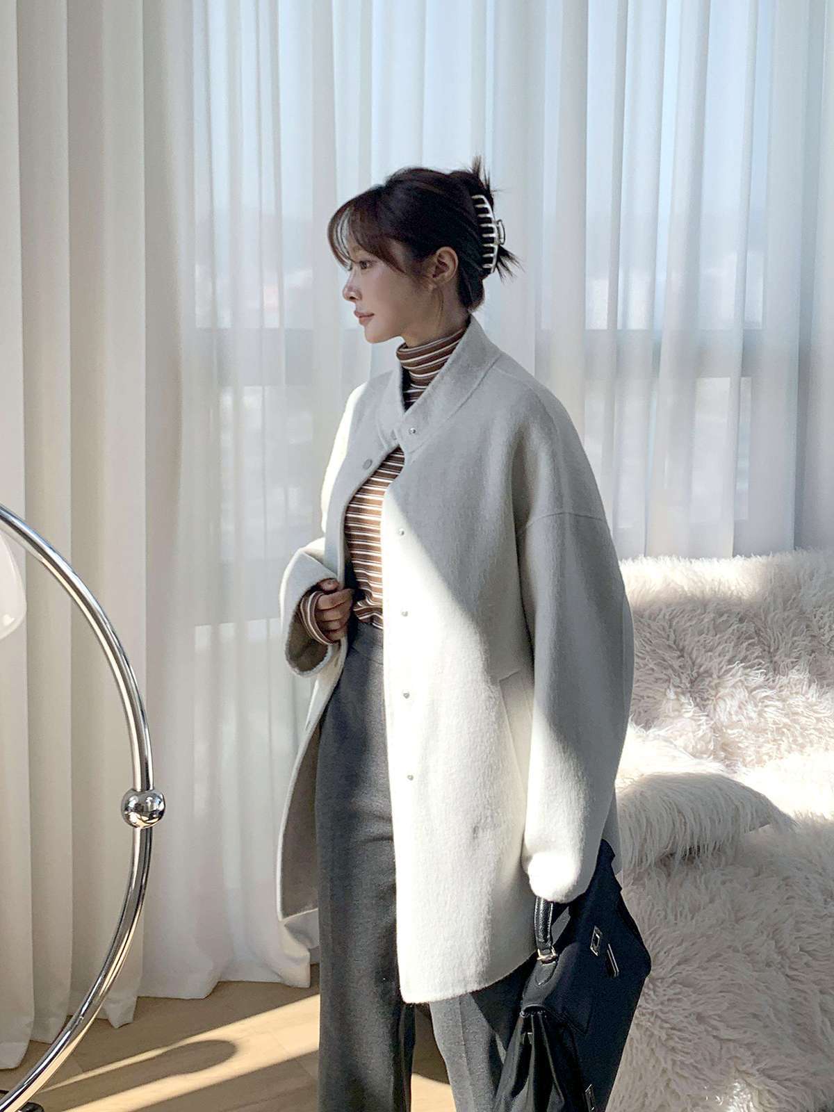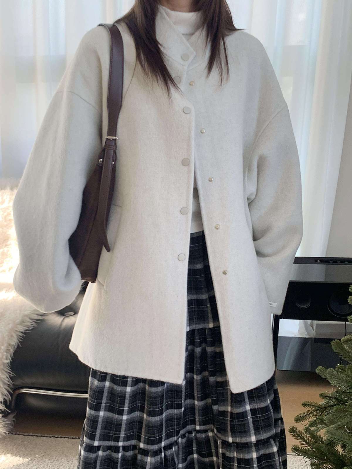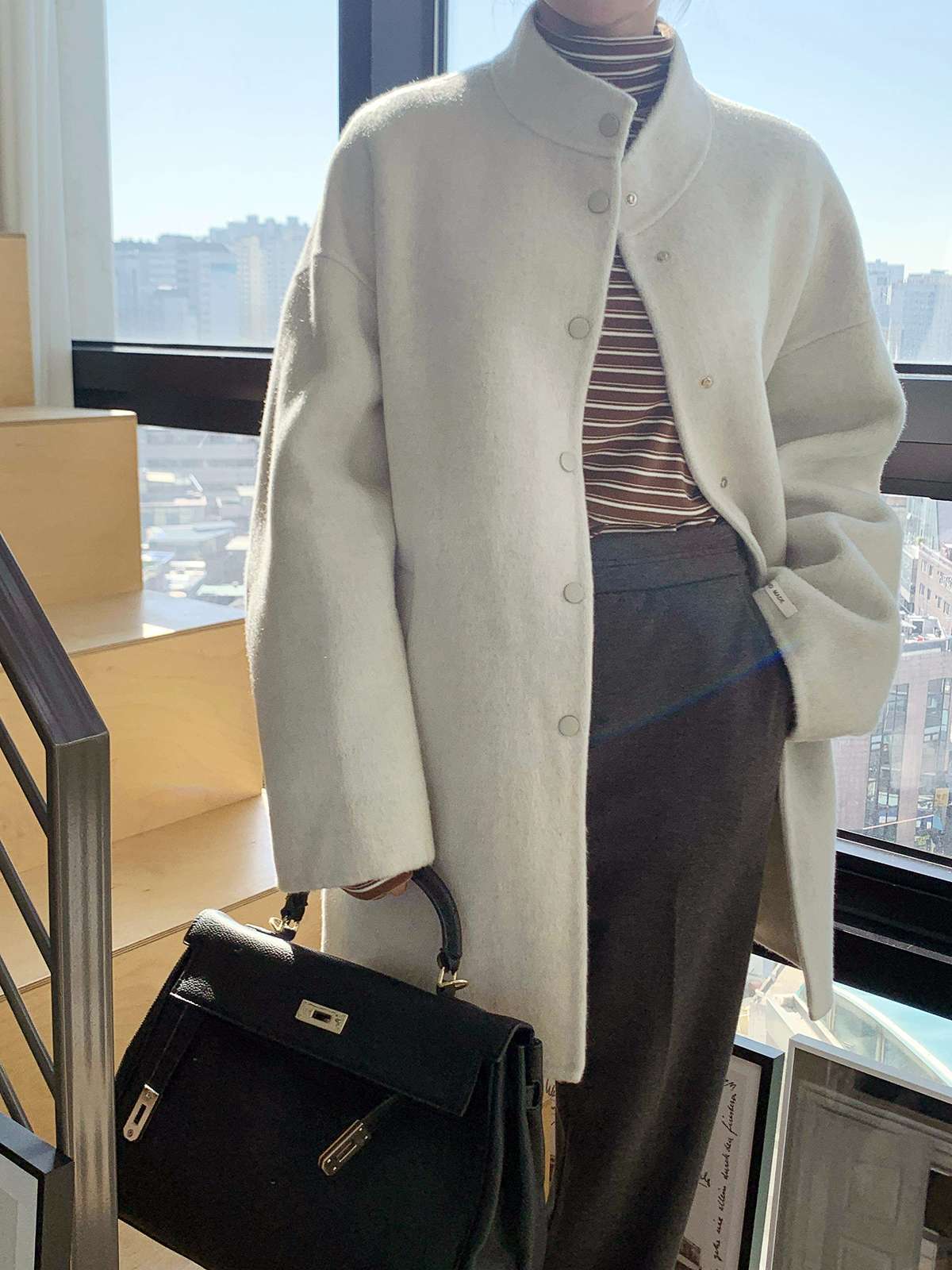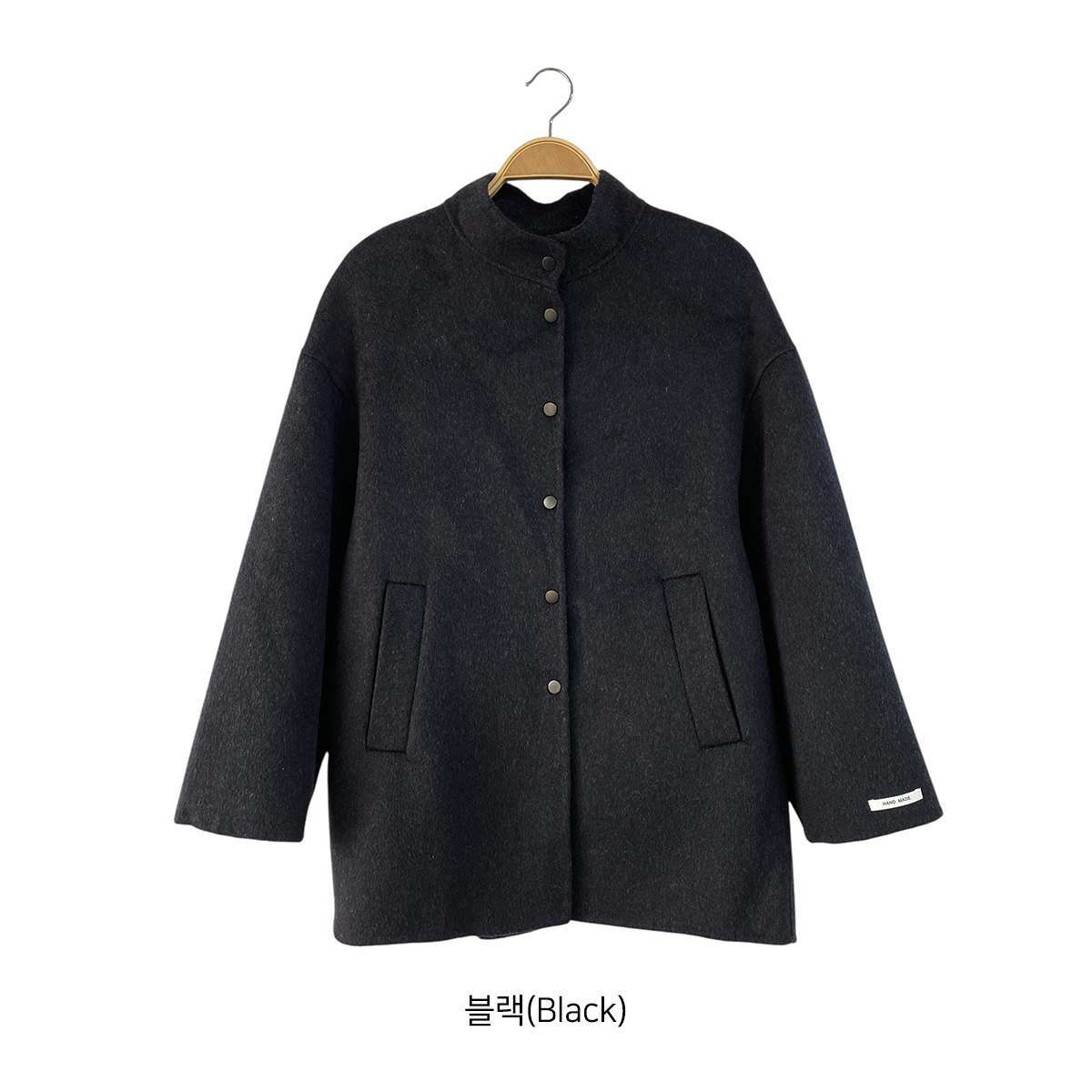 JK6092K5A-노엘라 핸드메이드 하이넥 오버핏 스냅버튼 울 코트