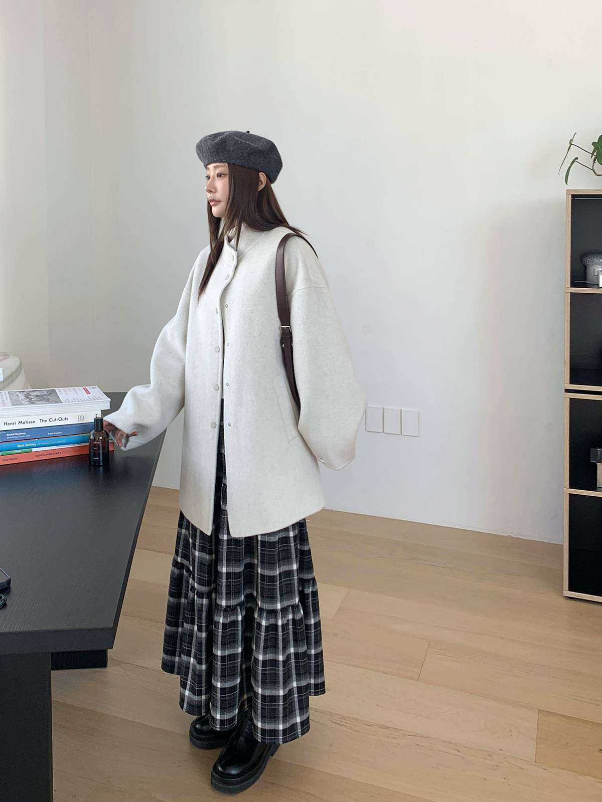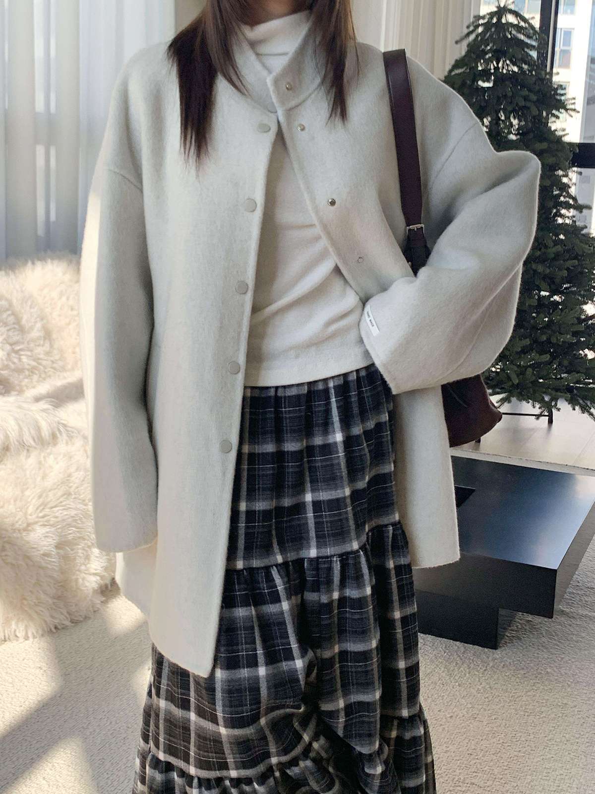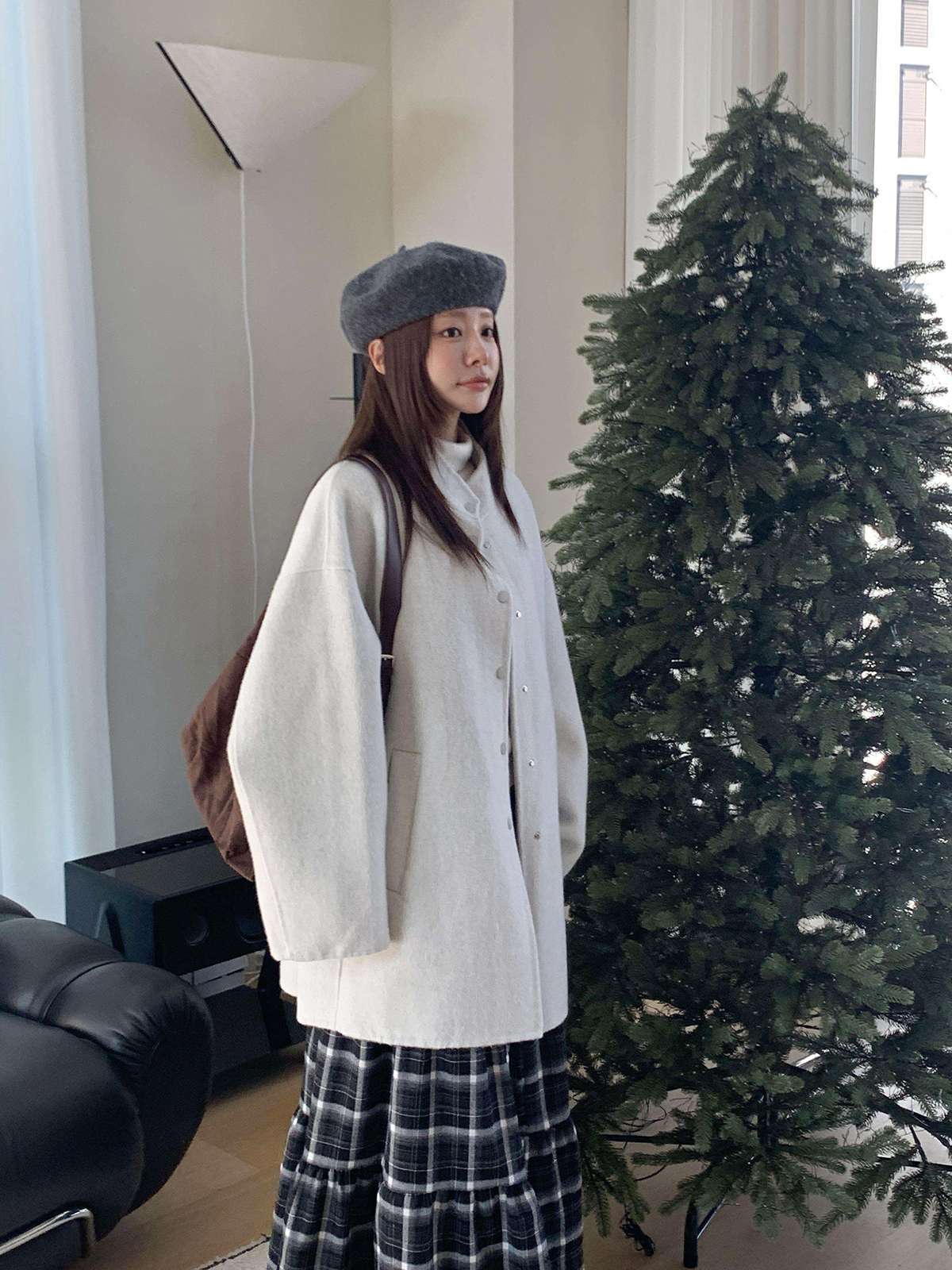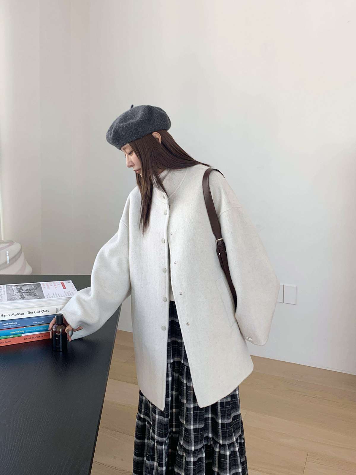 JK6092K5A-노엘라 핸드메이드 하이넥 오버핏 스냅버튼 울 코트