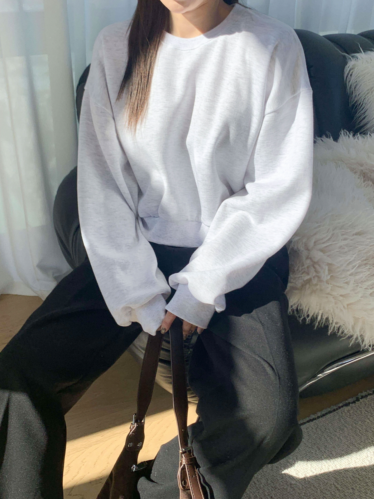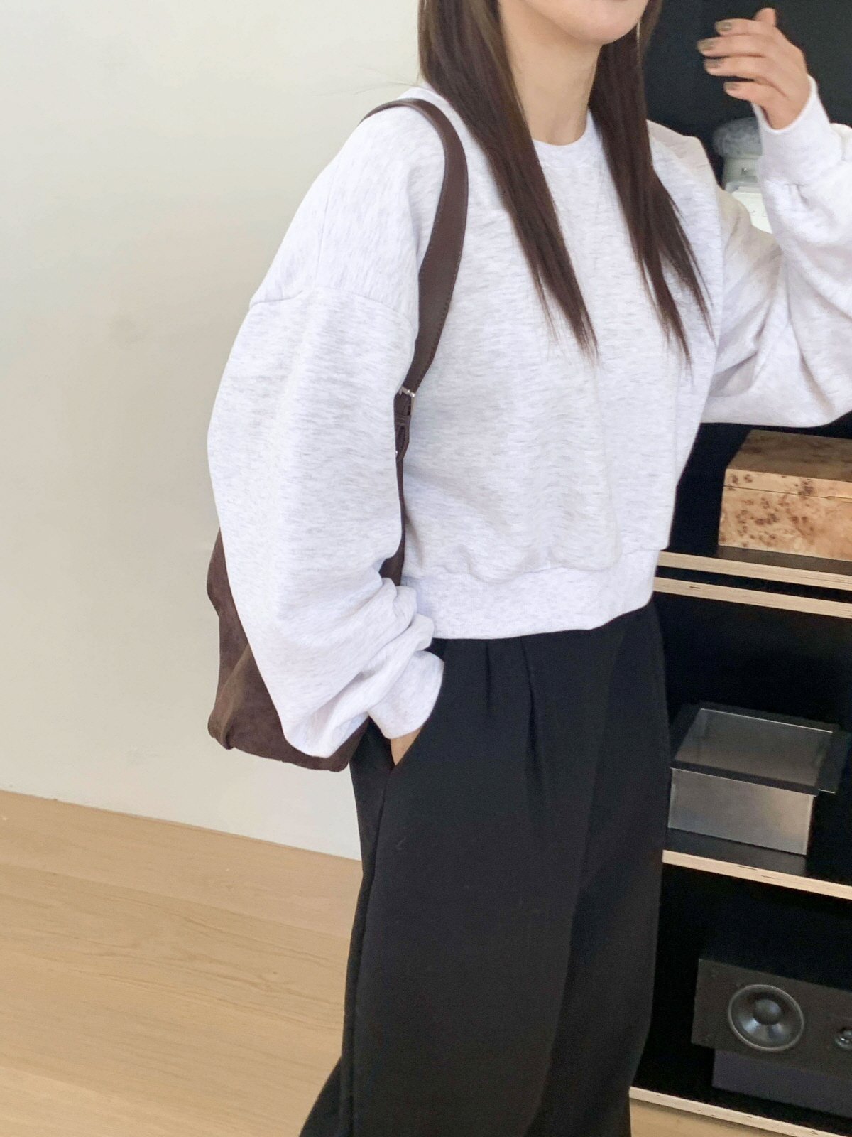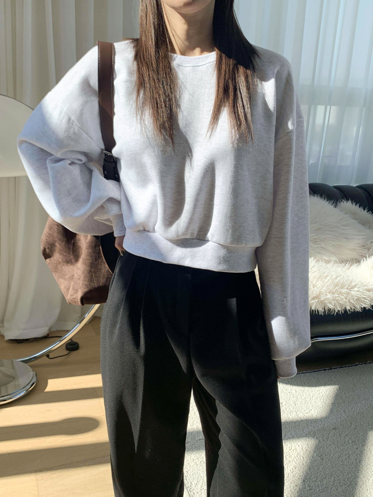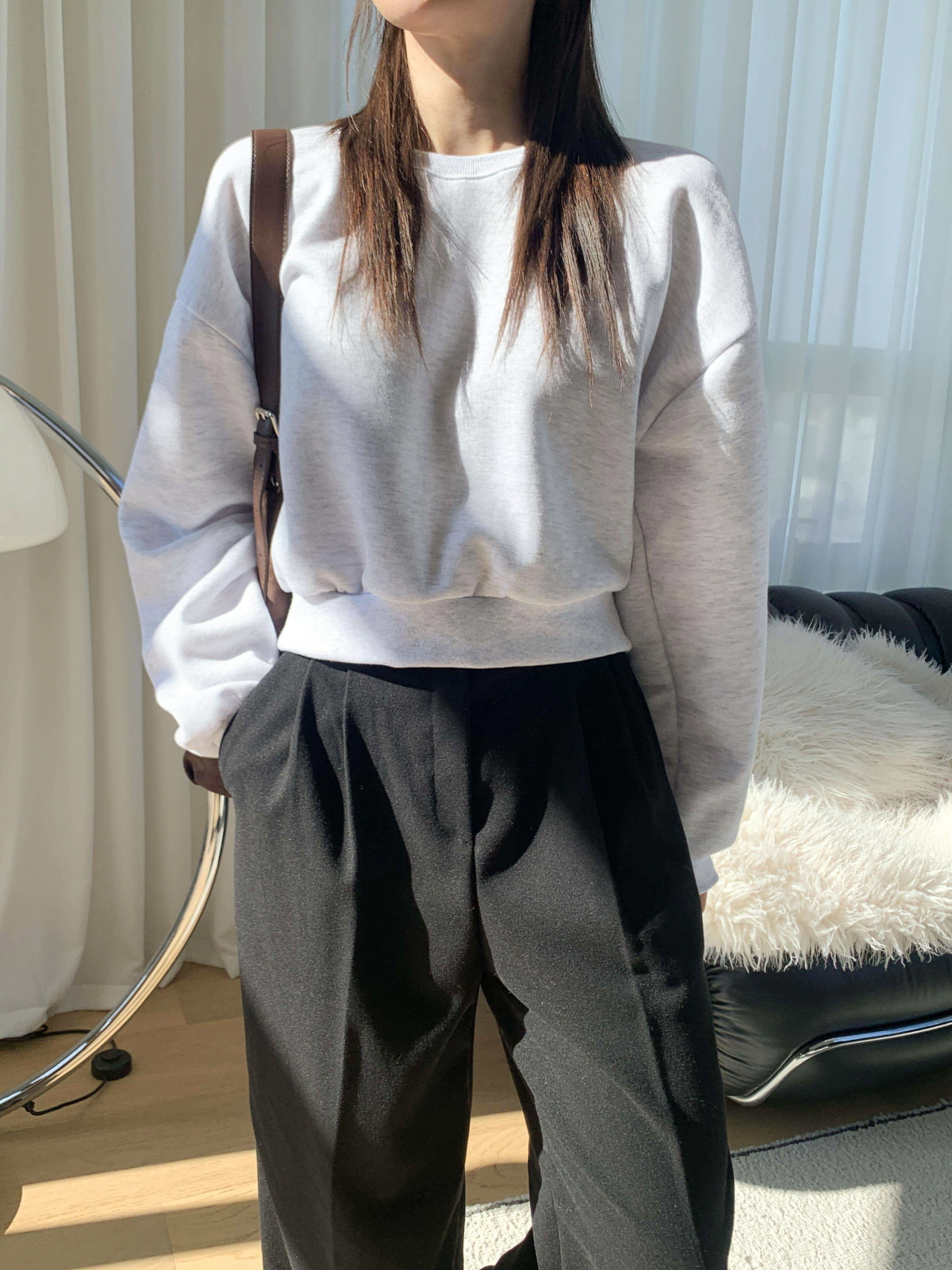 겨울에 따뜻하게 꾸안꾸 스타일을 연출할 수 있는 크롭 기모 맨투맨