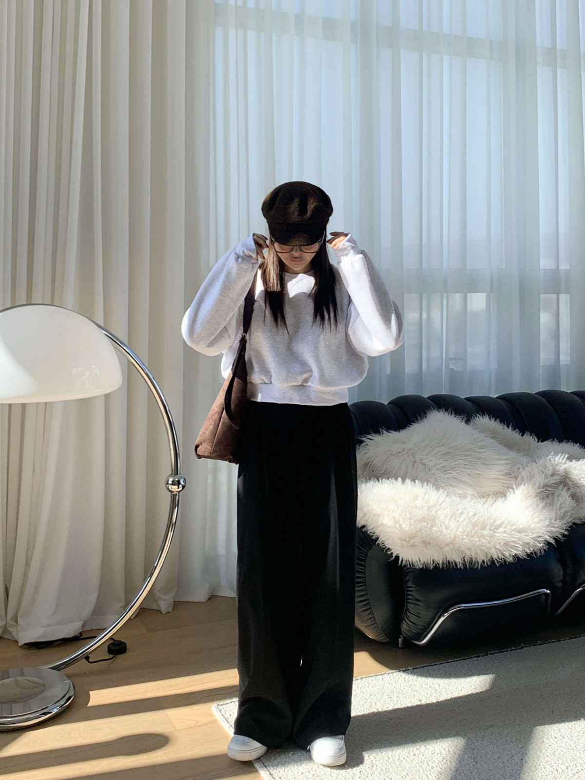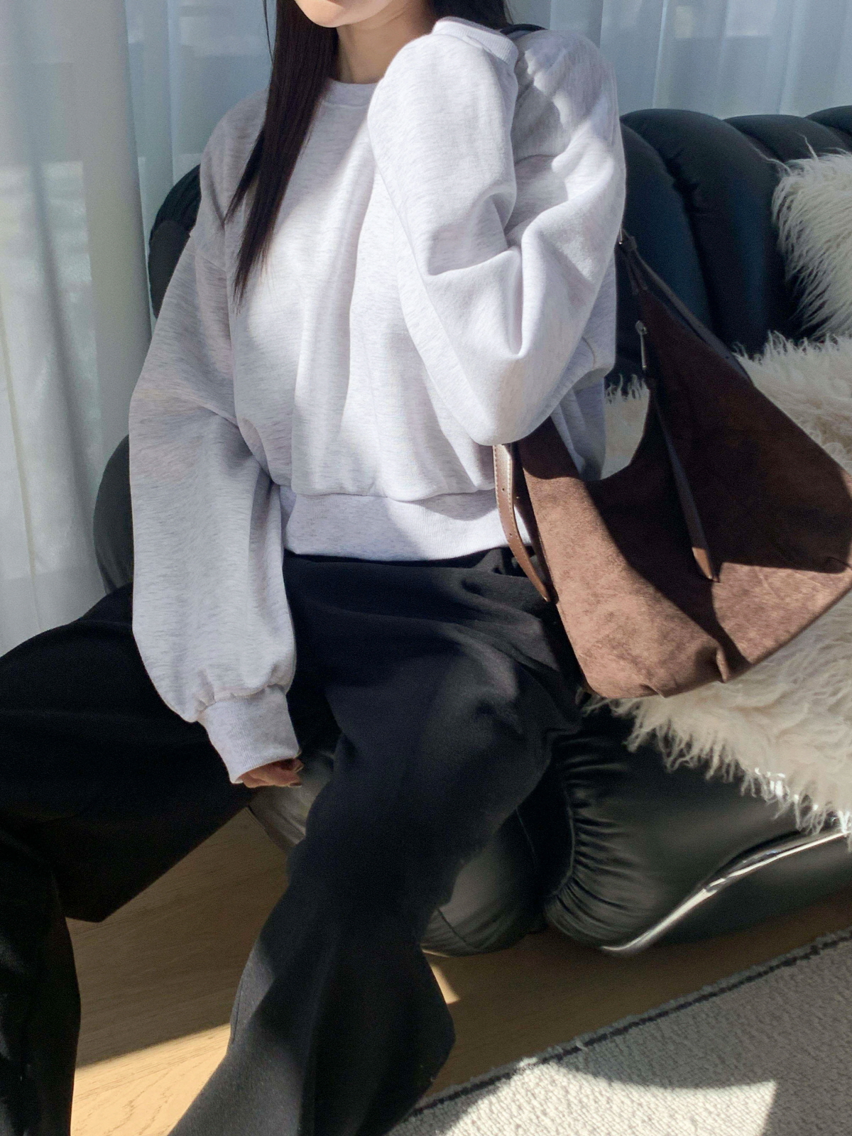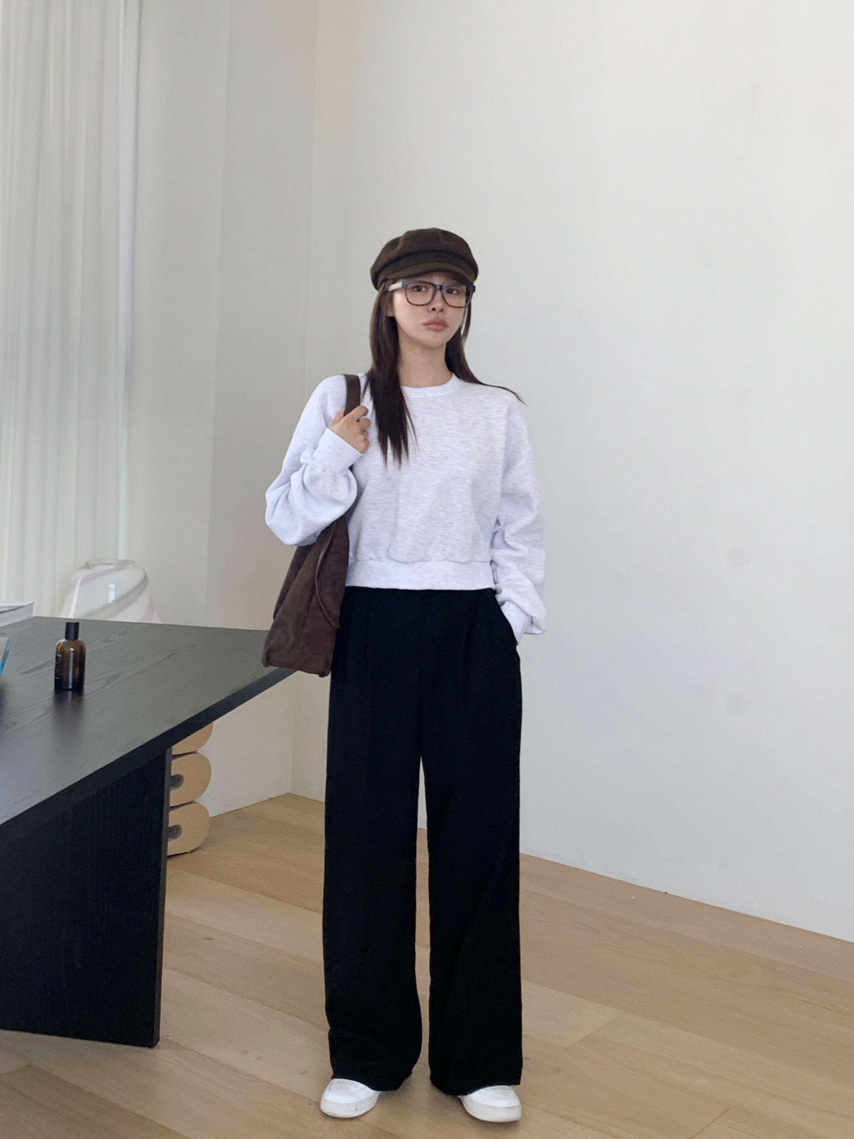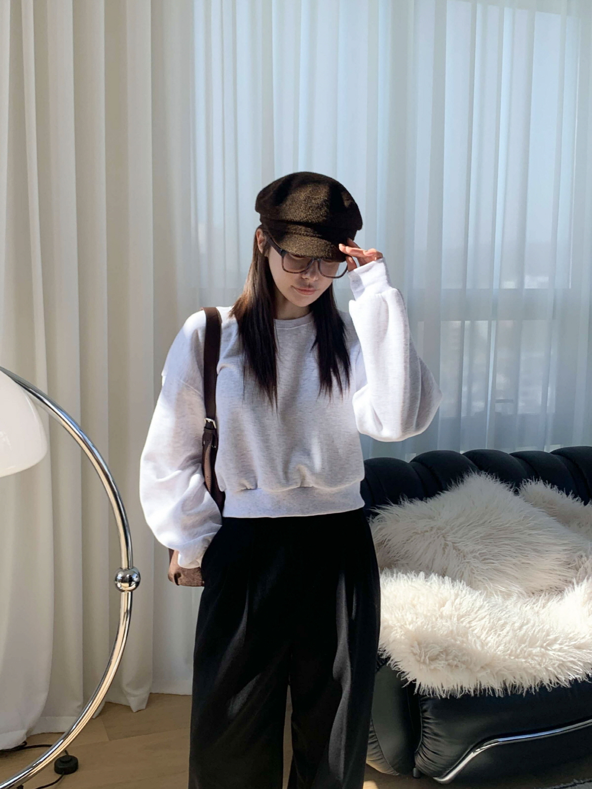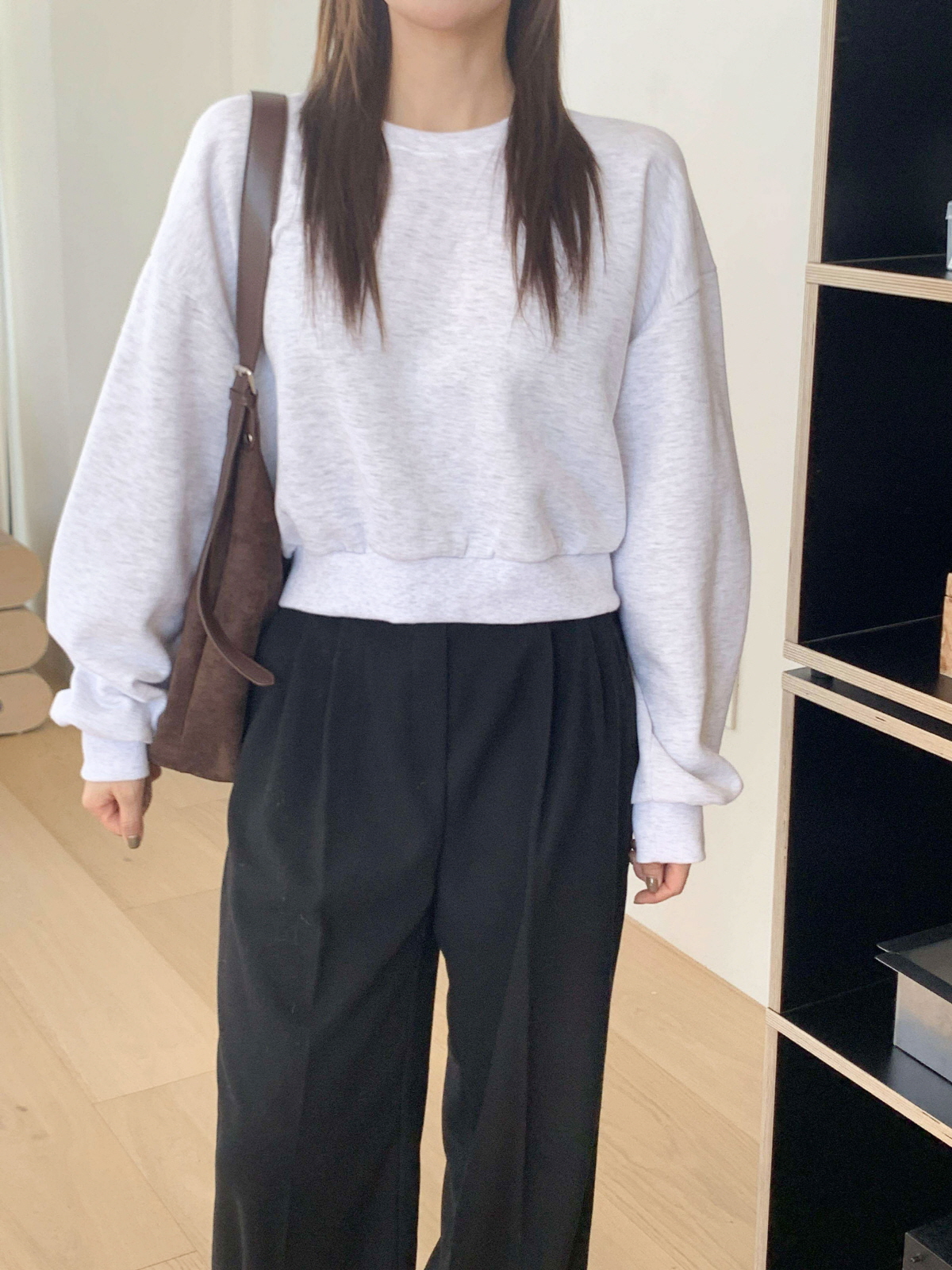 겨울에 따뜻하게 꾸안꾸 스타일을 연출할 수 있는 크롭 기모 맨투맨