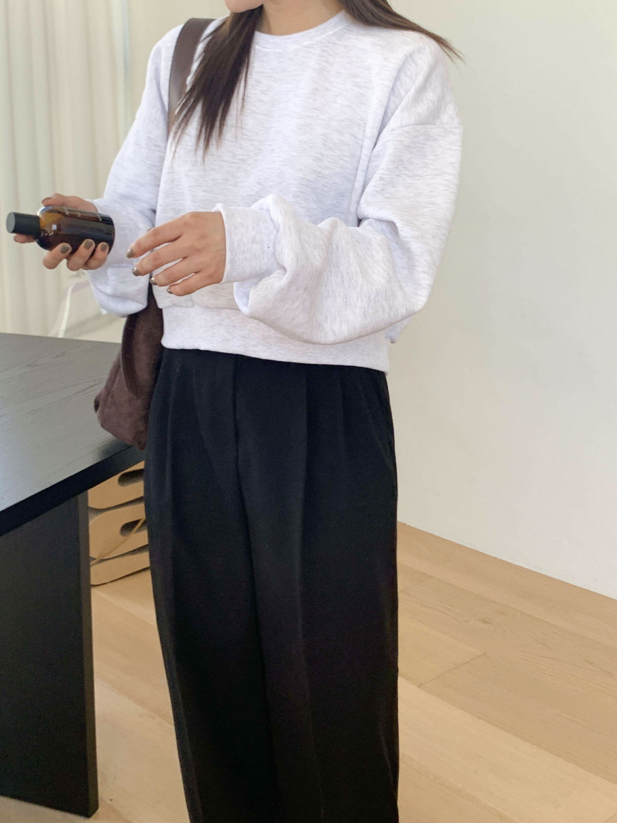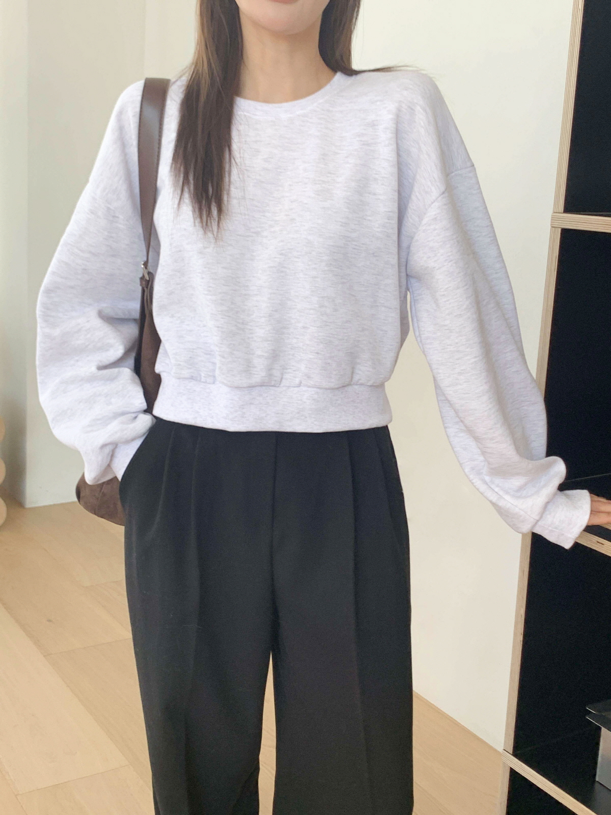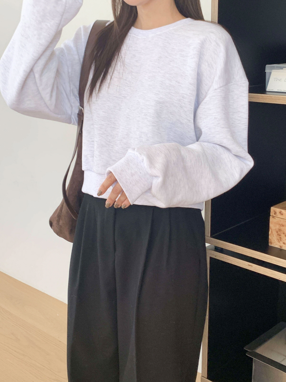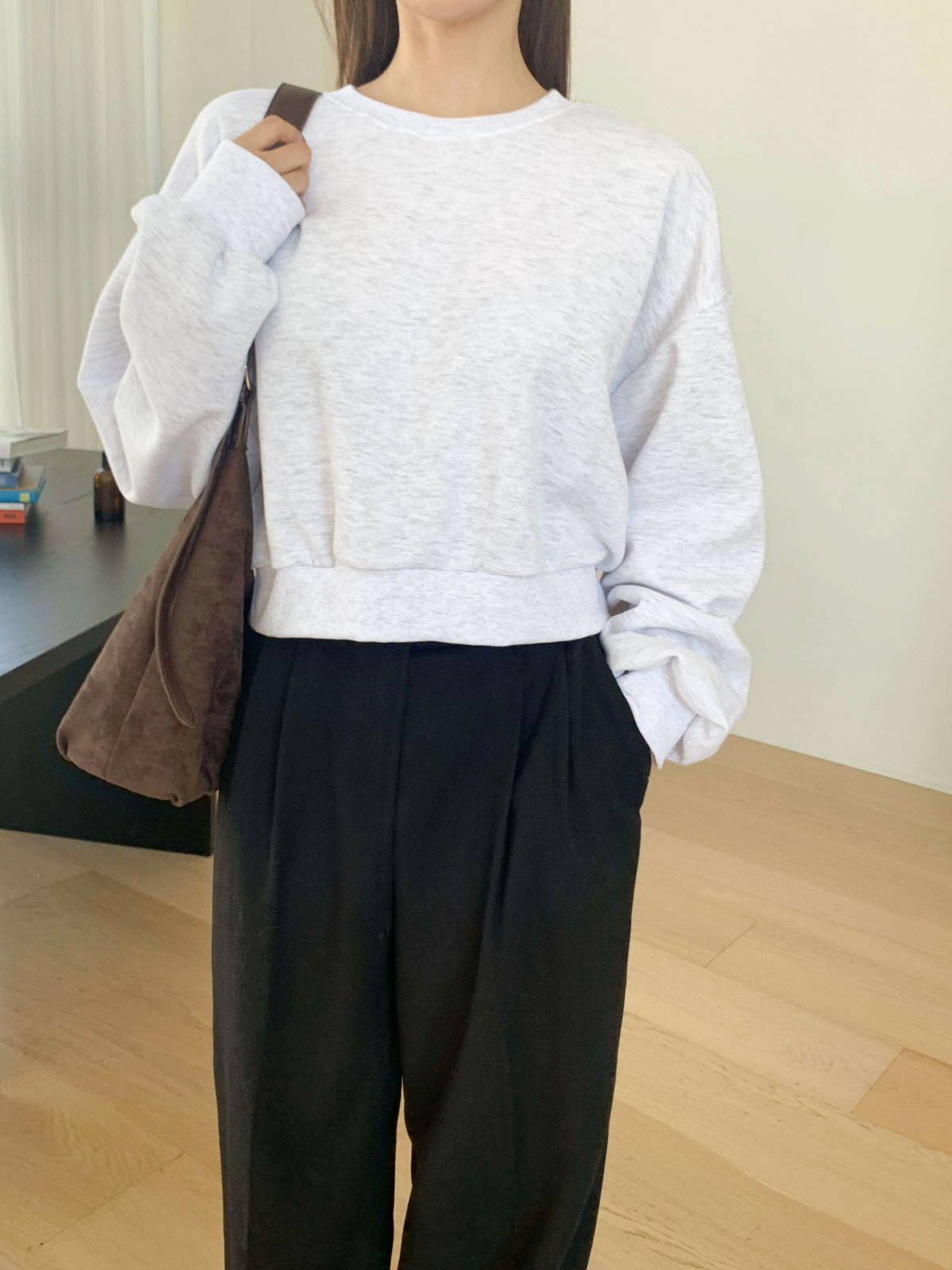 겨울에 따뜻하게 꾸안꾸 스타일을 연출할 수 있는 크롭 기모 맨투맨