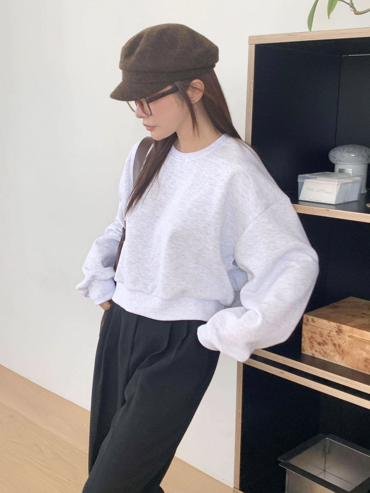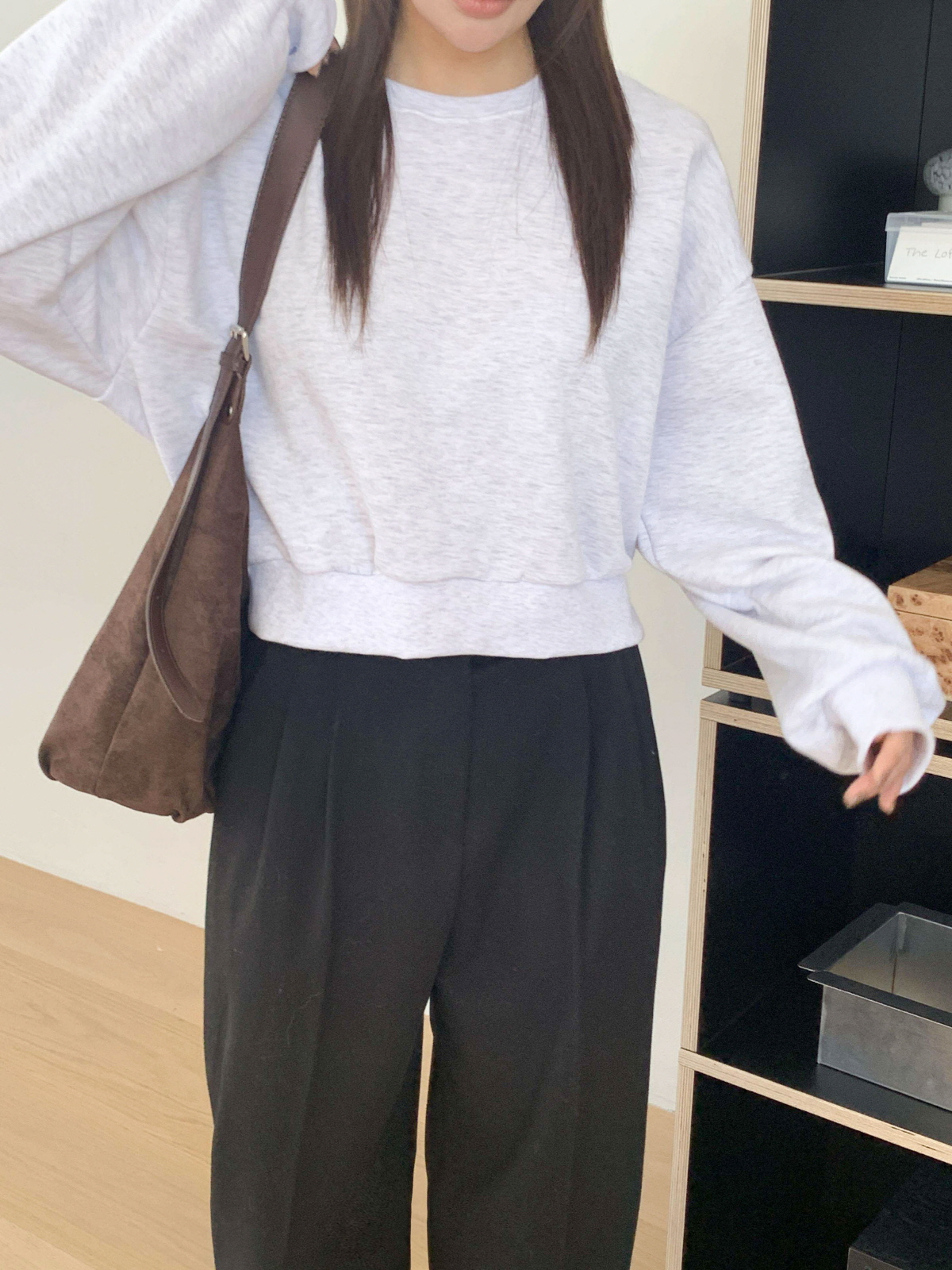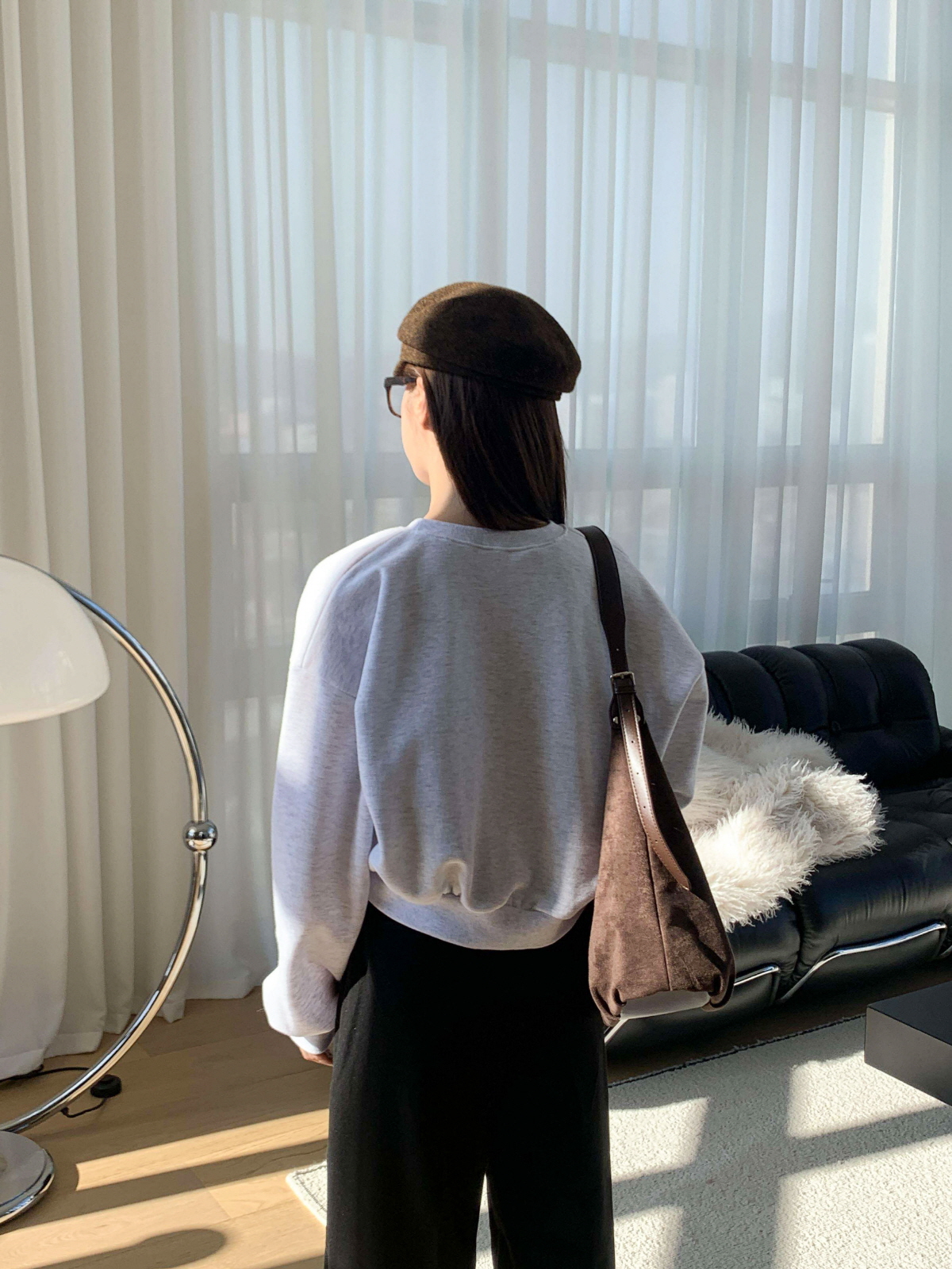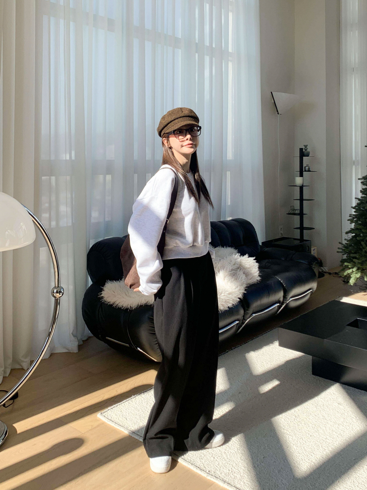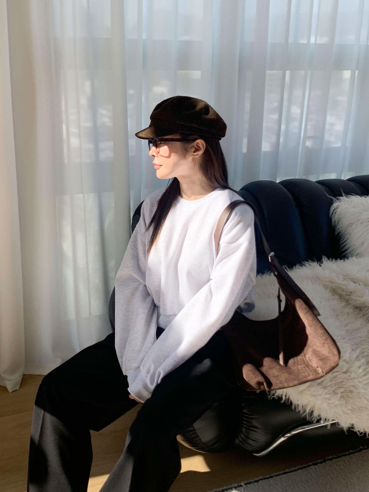 겨울에 따뜻하게 꾸안꾸 스타일을 연출할 수 있는 크롭 기모 맨투맨
