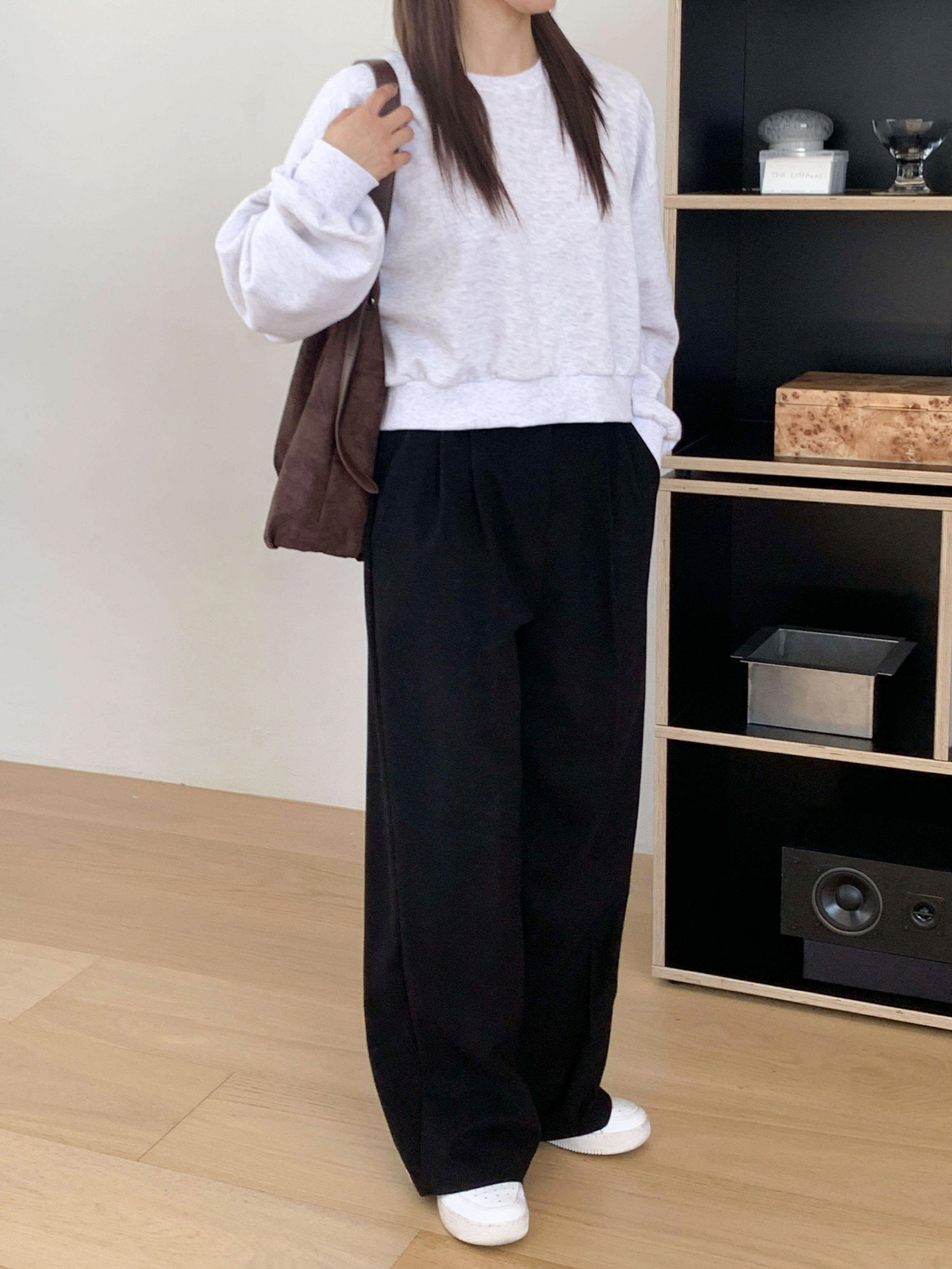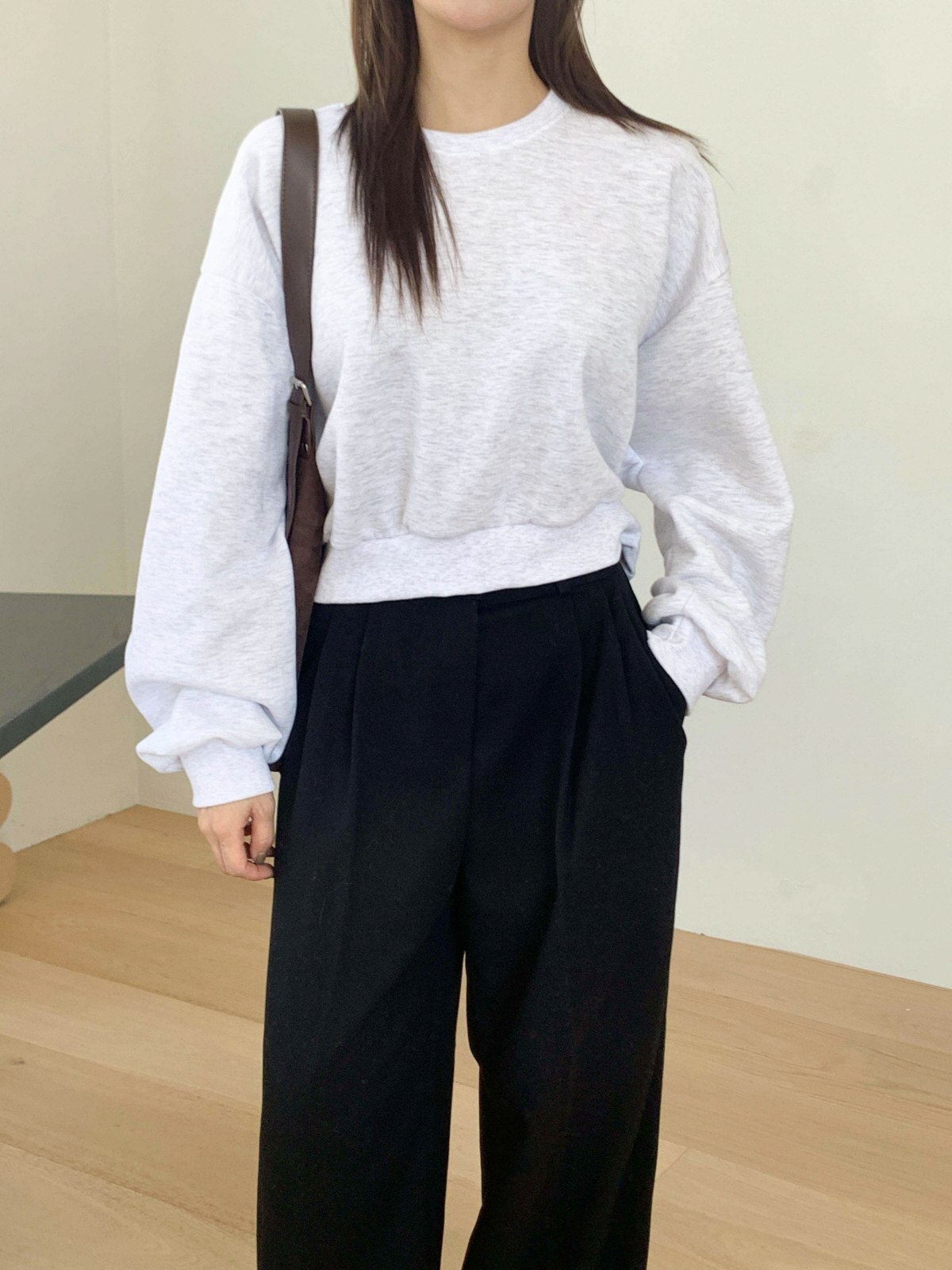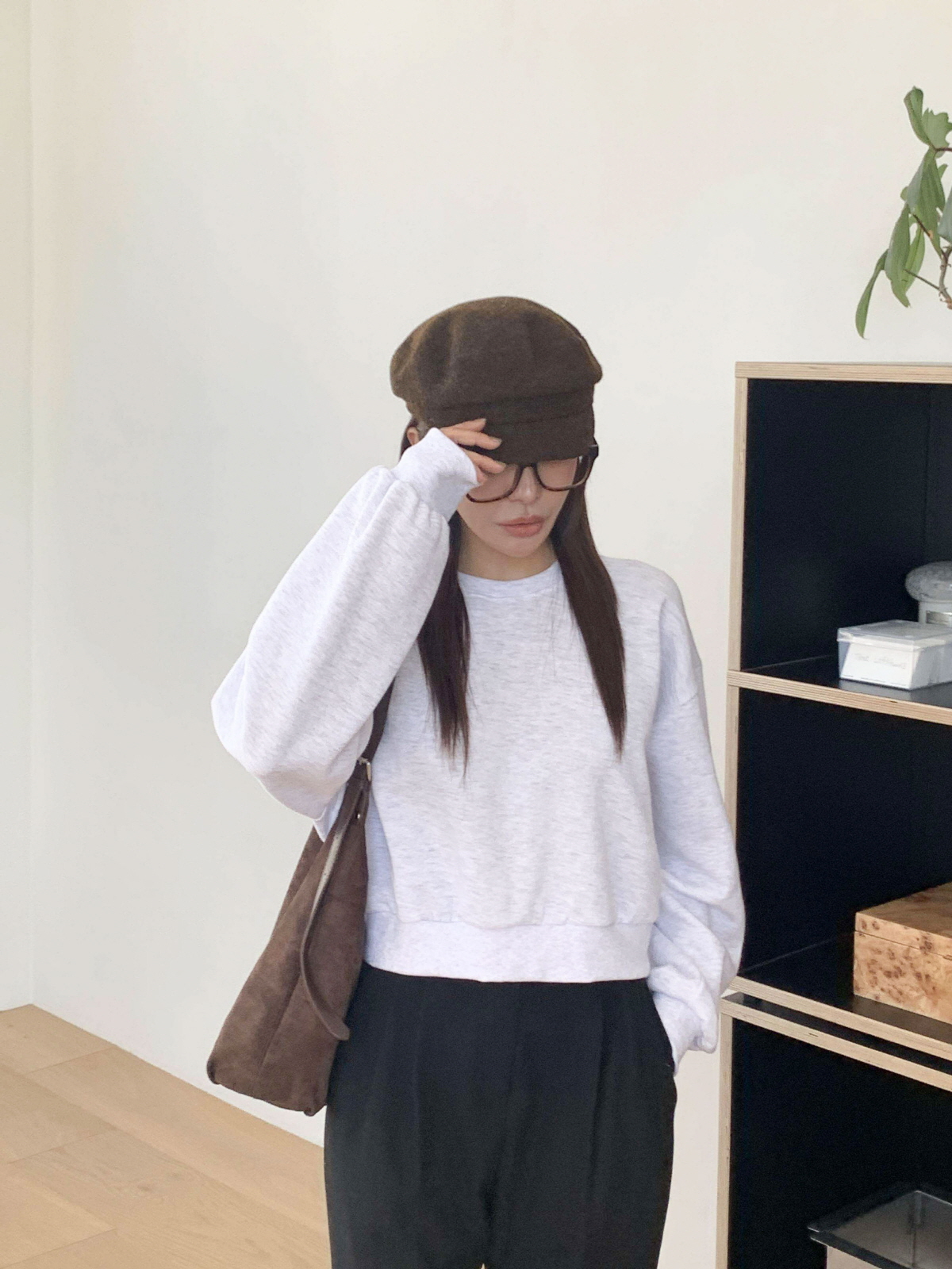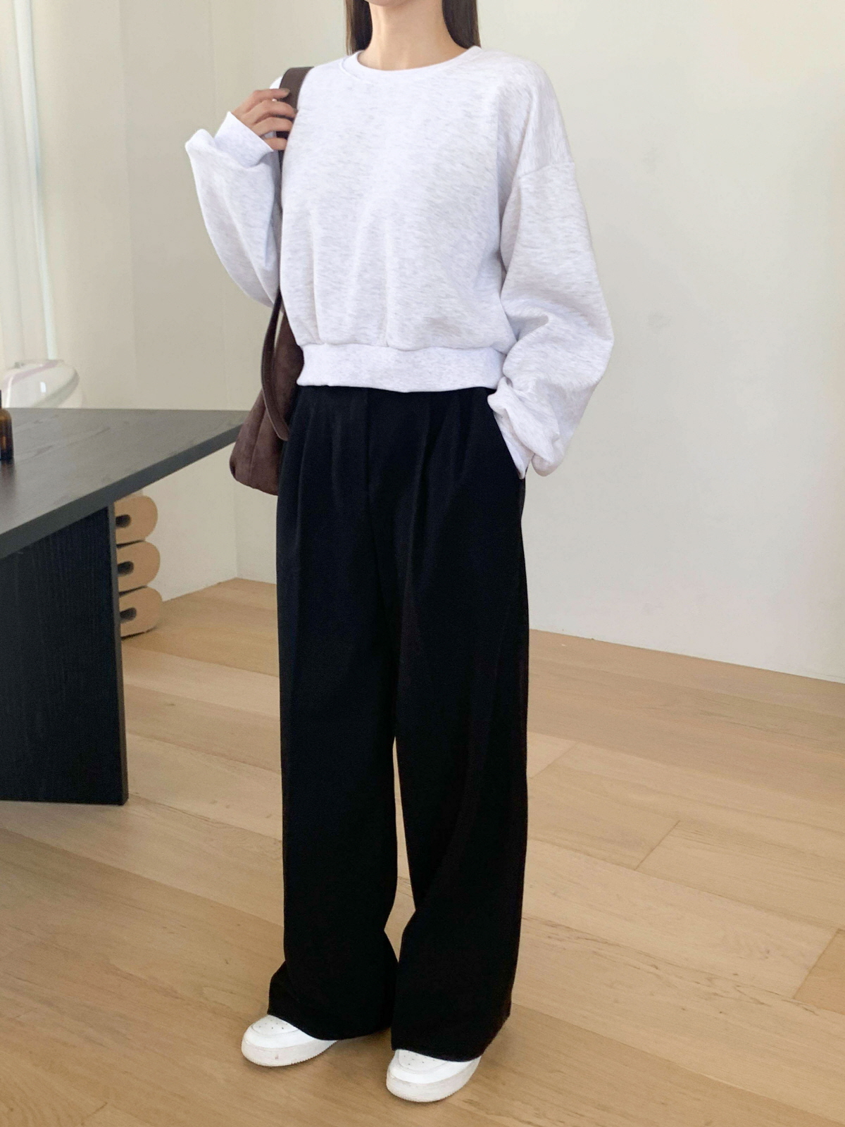 겨울에 따뜻하게 꾸안꾸 스타일을 연출할 수 있는 크롭 기모 맨투맨