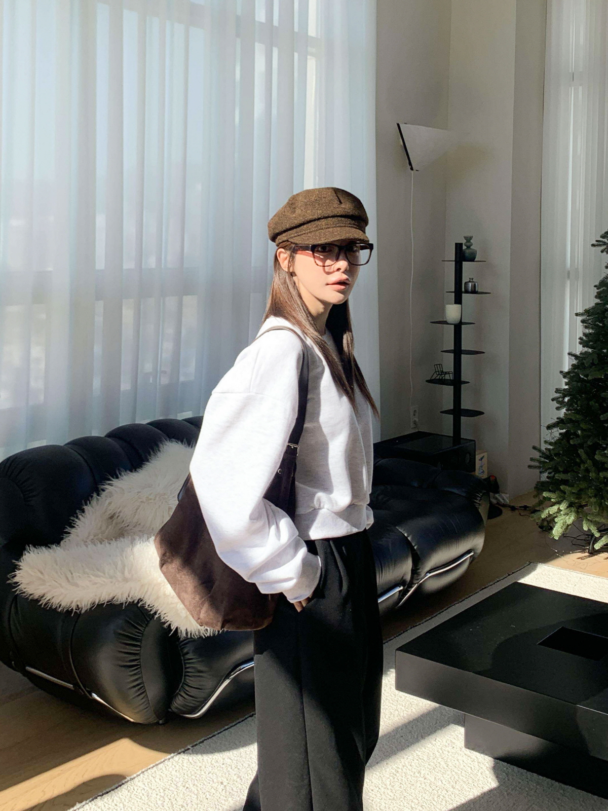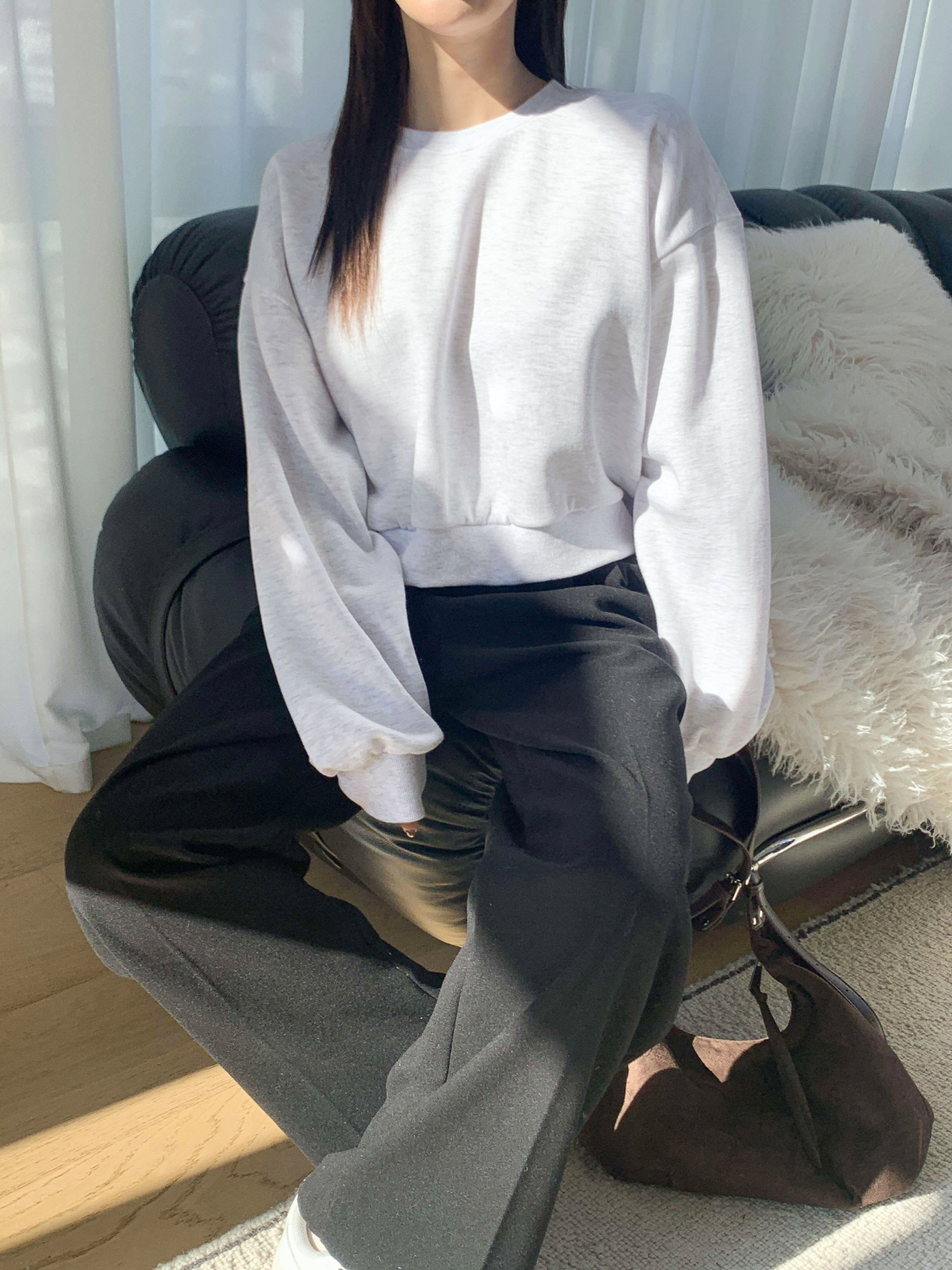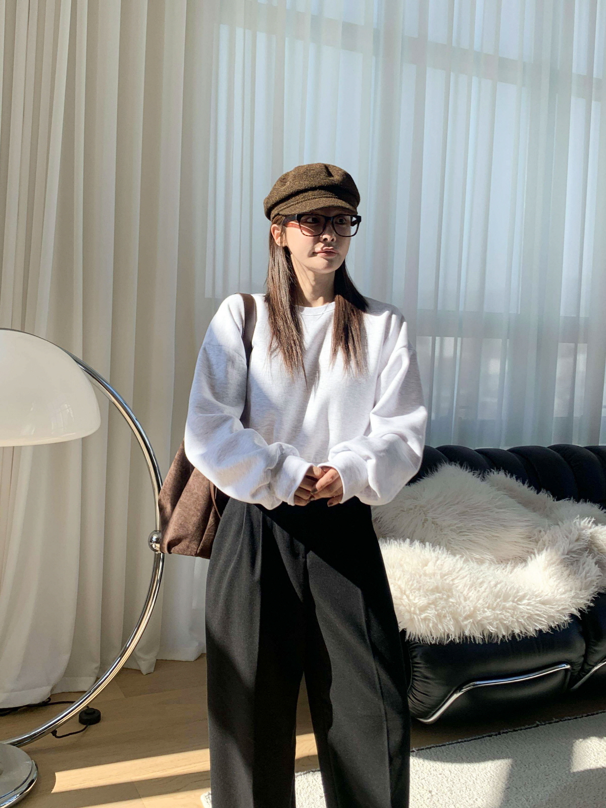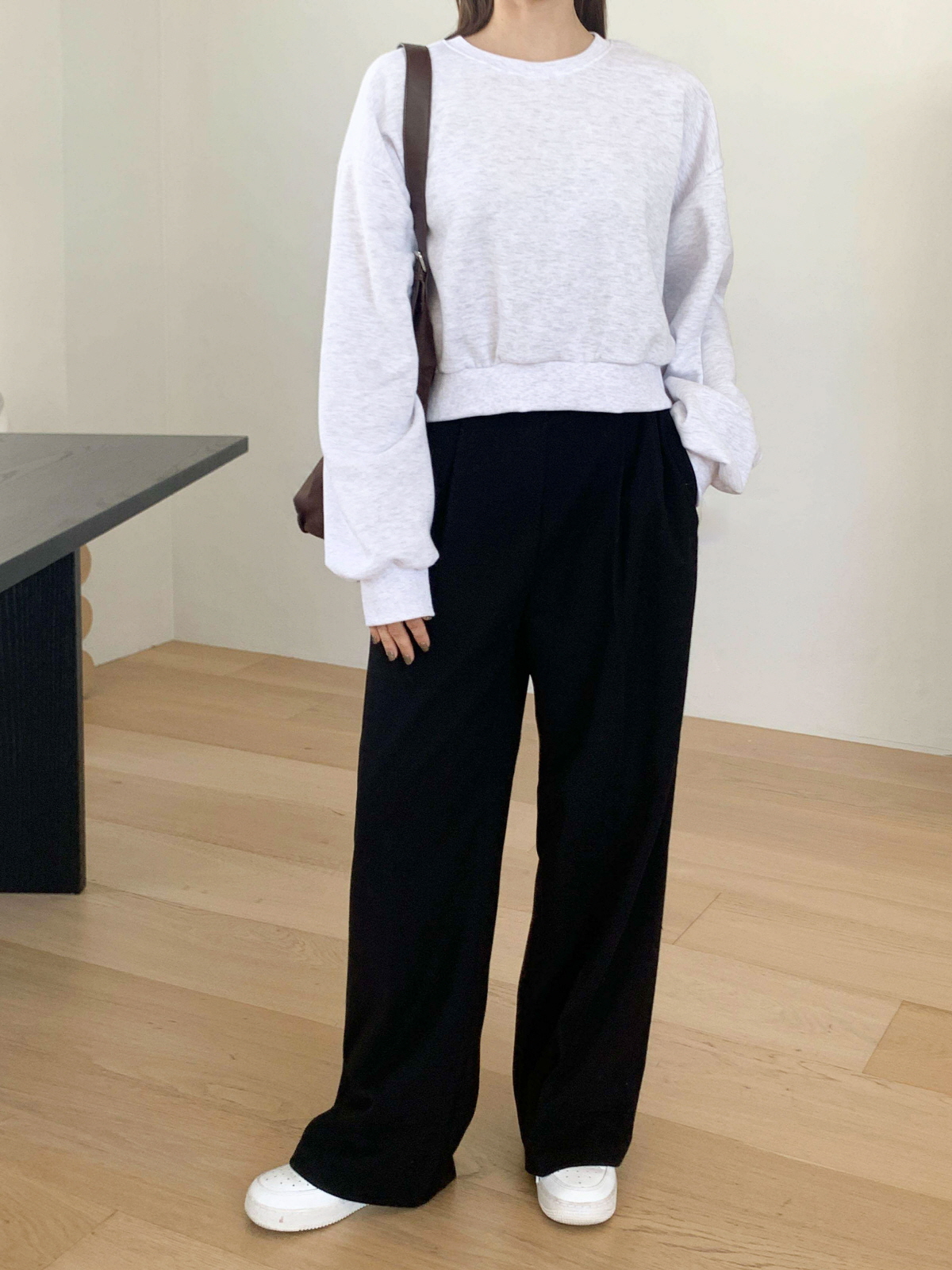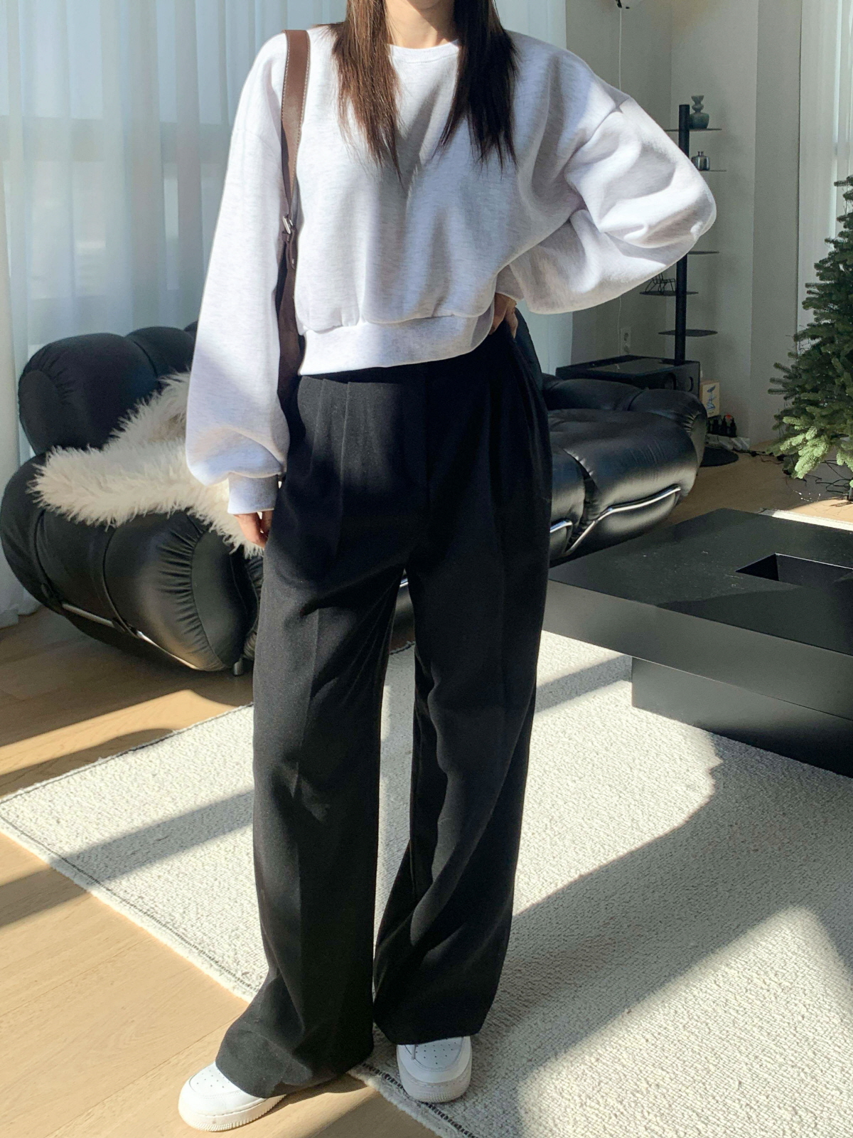 겨울에 따뜻하게 꾸안꾸 스타일을 연출할 수 있는 크롭 기모 맨투맨