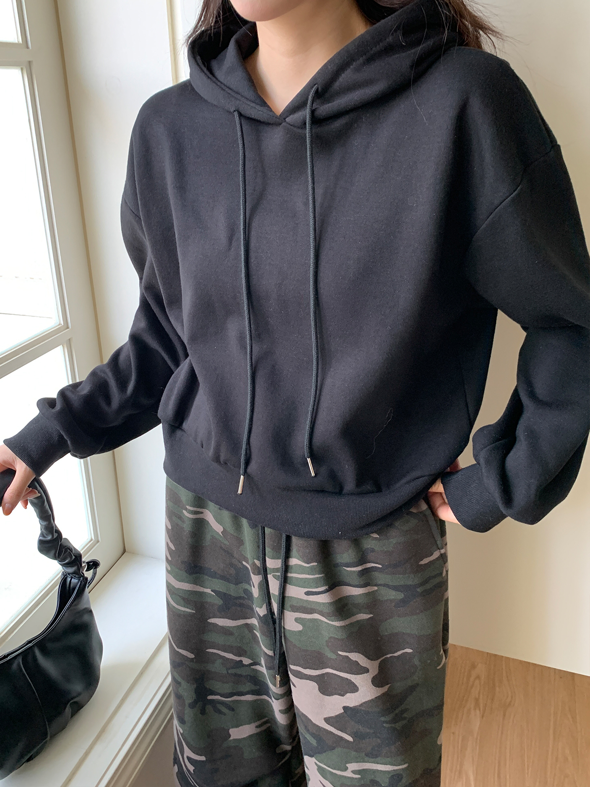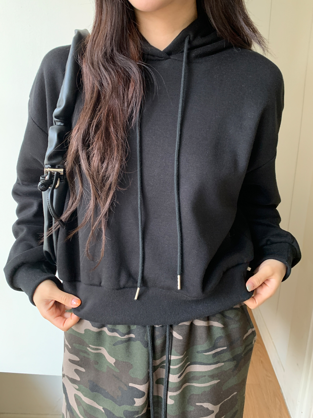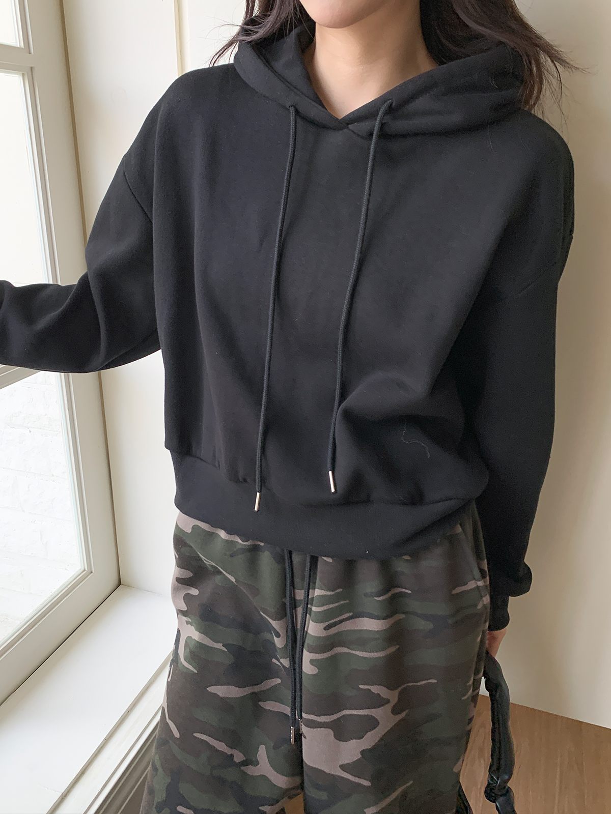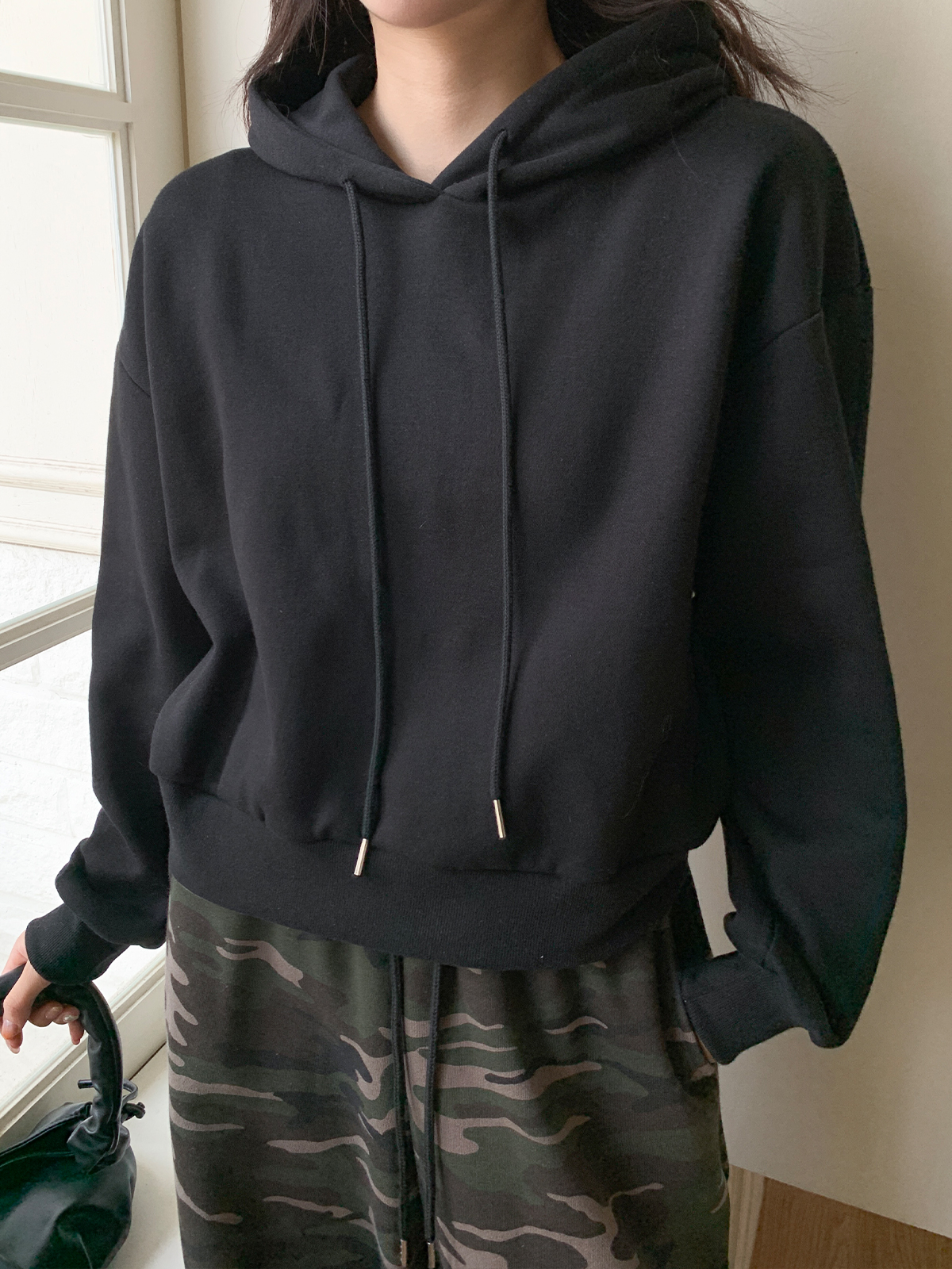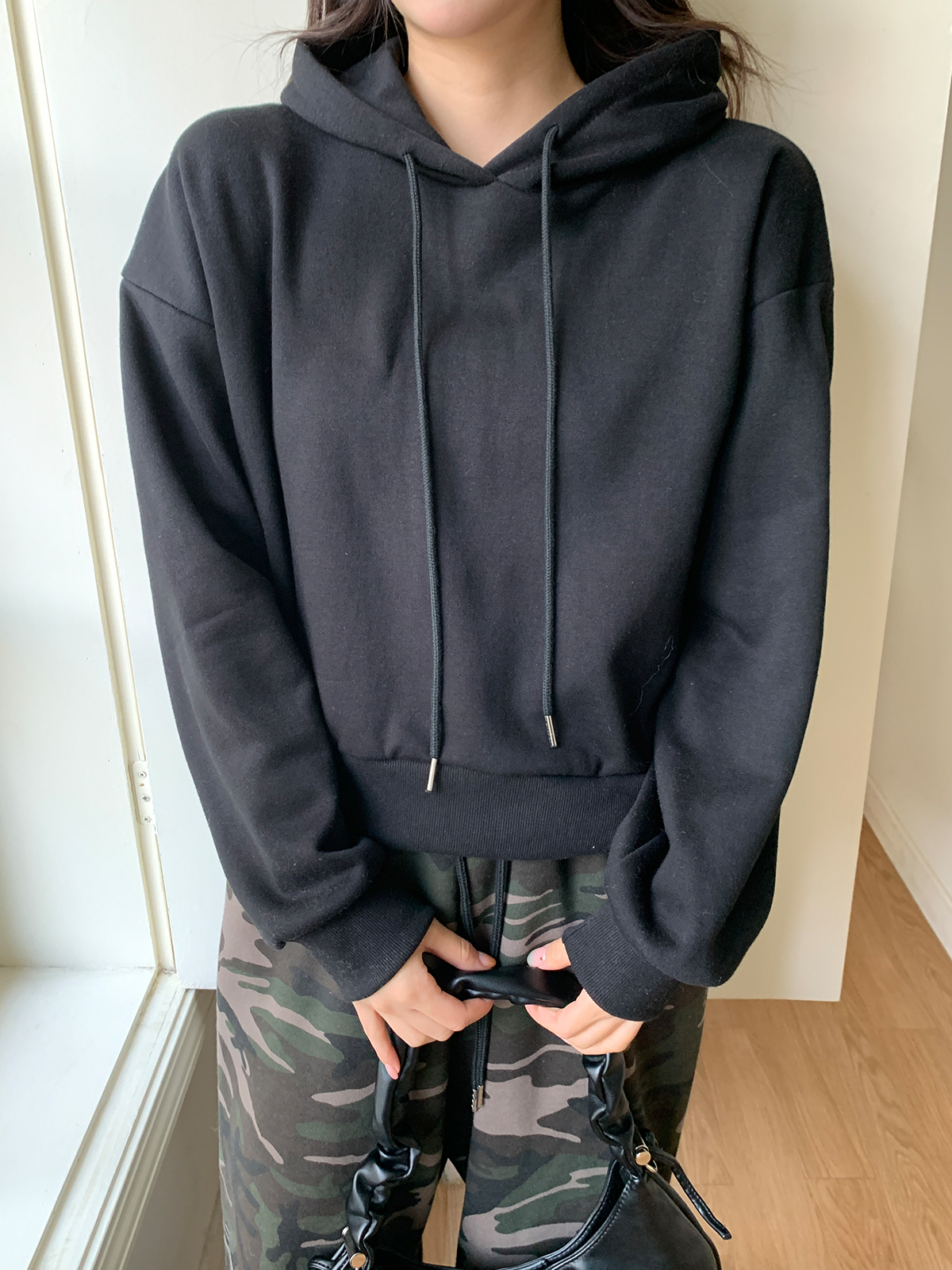 한겨울에 입기 좋은 기모 원단의 크롭 후드 티셔츠