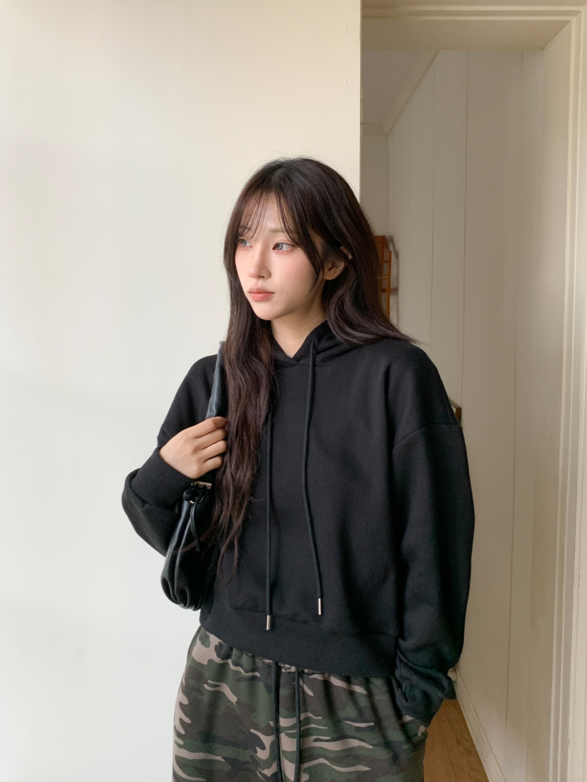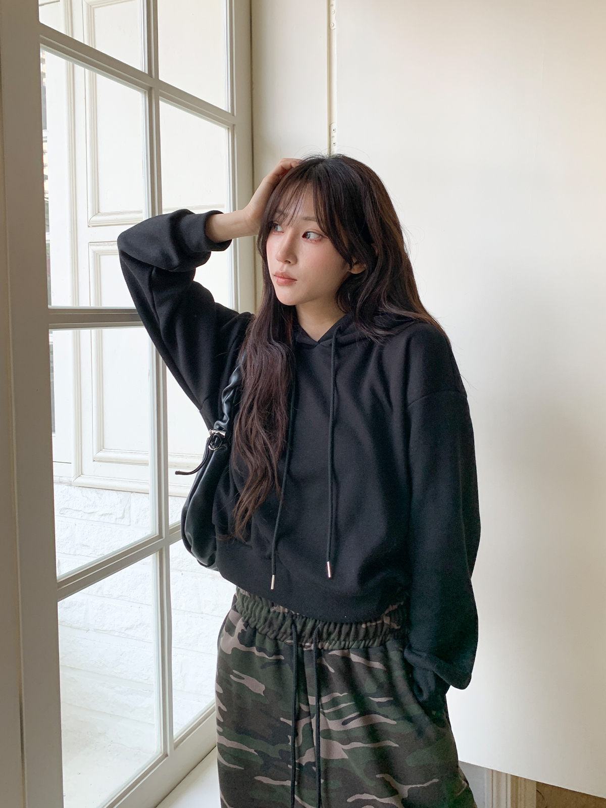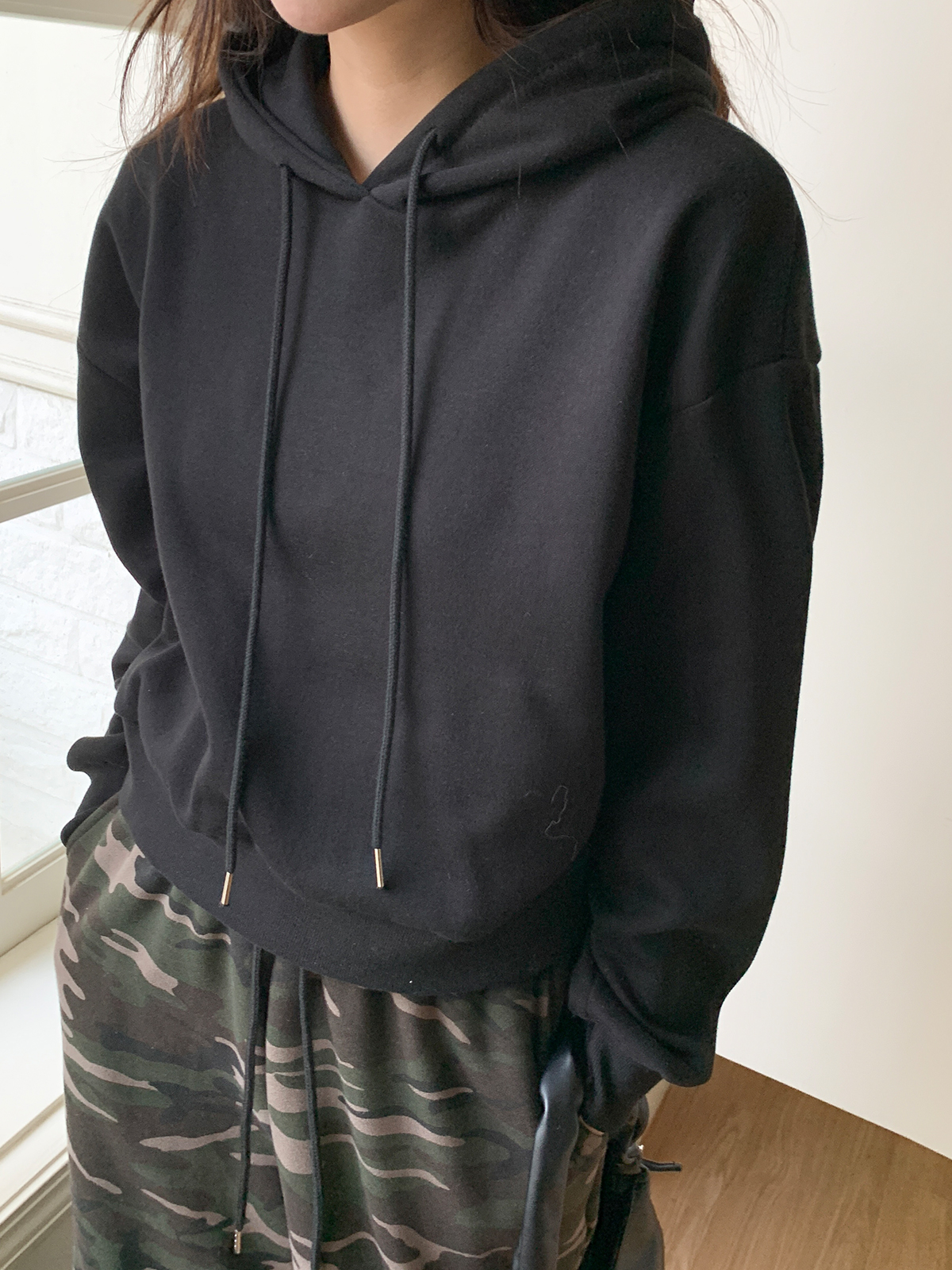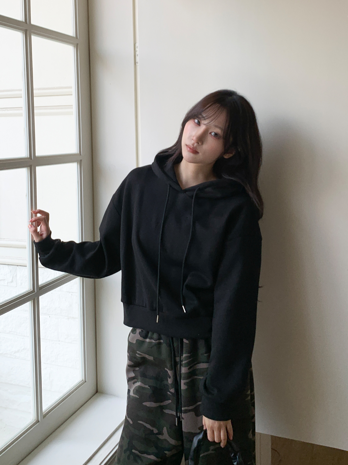 한겨울에 입기 좋은 기모 원단의 크롭 후드 티셔츠