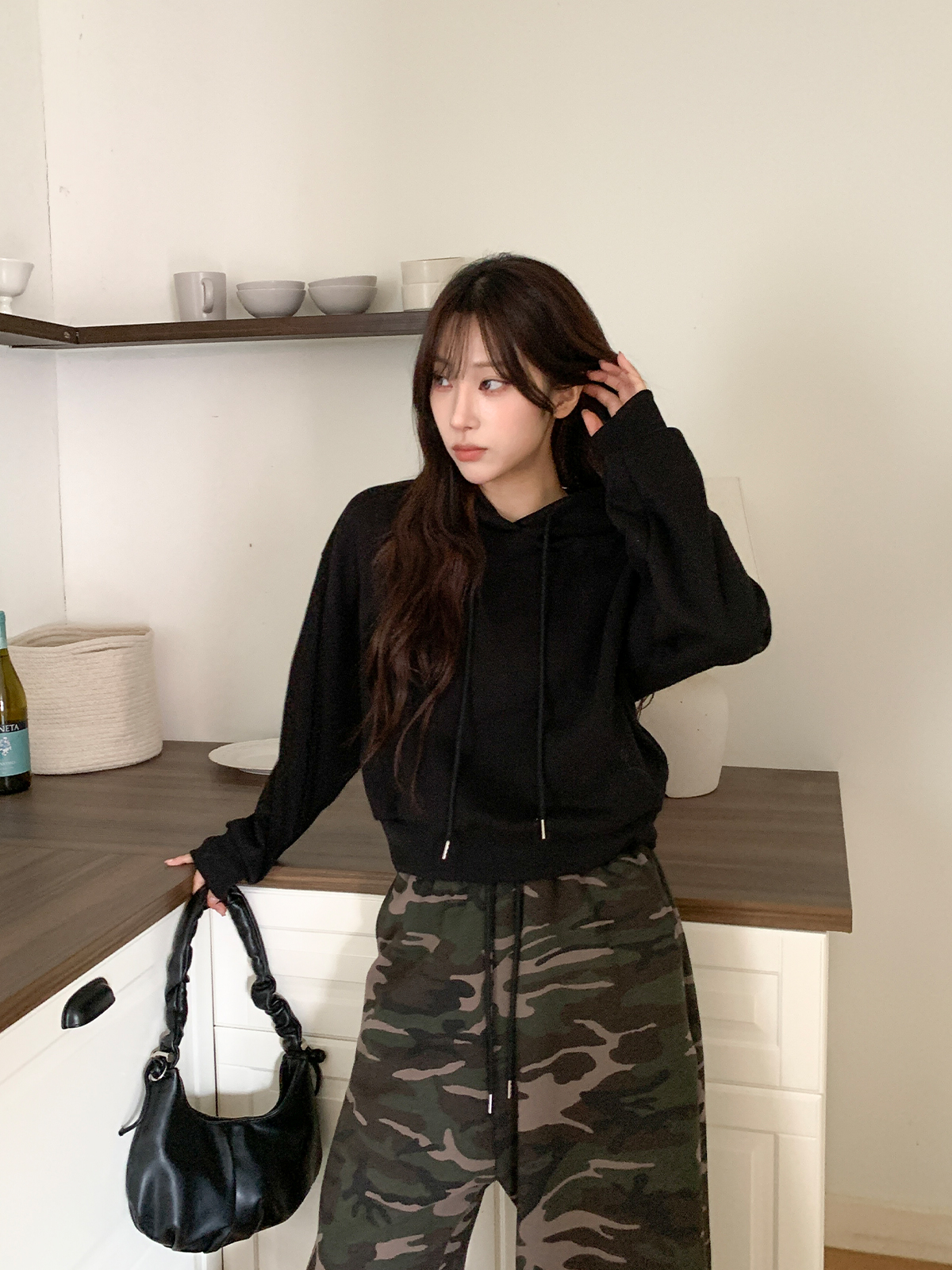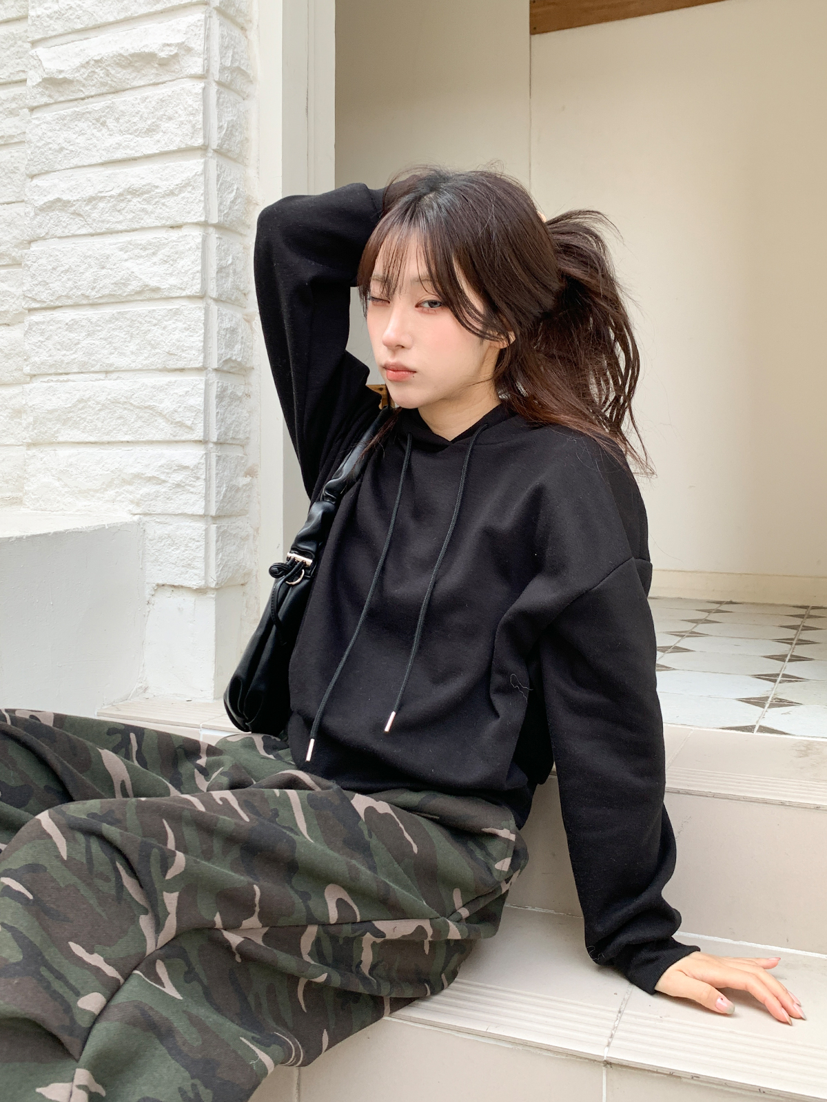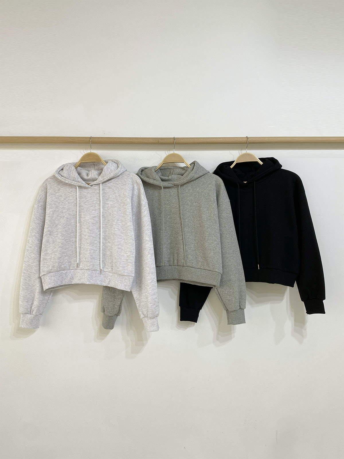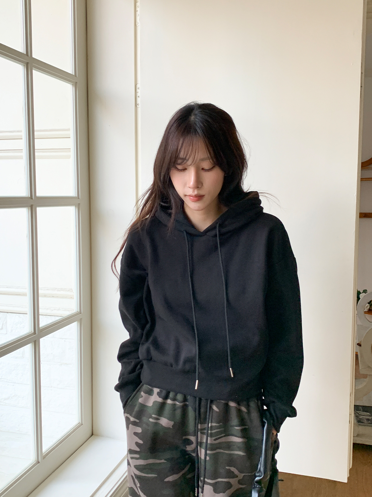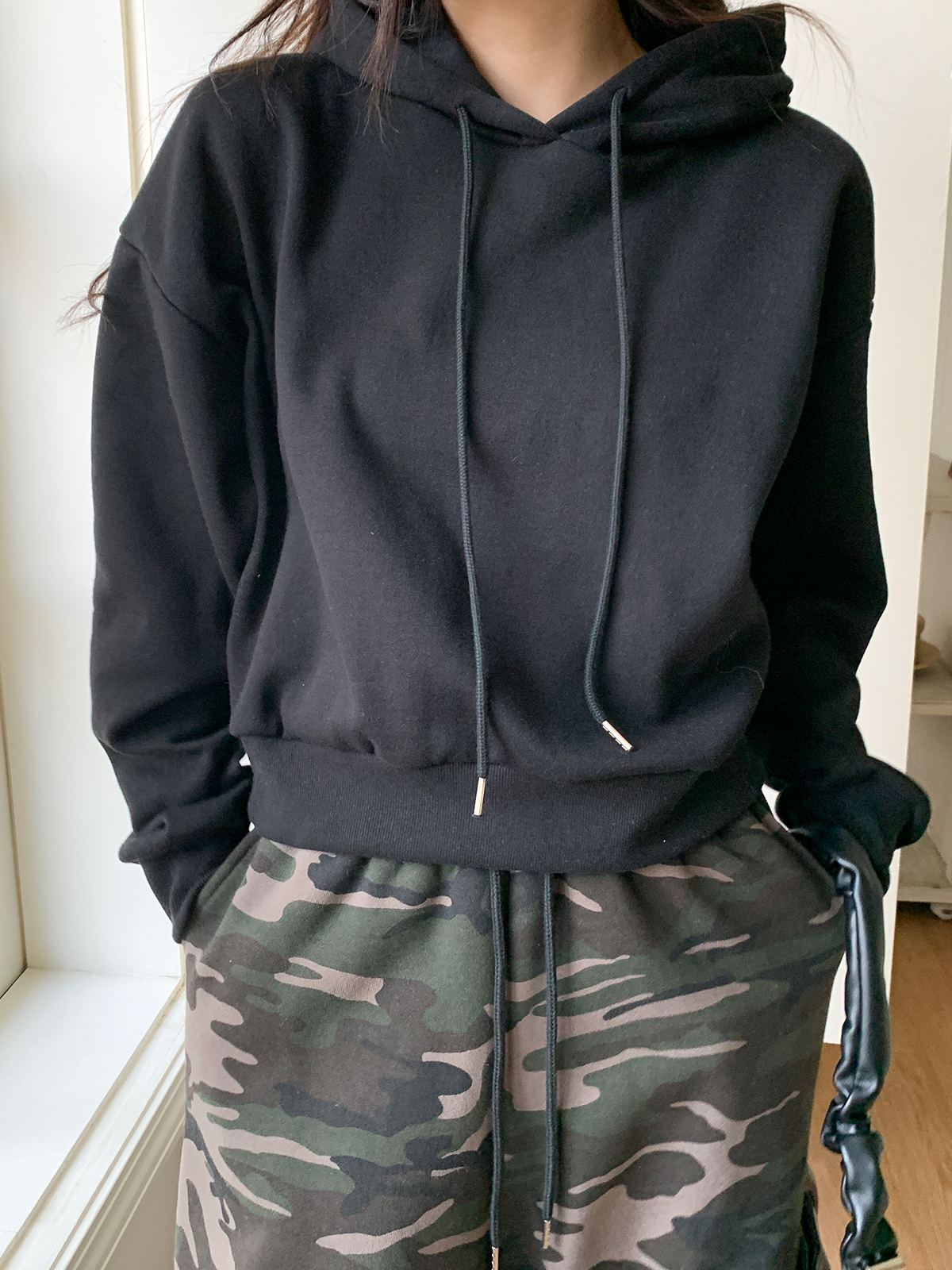 한겨울에 입기 좋은 기모 원단의 크롭 후드 티셔츠