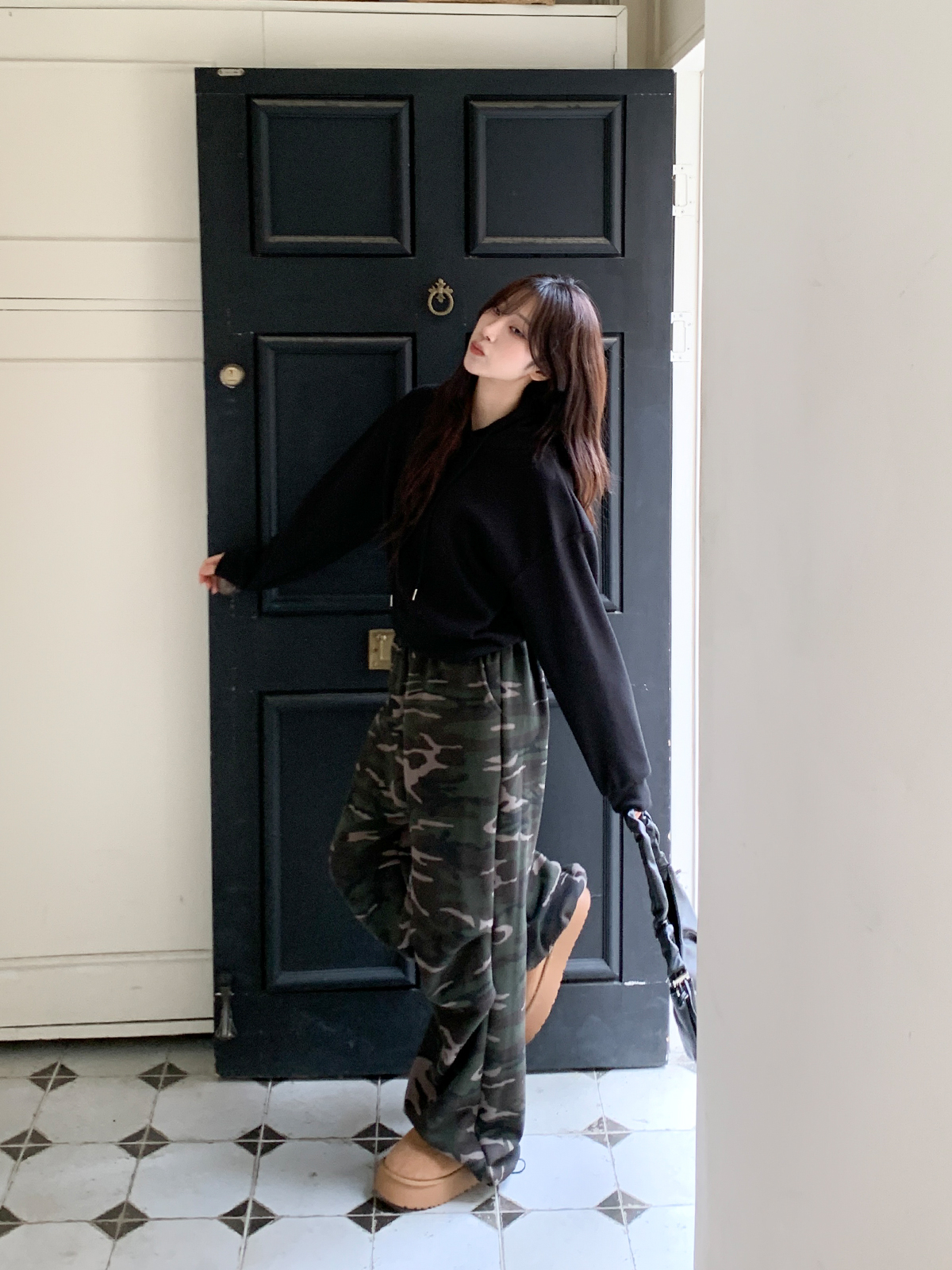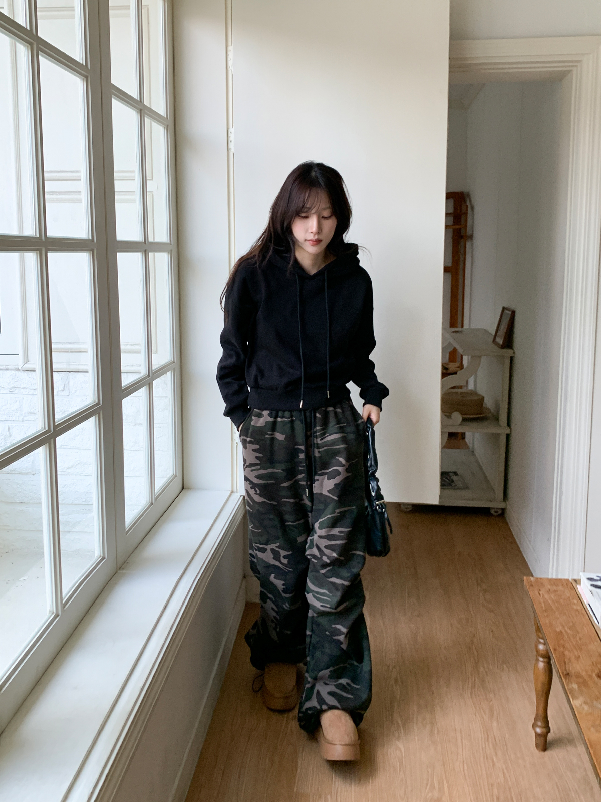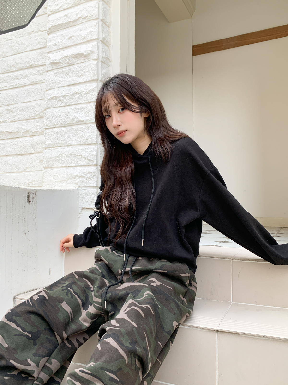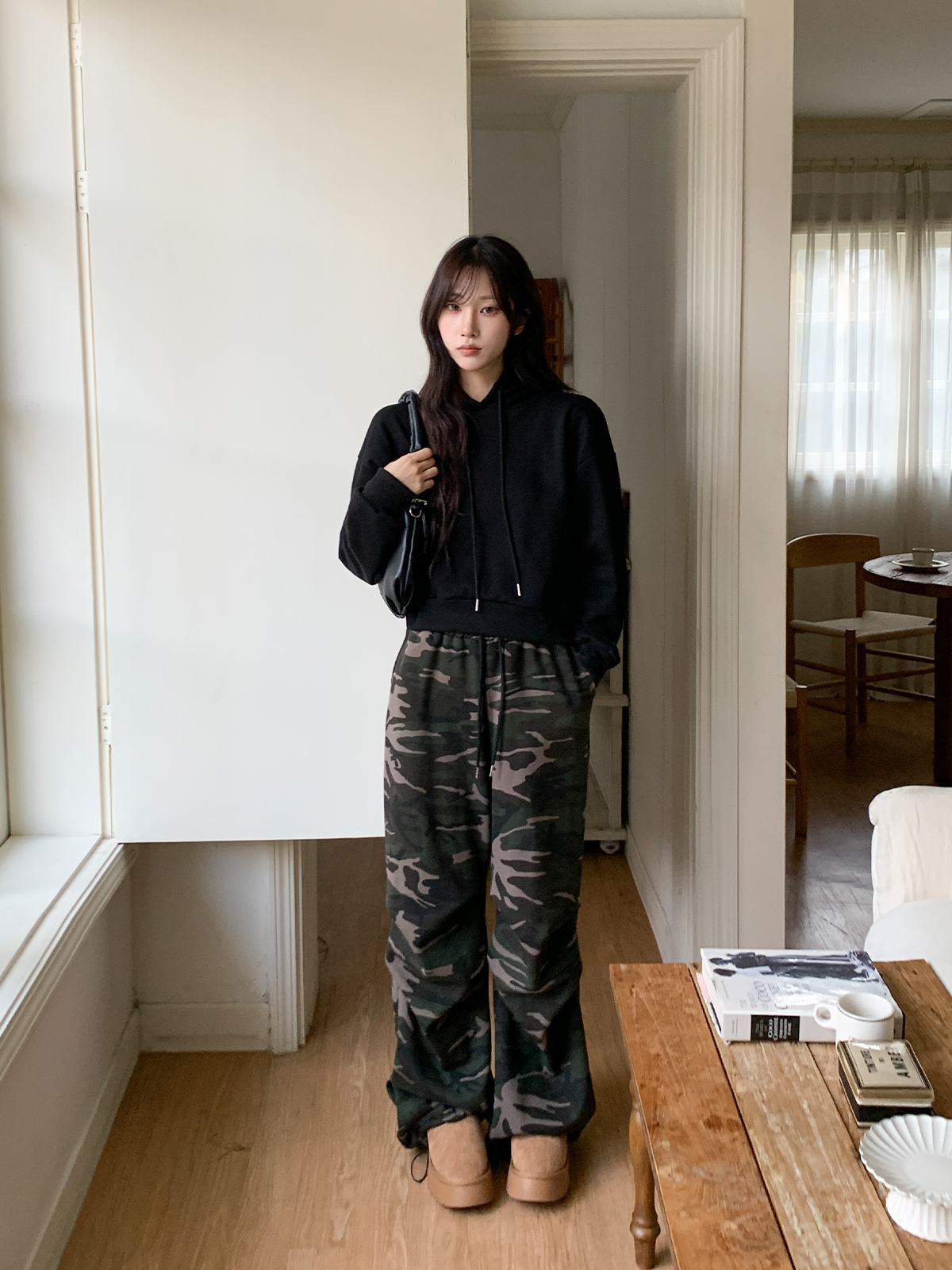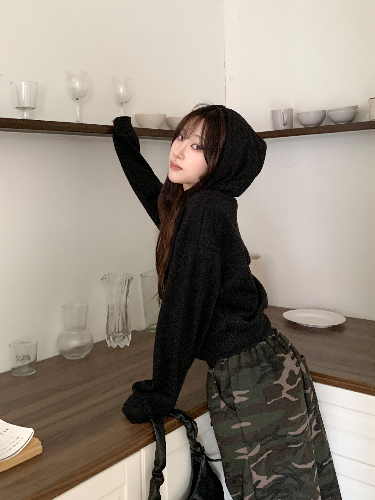 한겨울에 입기 좋은 기모 원단의 크롭 후드 티셔츠