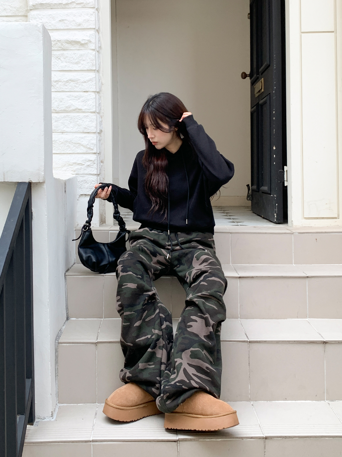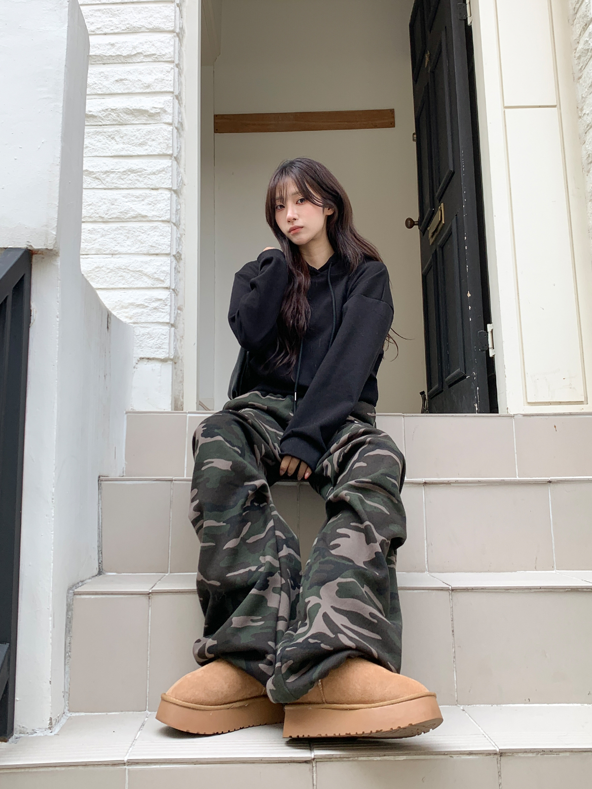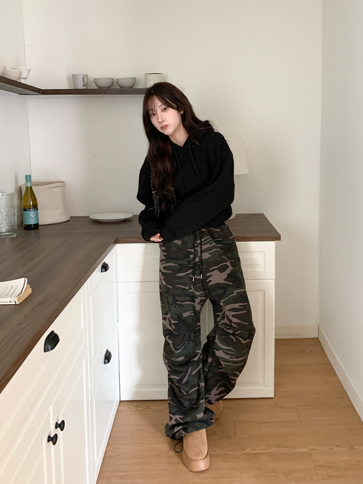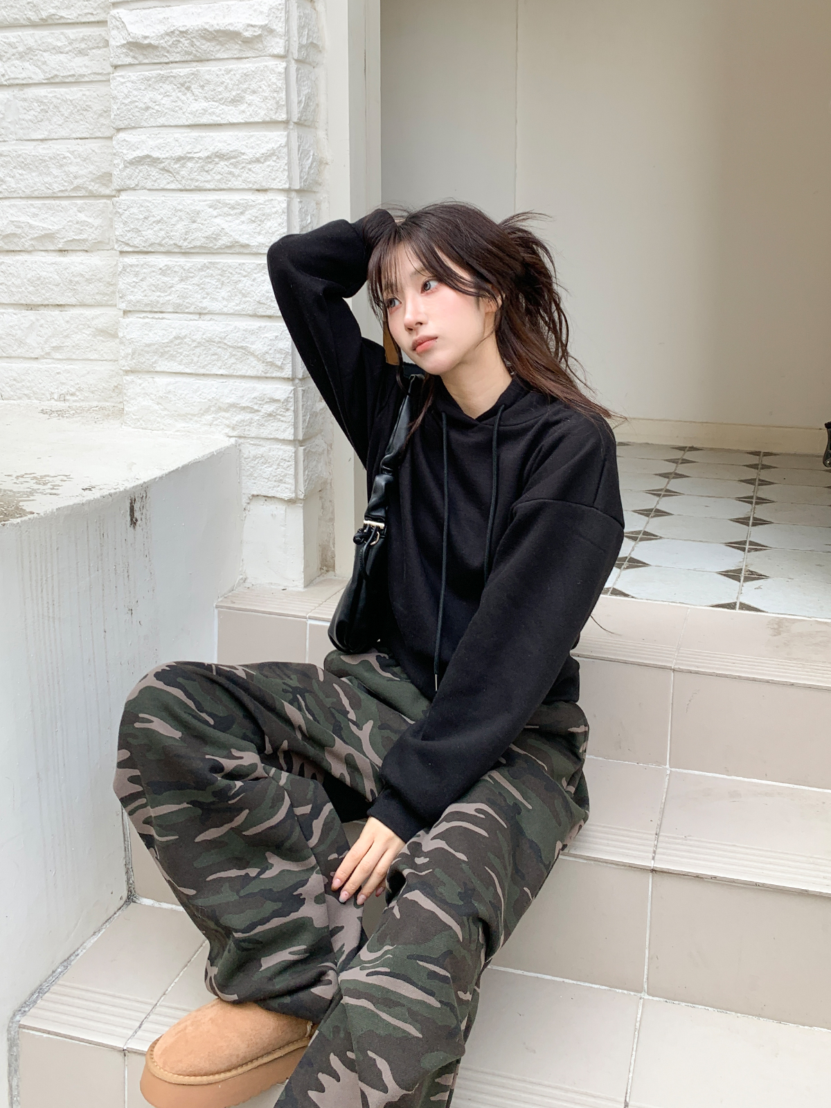 한겨울에 입기 좋은 기모 원단의 크롭 후드 티셔츠
