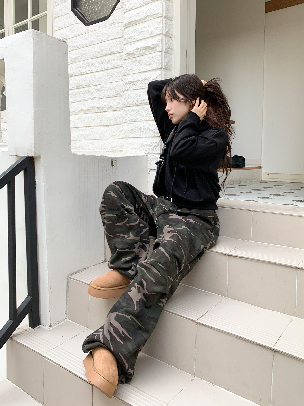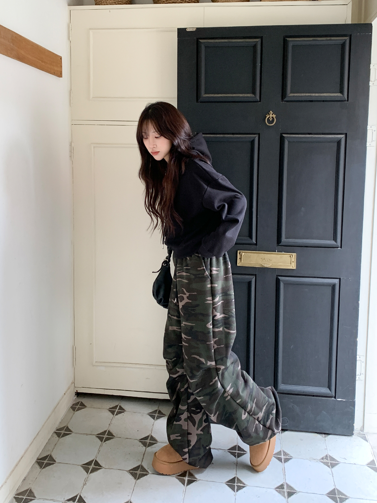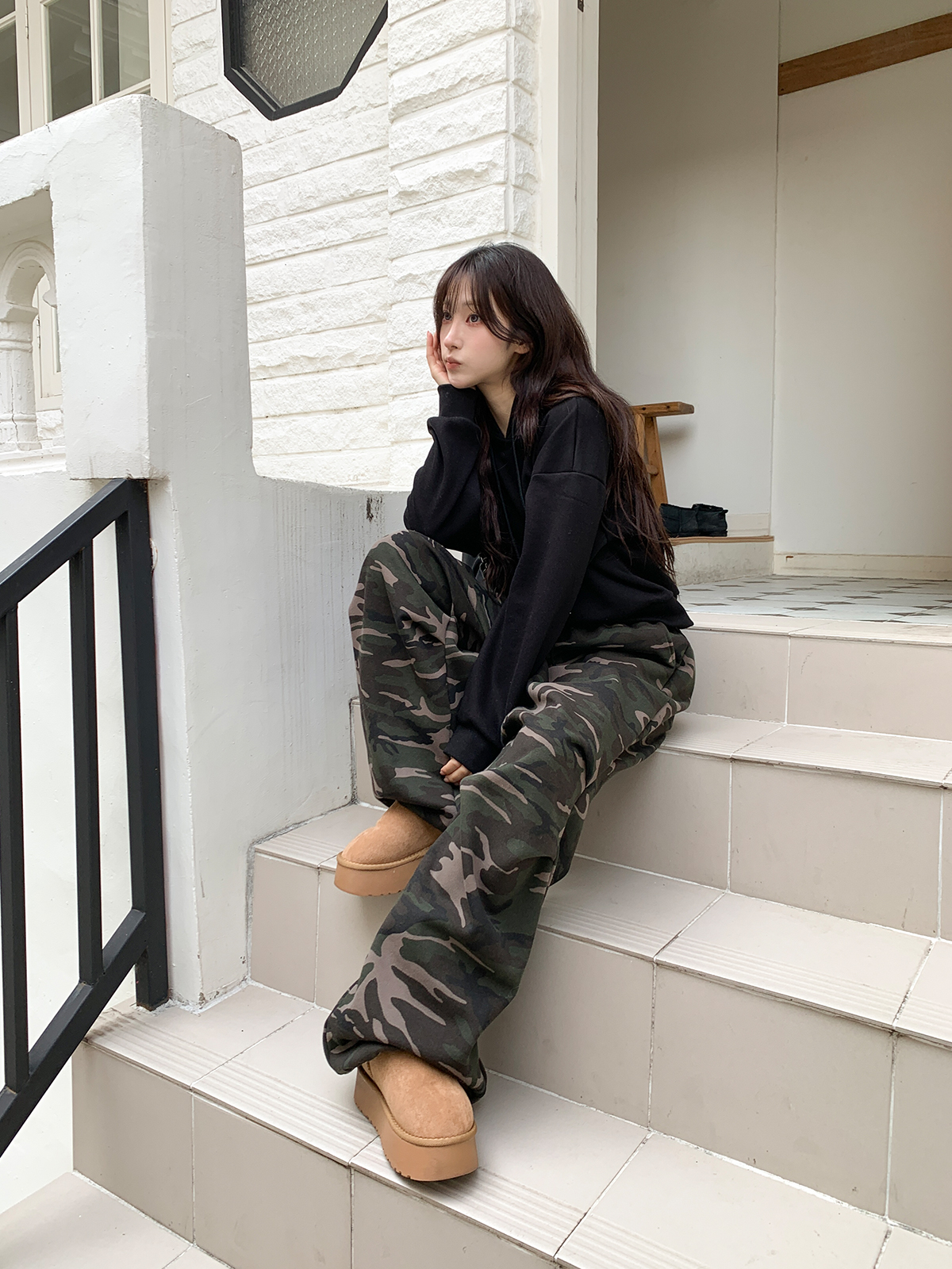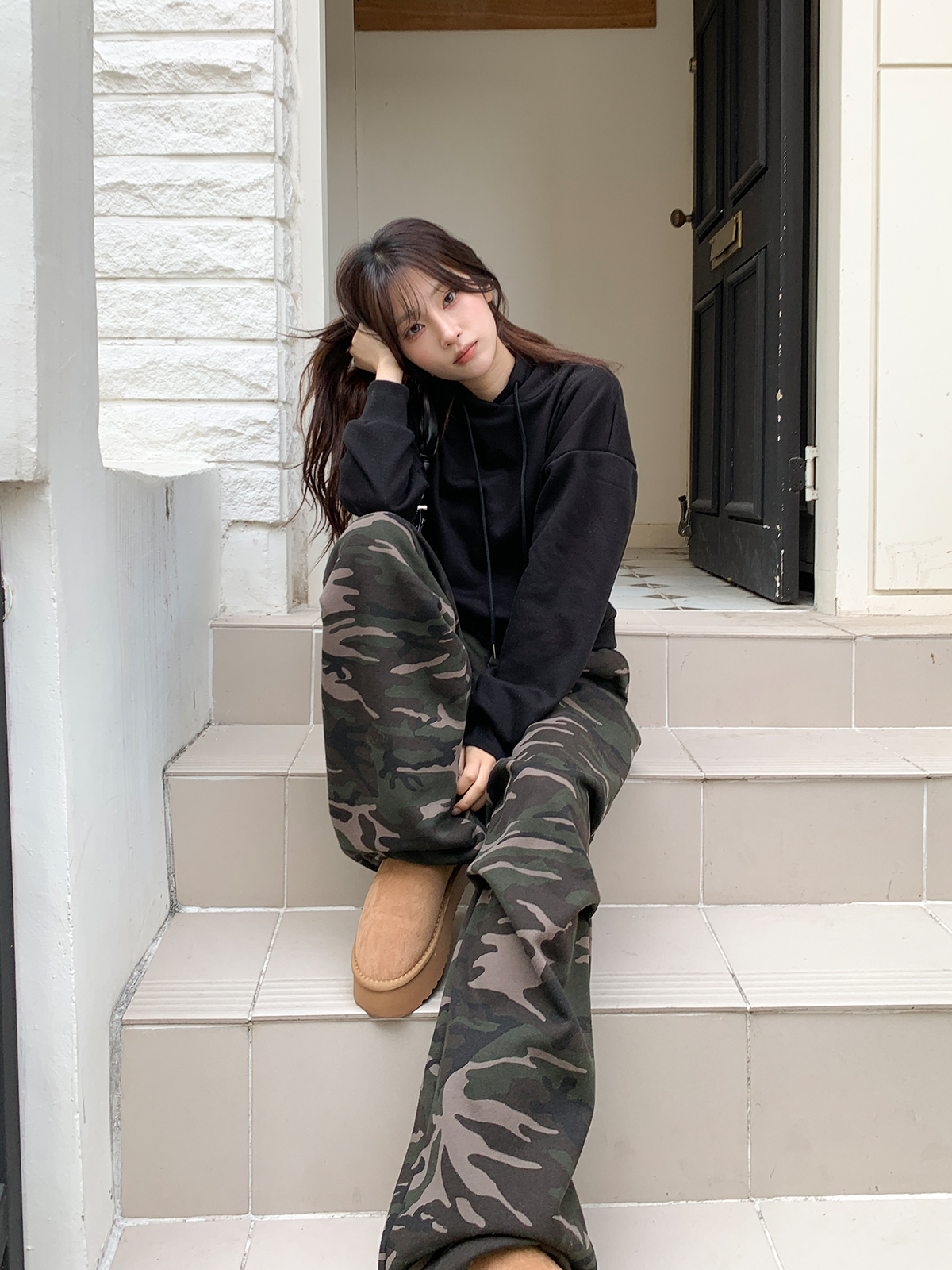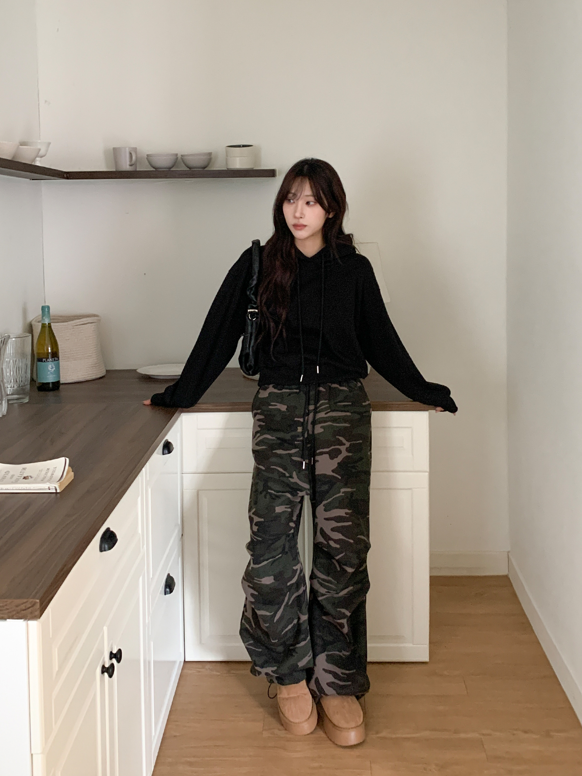 한겨울에 입기 좋은 기모 원단의 크롭 후드 티셔츠