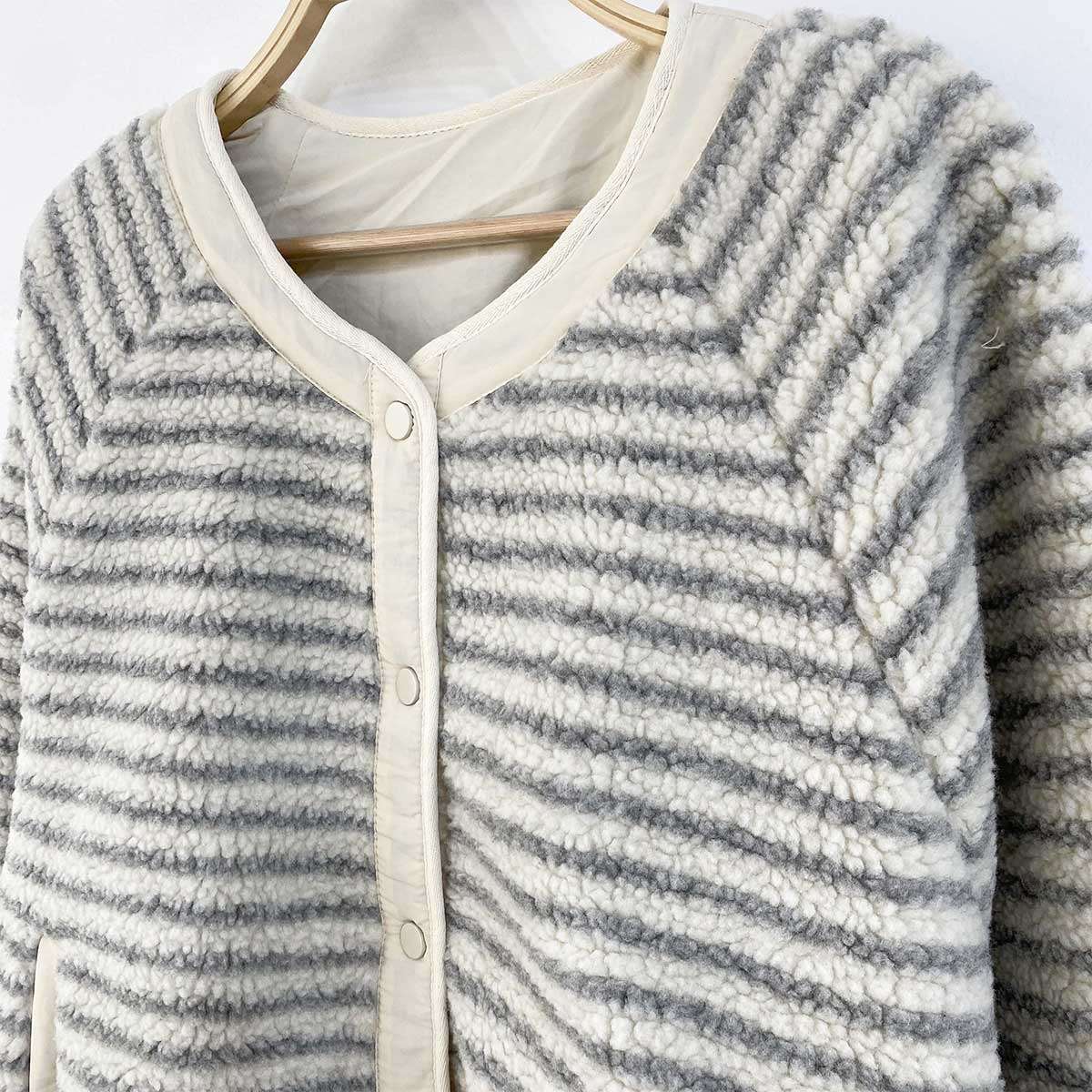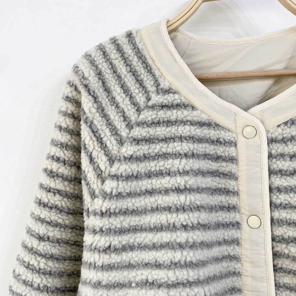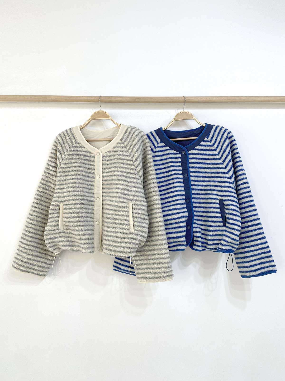 [ JK6095K5A-포다하 양면 스트라이프 뽀글이 누빔 점퍼 ]