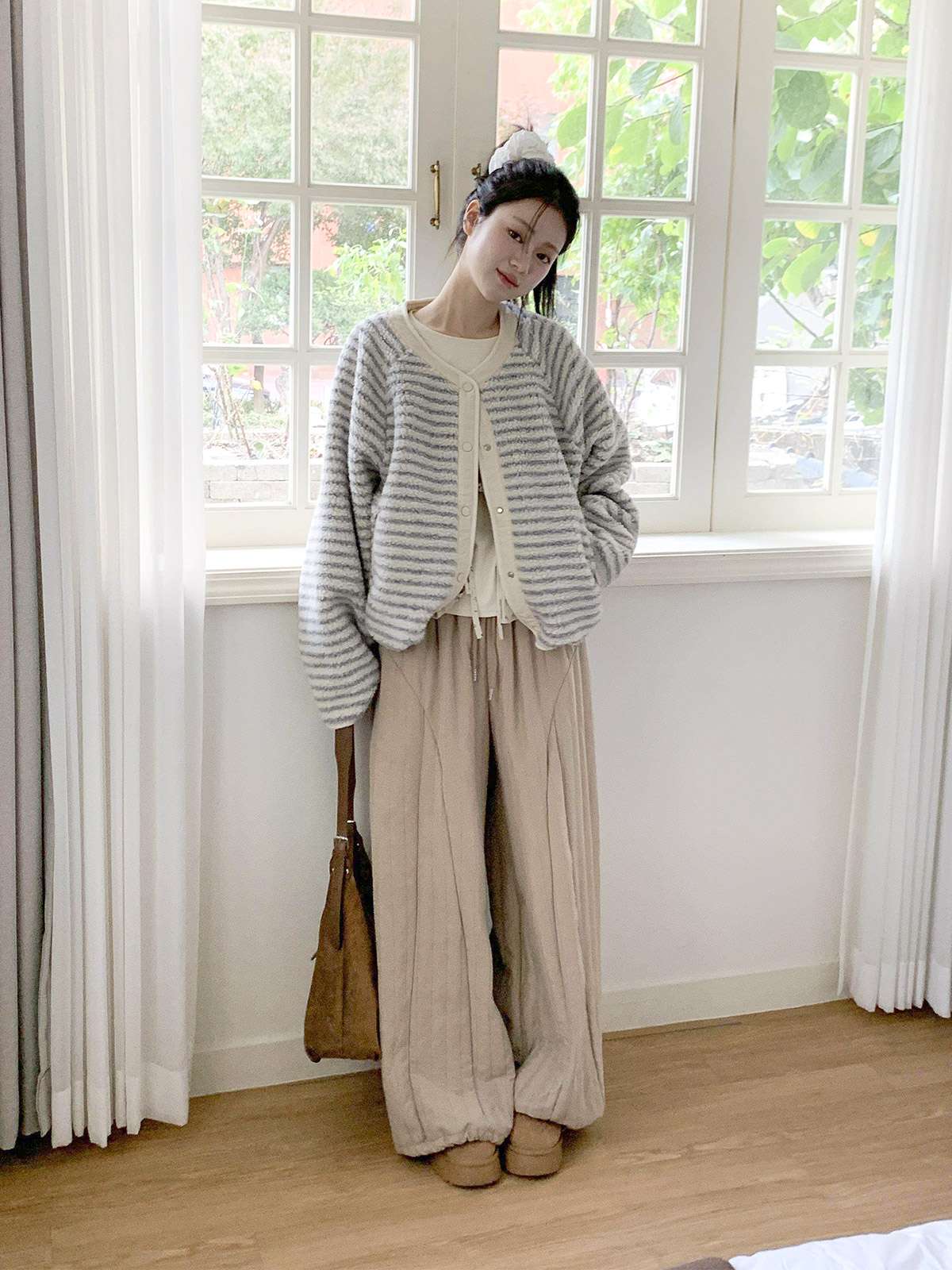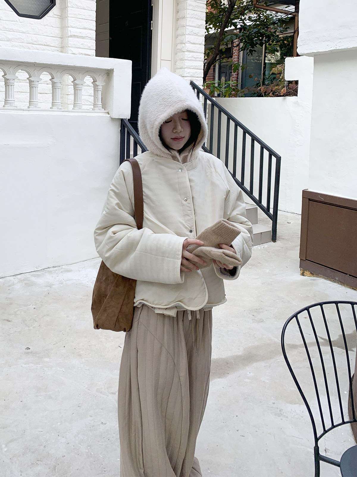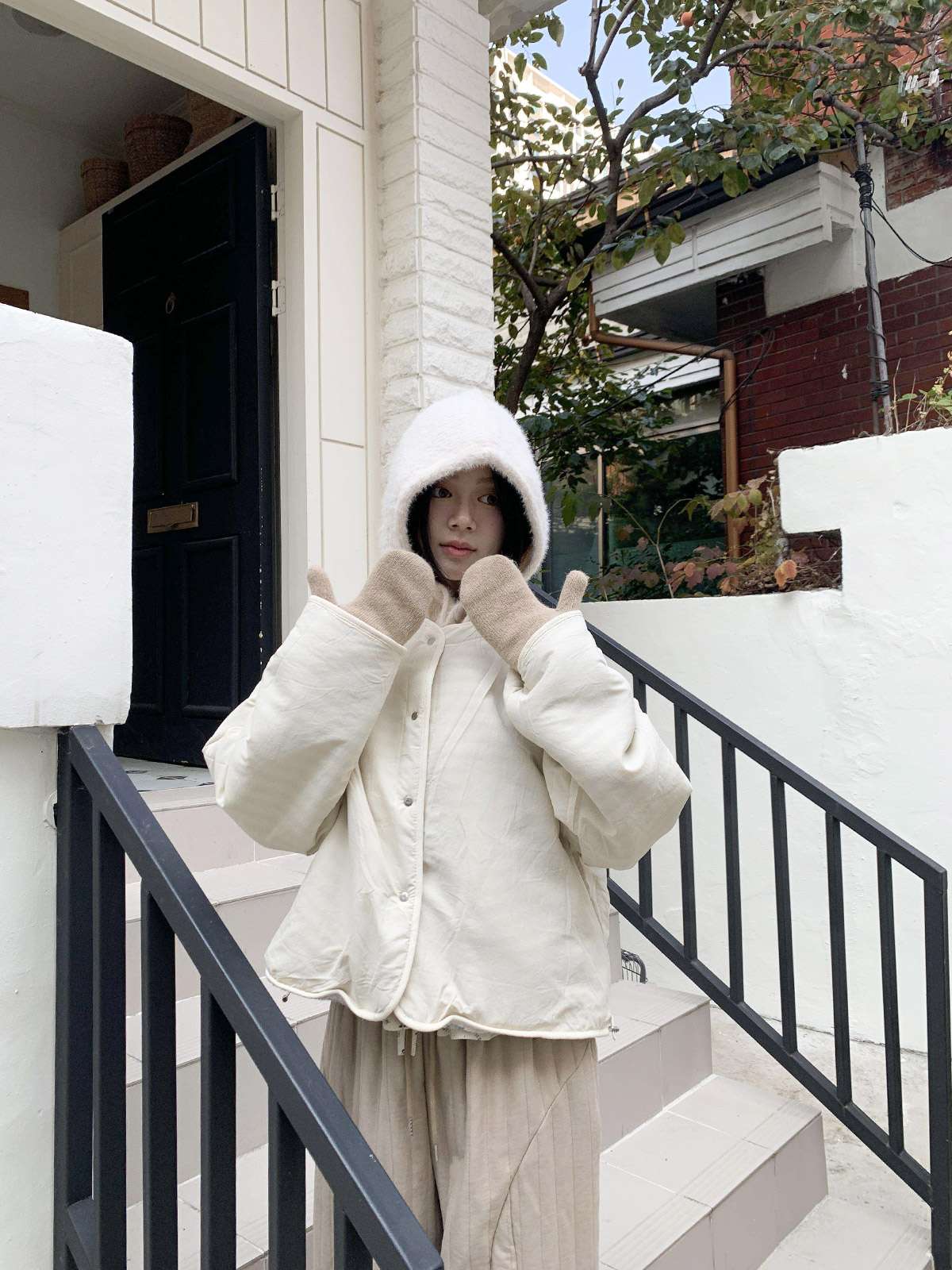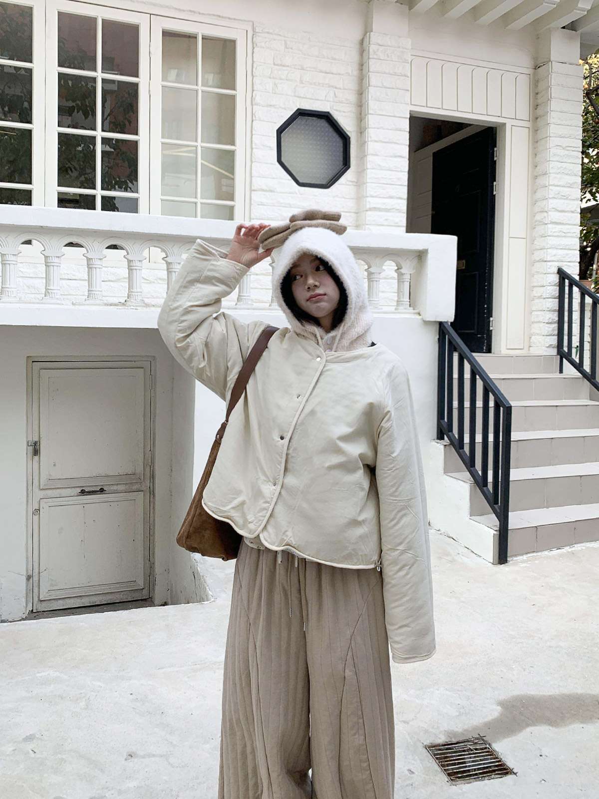 따뜻한 뽀글이 소재로 캐주얼한 포인트를 주며,