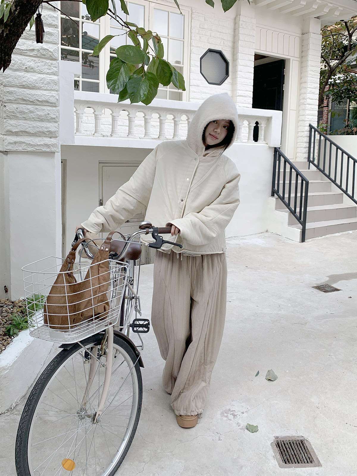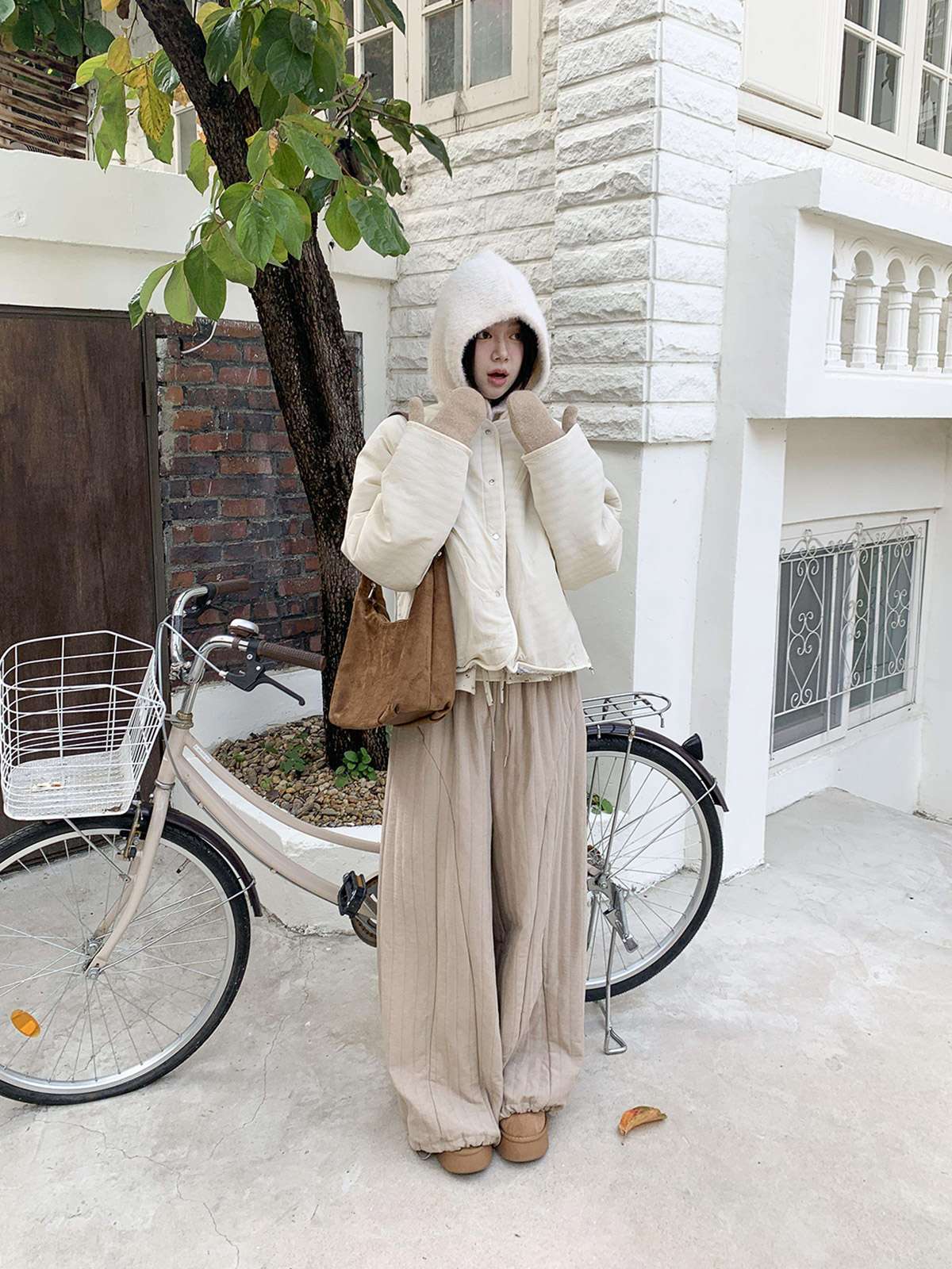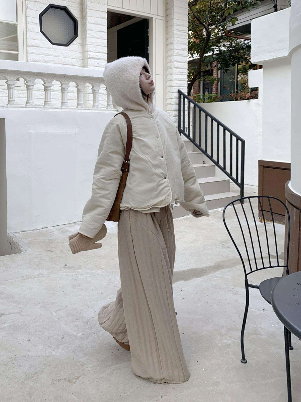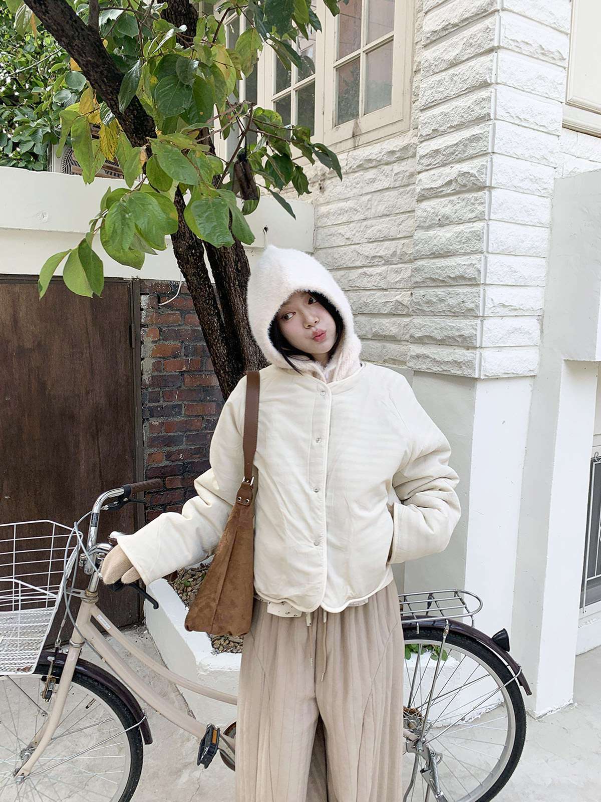 따뜻한 뽀글이 소재로 캐주얼한 포인트를 주며,