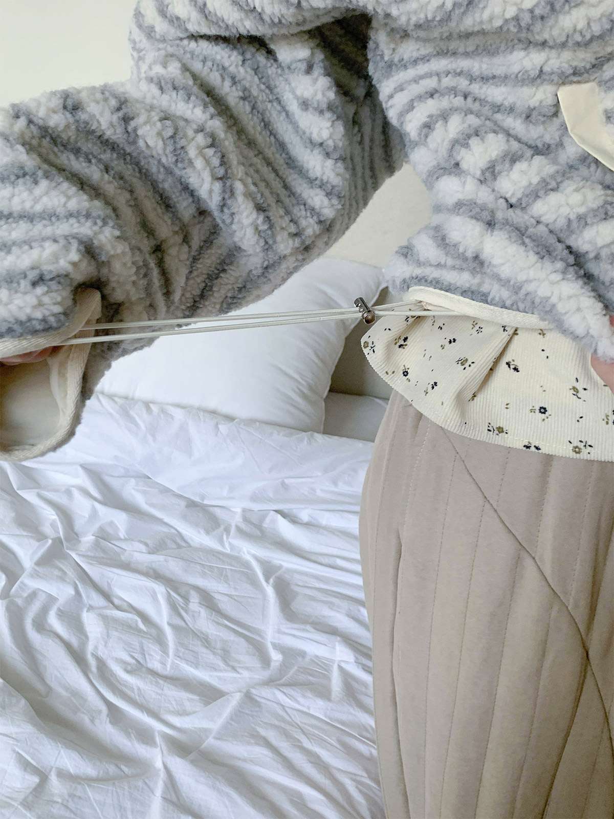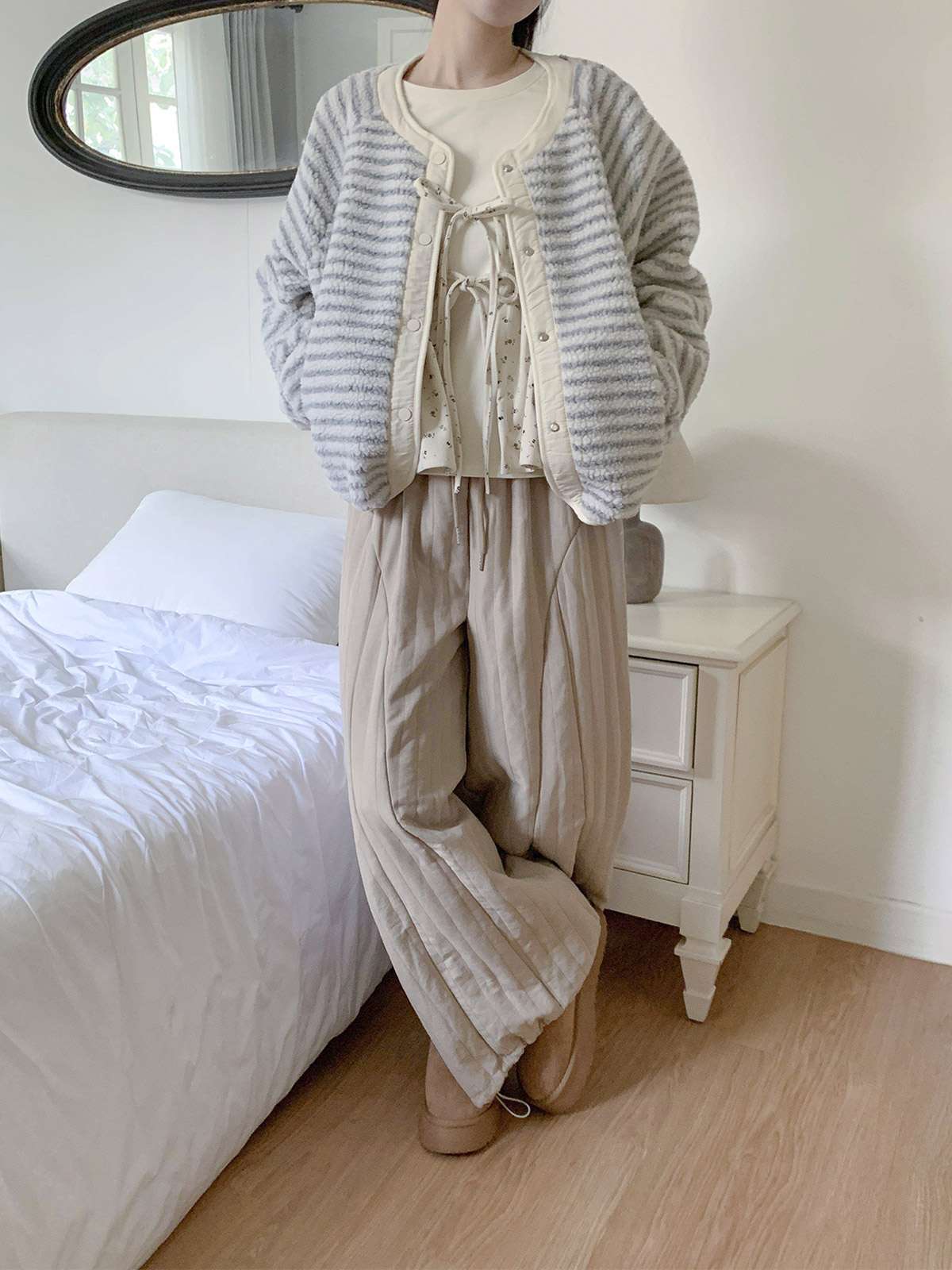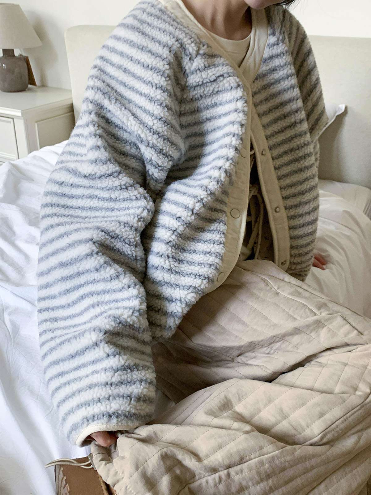 트렌디한 뽀글이 소재와 실용적인 누빔면을