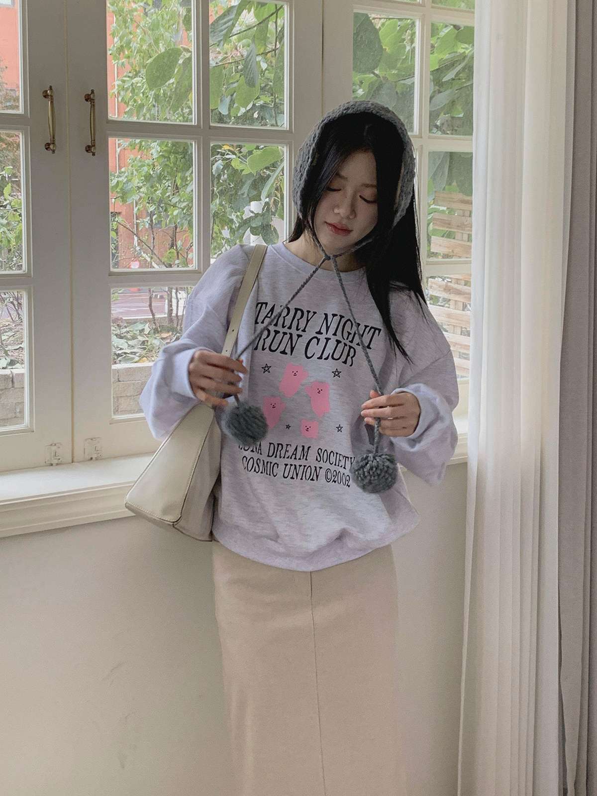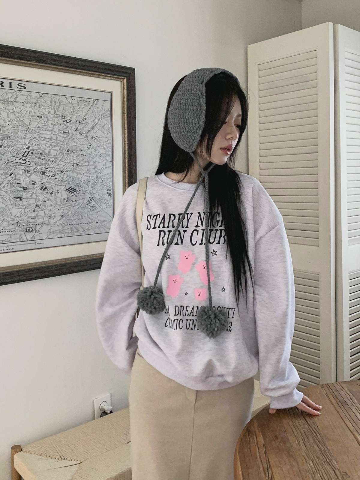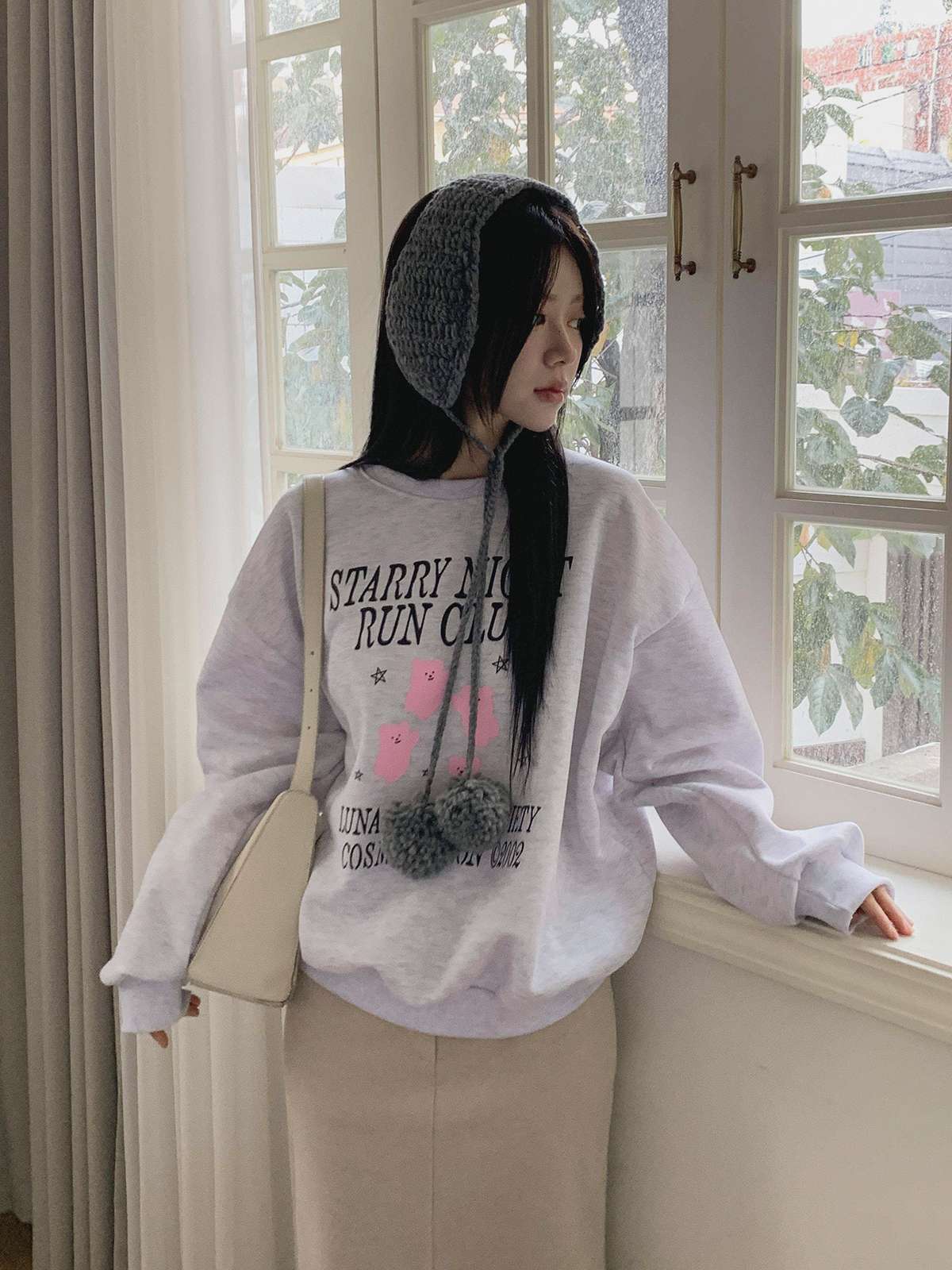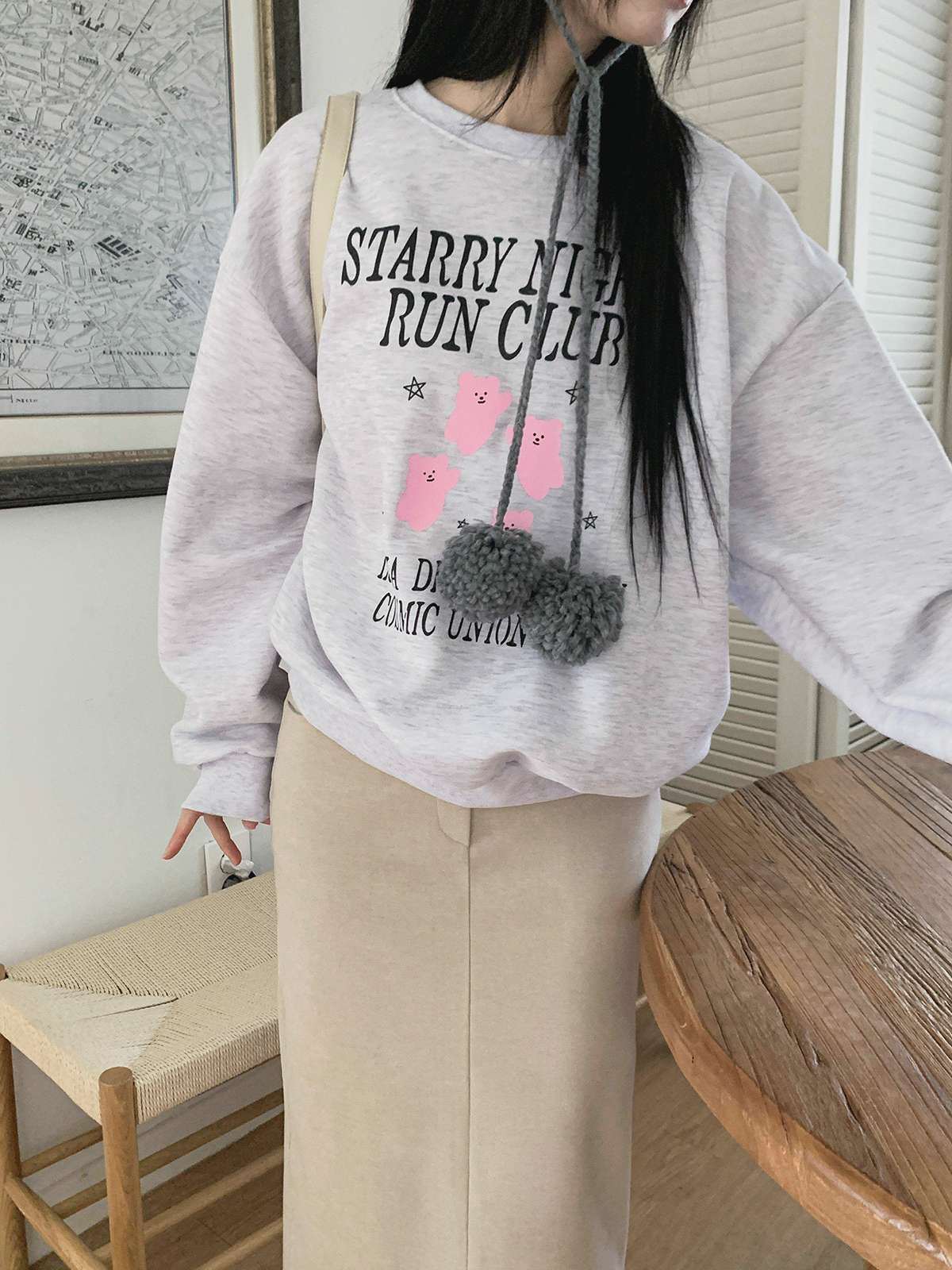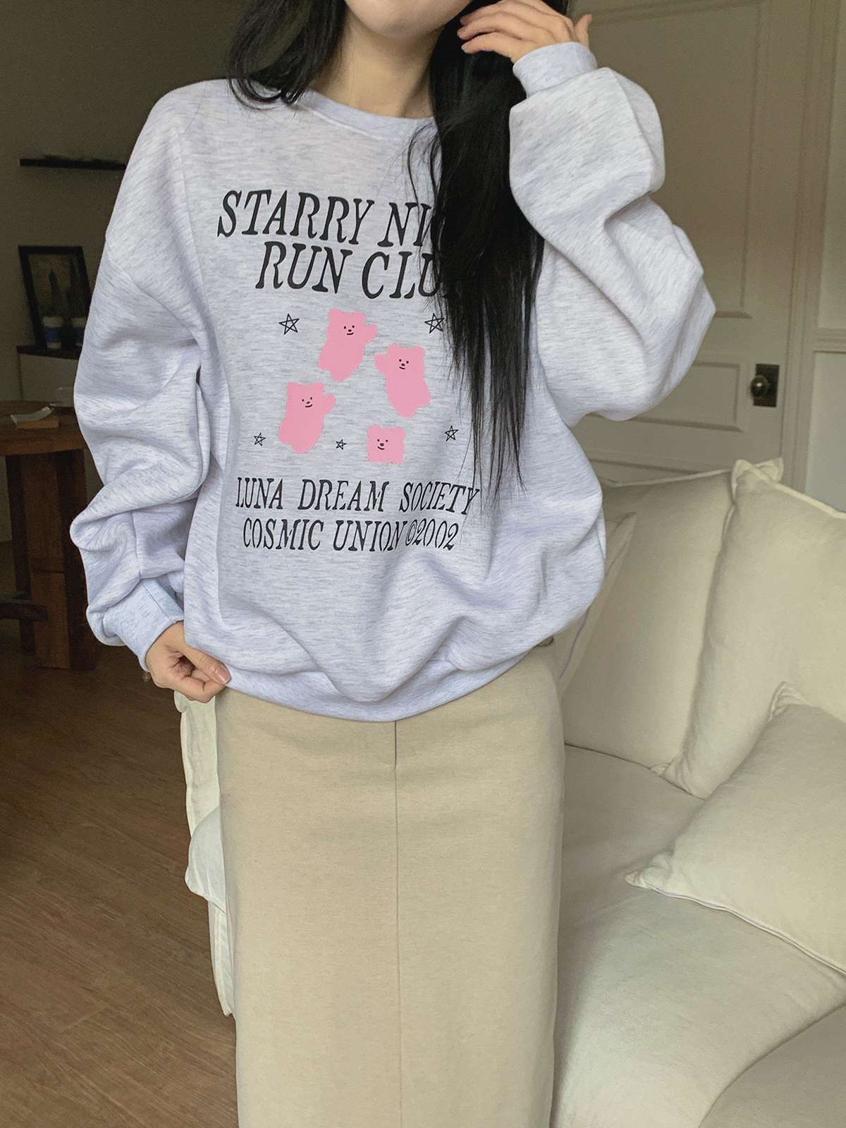 귀여운 곰돌이 캐릭터 프린팅이 포인트인 오버핏 맨투맨