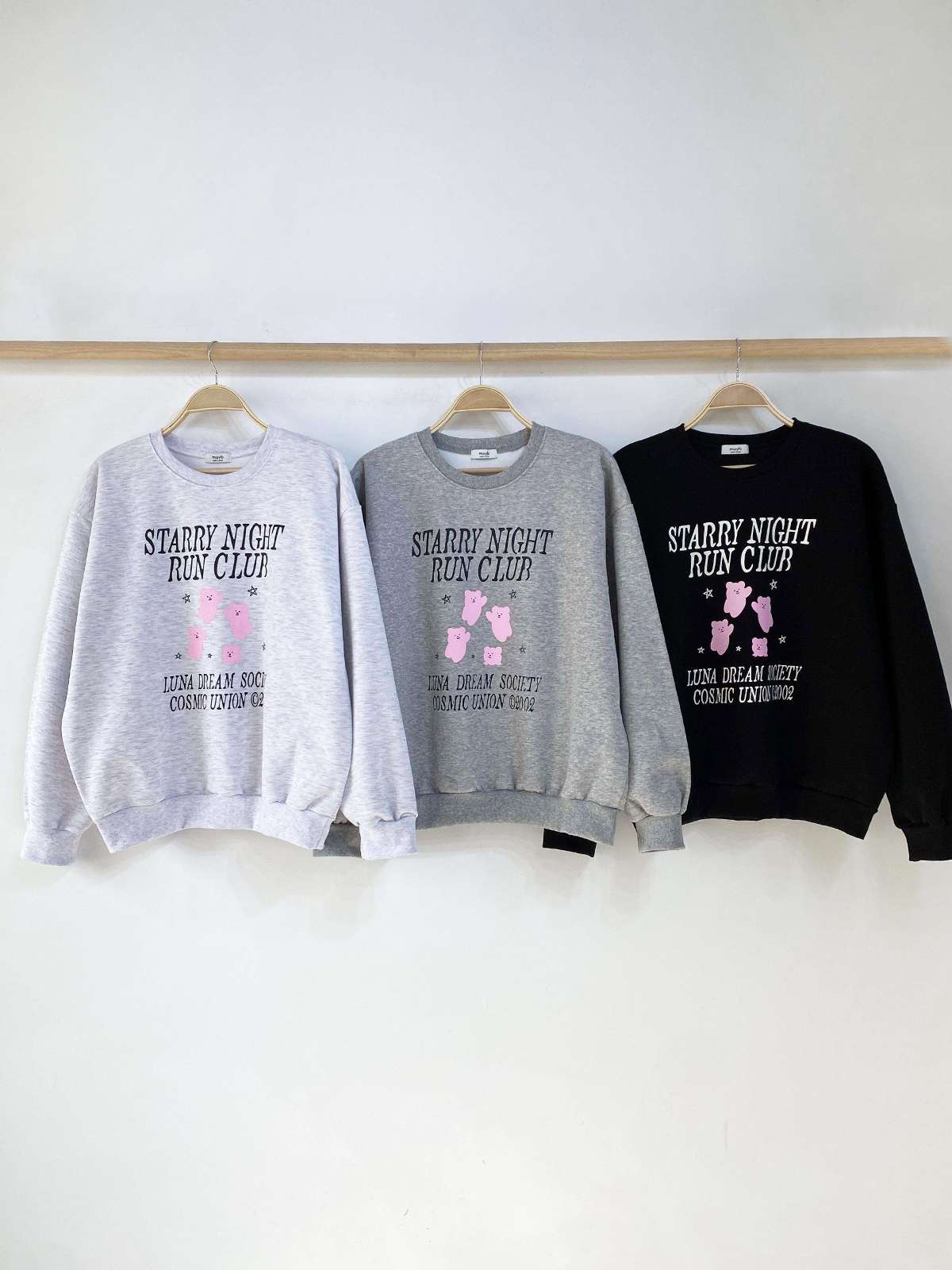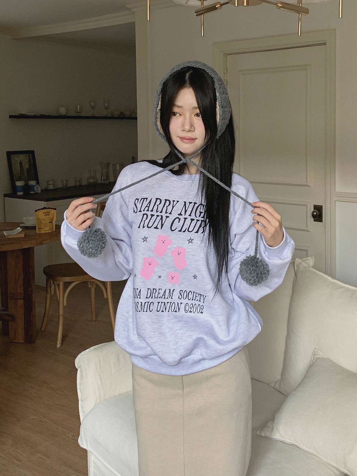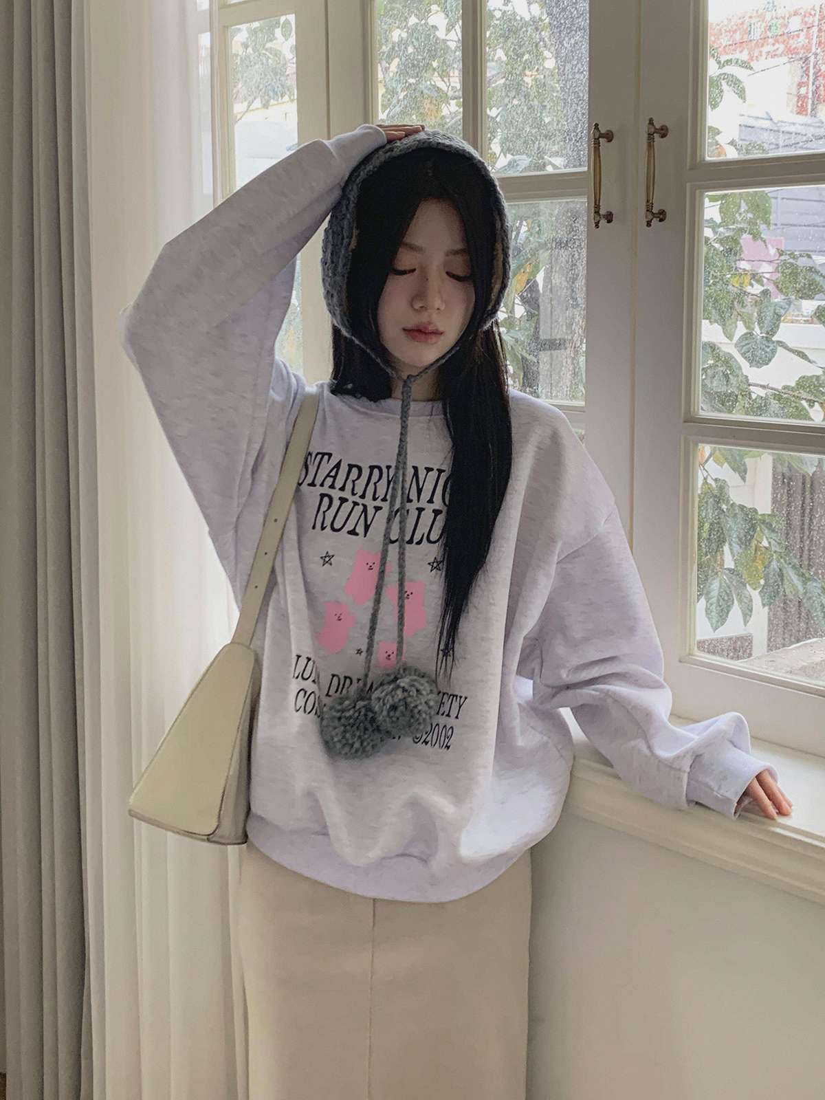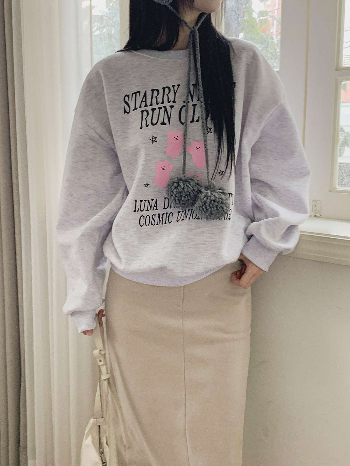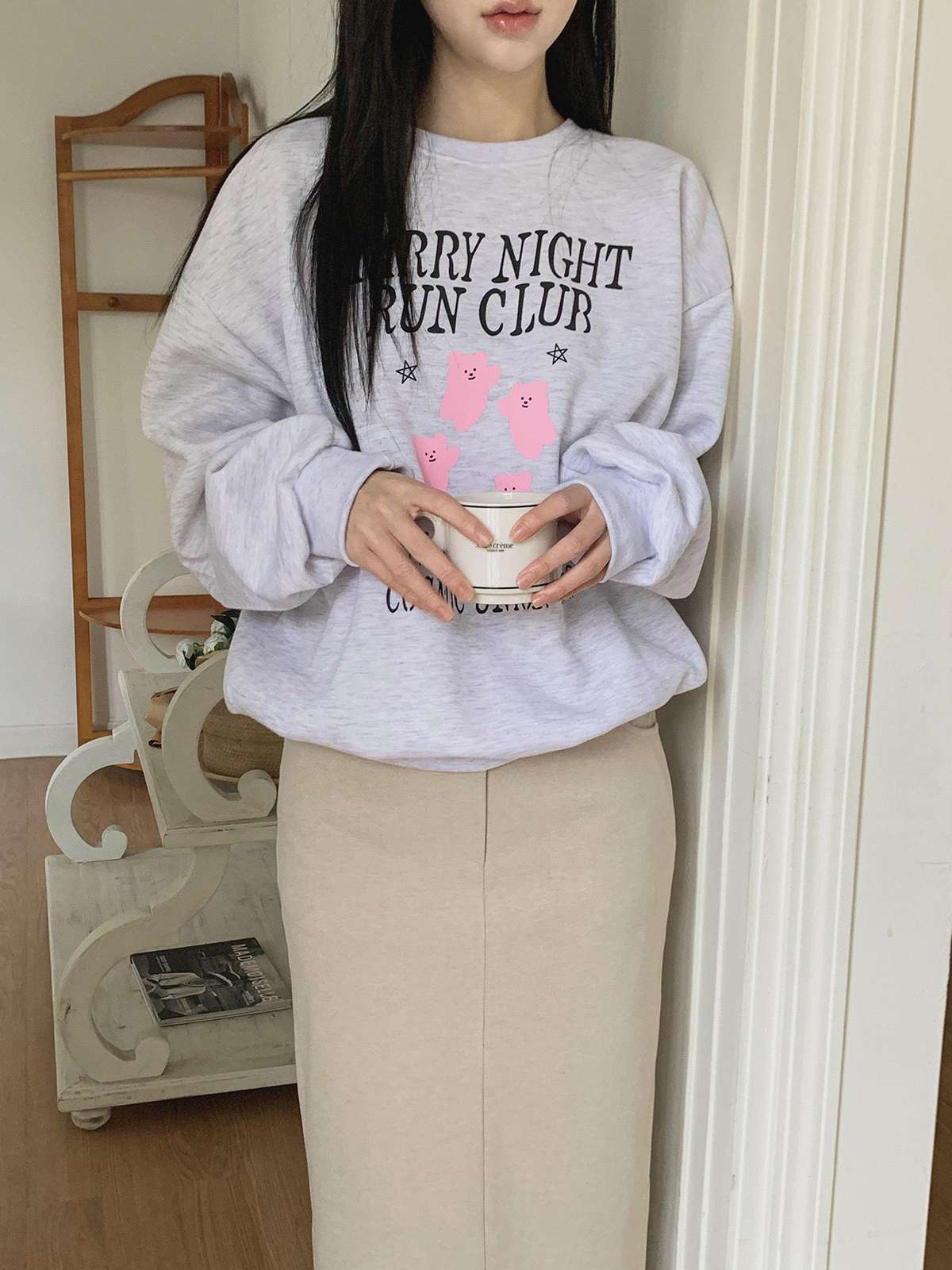 귀여운 곰돌이 캐릭터 프린팅이 포인트인 오버핏 맨투맨