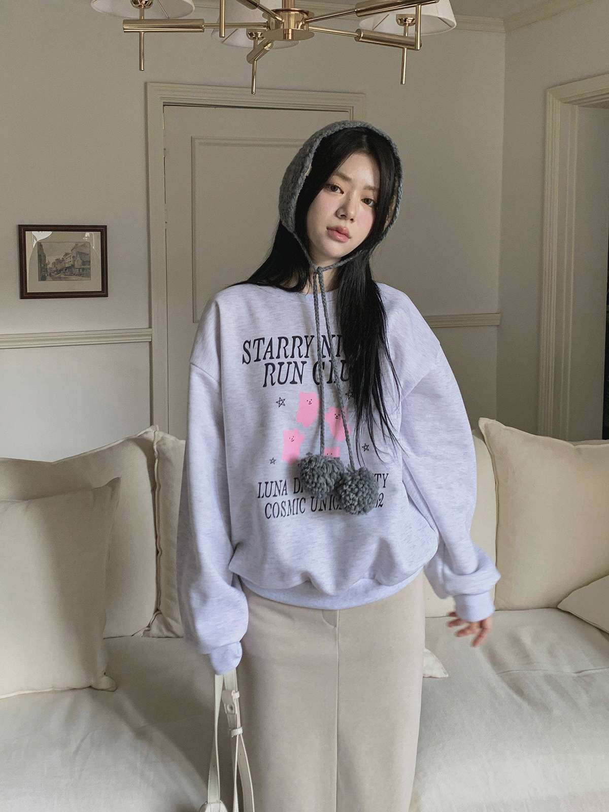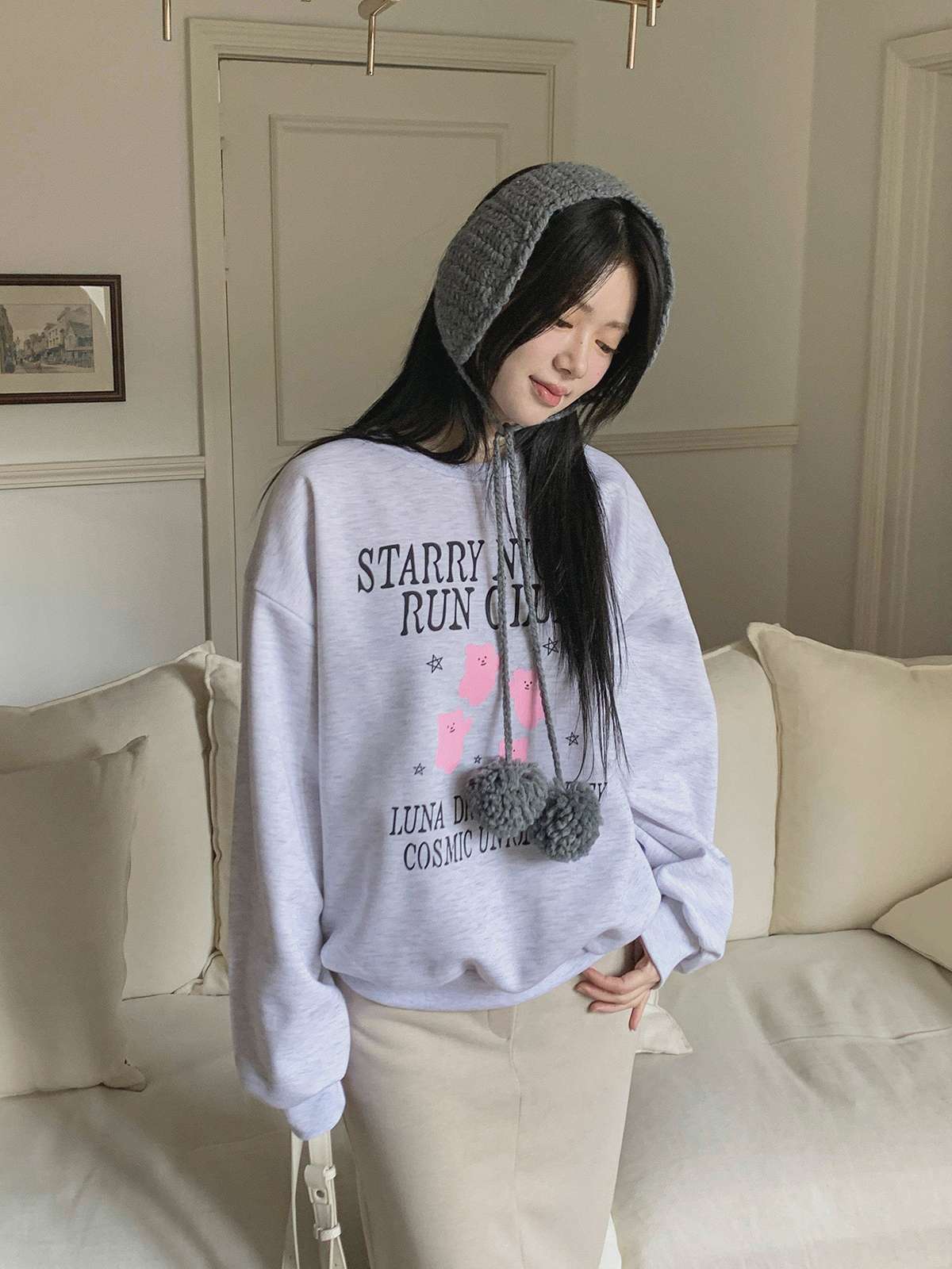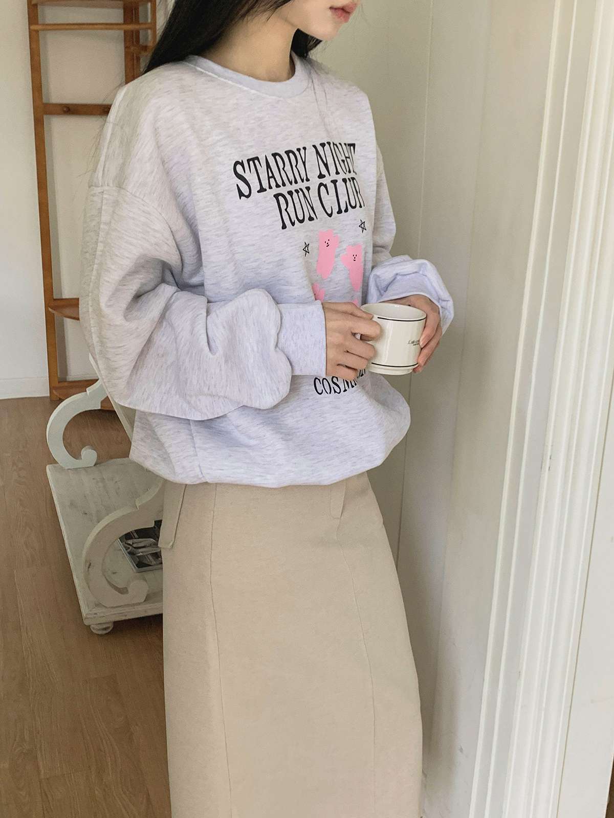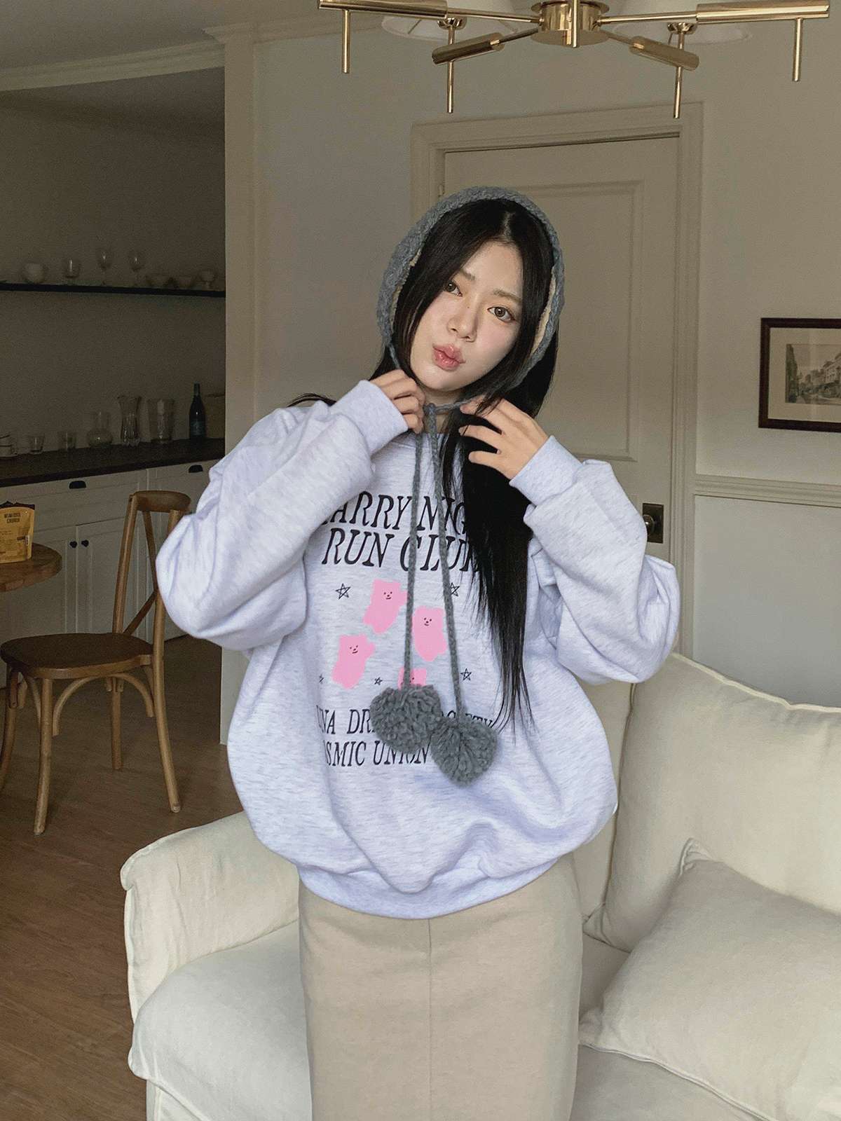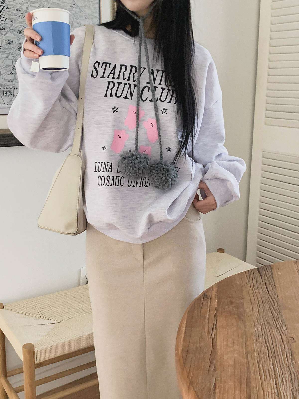 귀여운 곰돌이 캐릭터 프린팅이 포인트인 오버핏 맨투맨