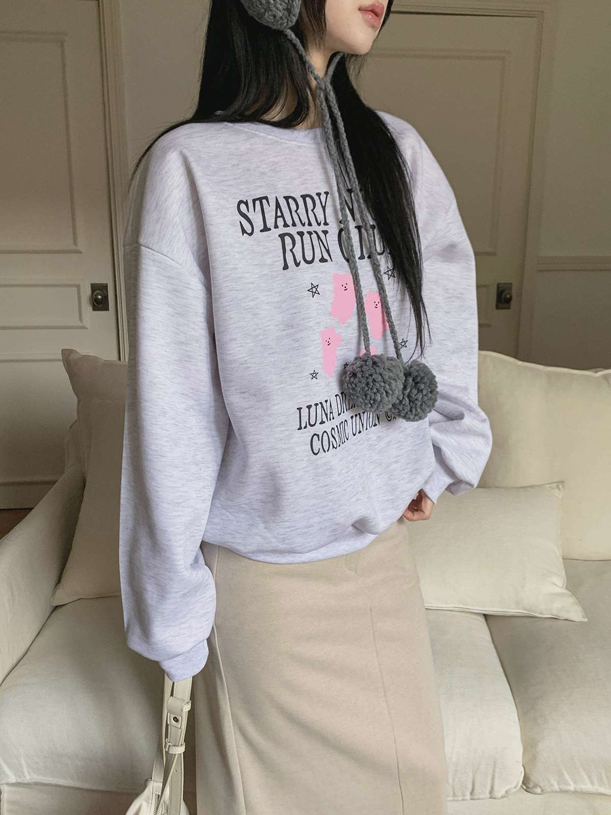 [ T17298K5A-프다하 기모 레터링 루즈핏 맨투맨 ]