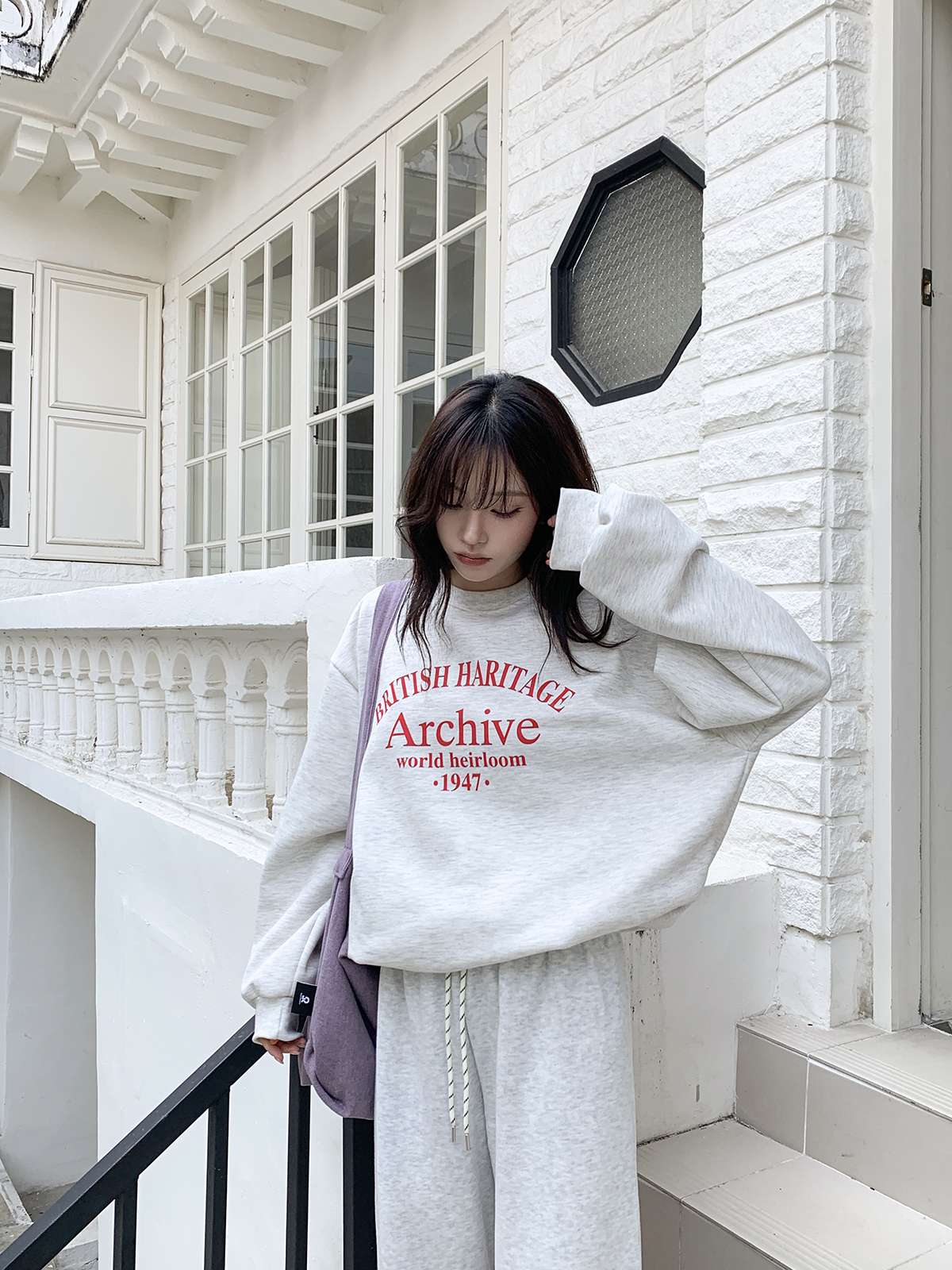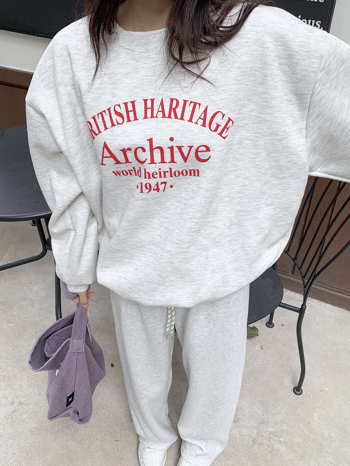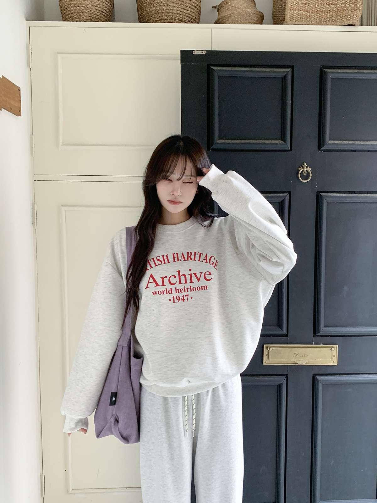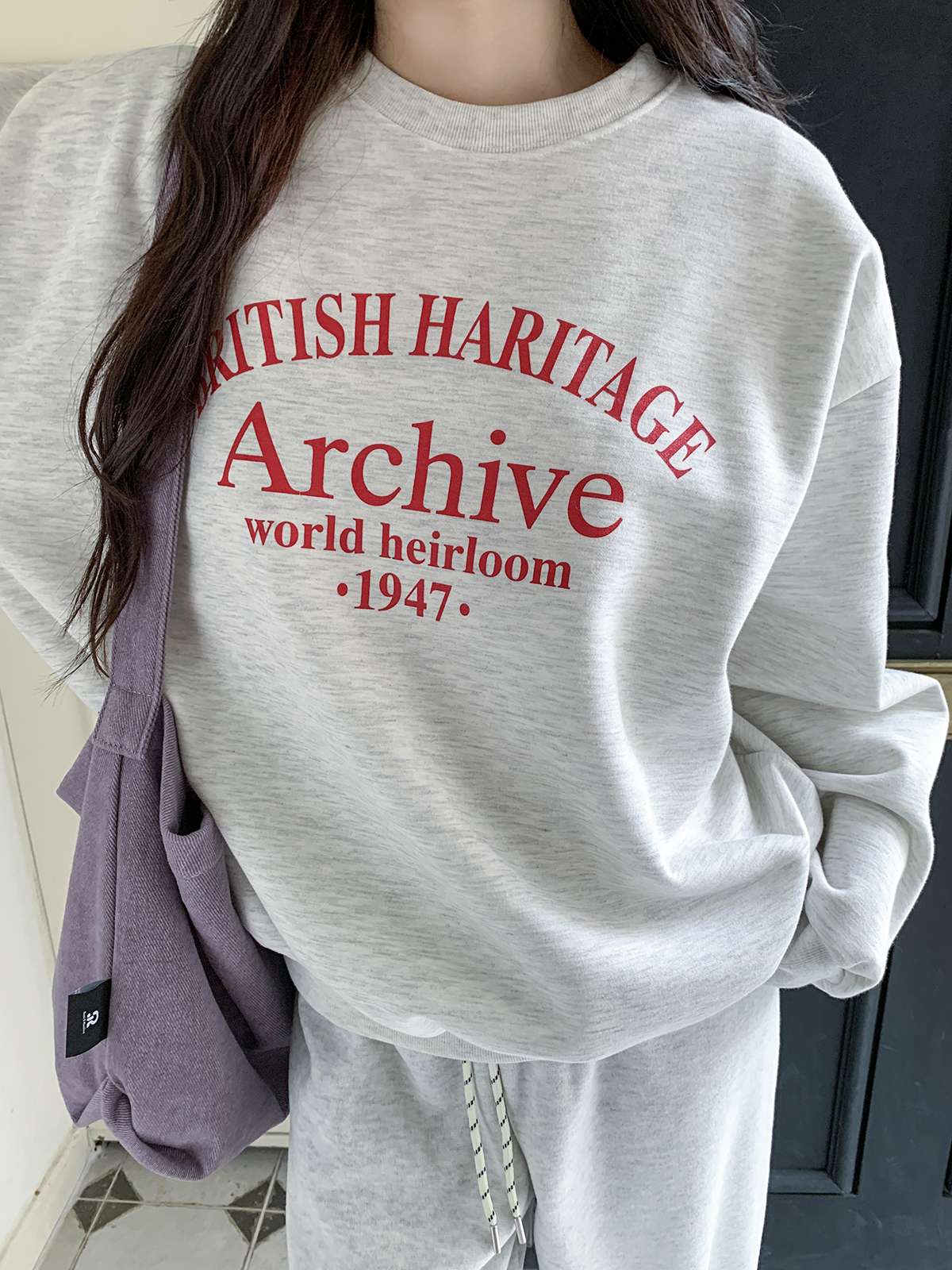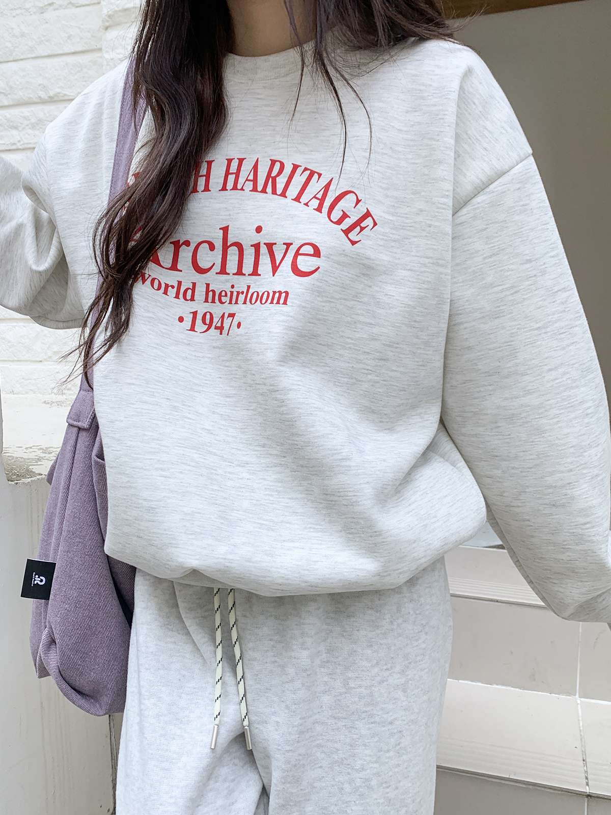 데일리룩의 제격인 라운드넥의 루즈핏 기모 맨투맨