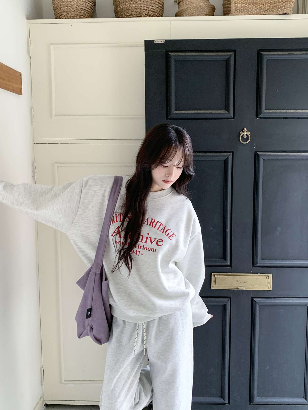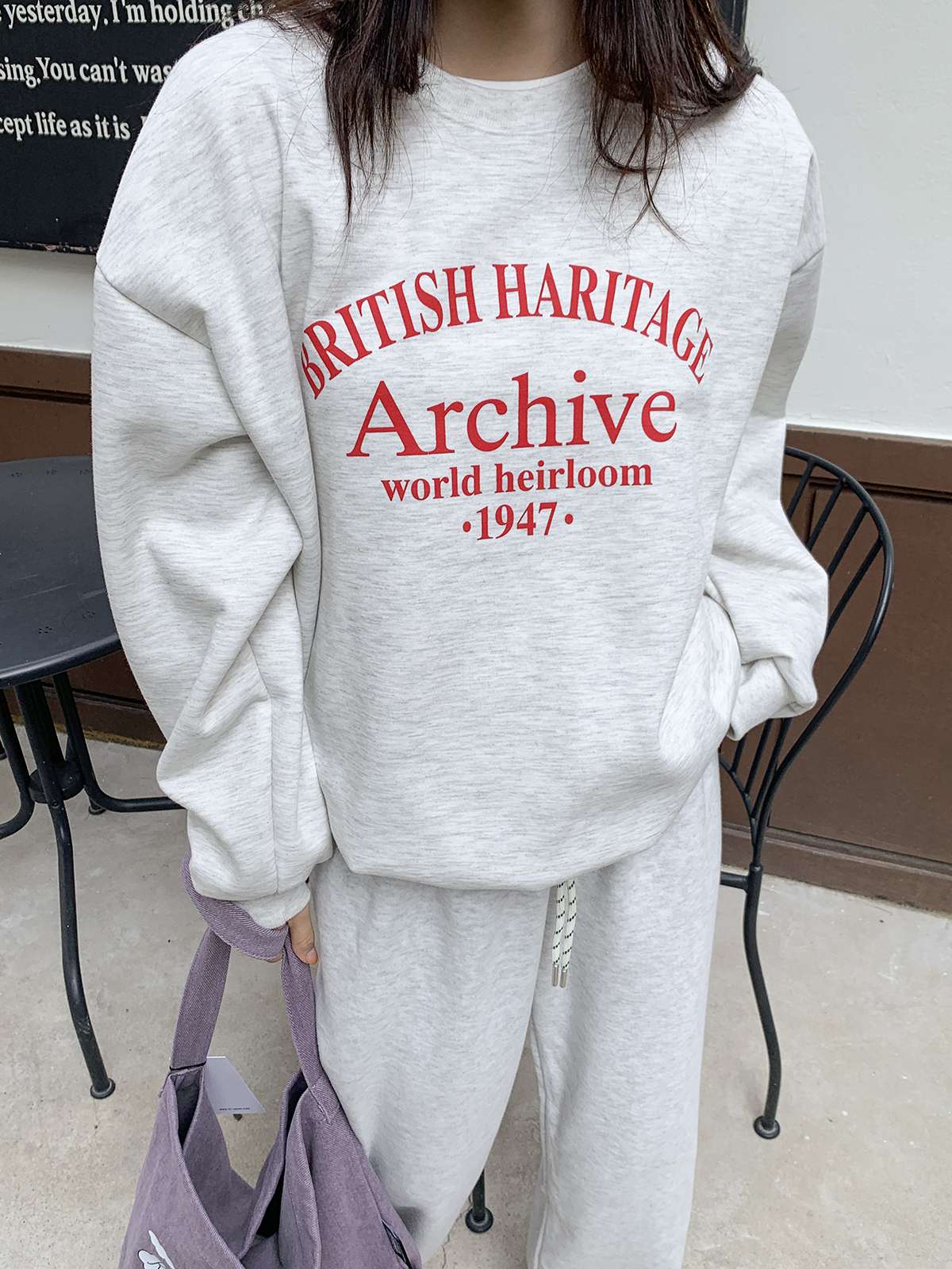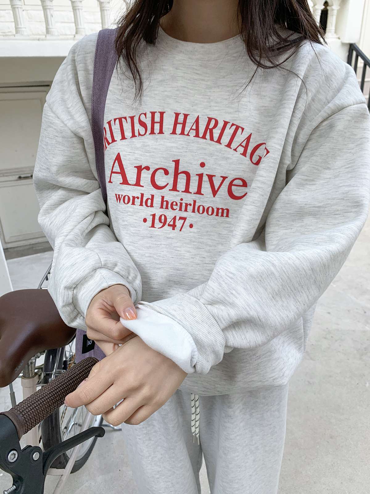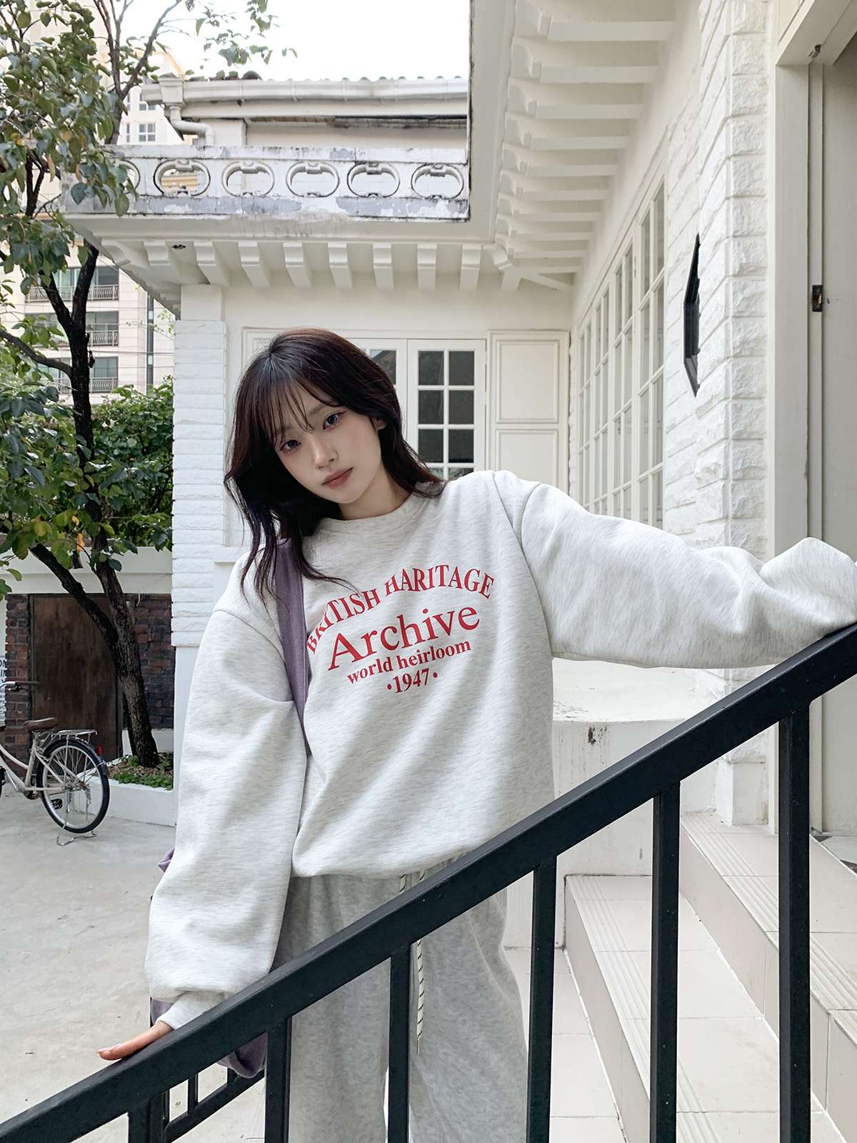 데일리룩의 제격인 라운드넥의 루즈핏 기모 맨투맨
